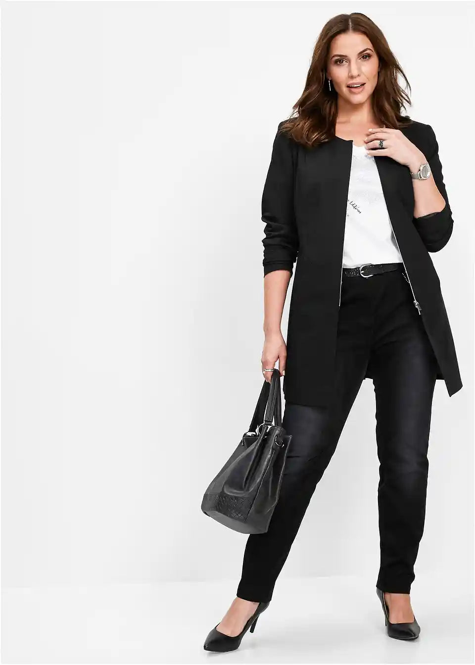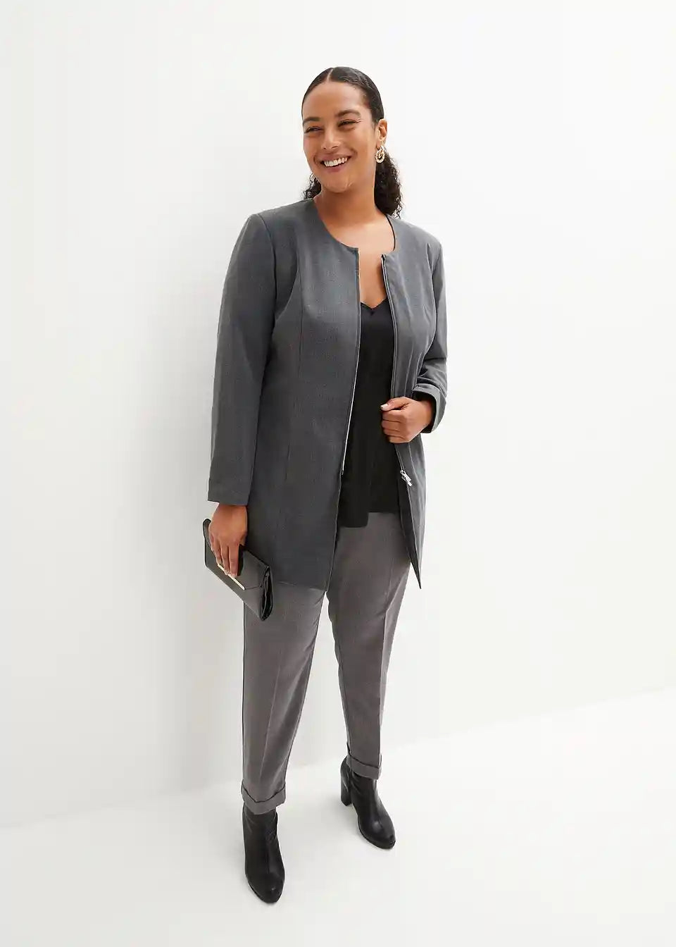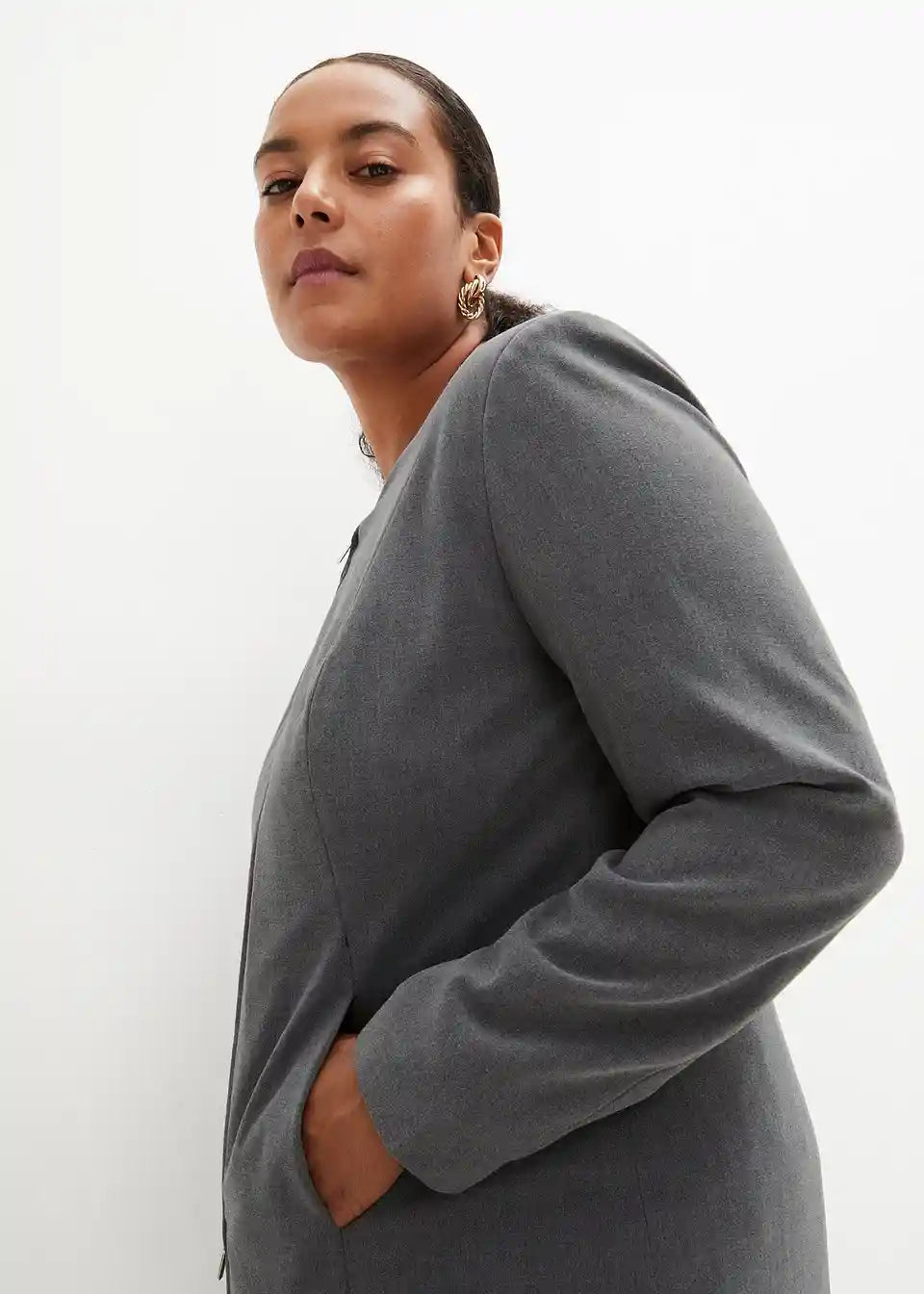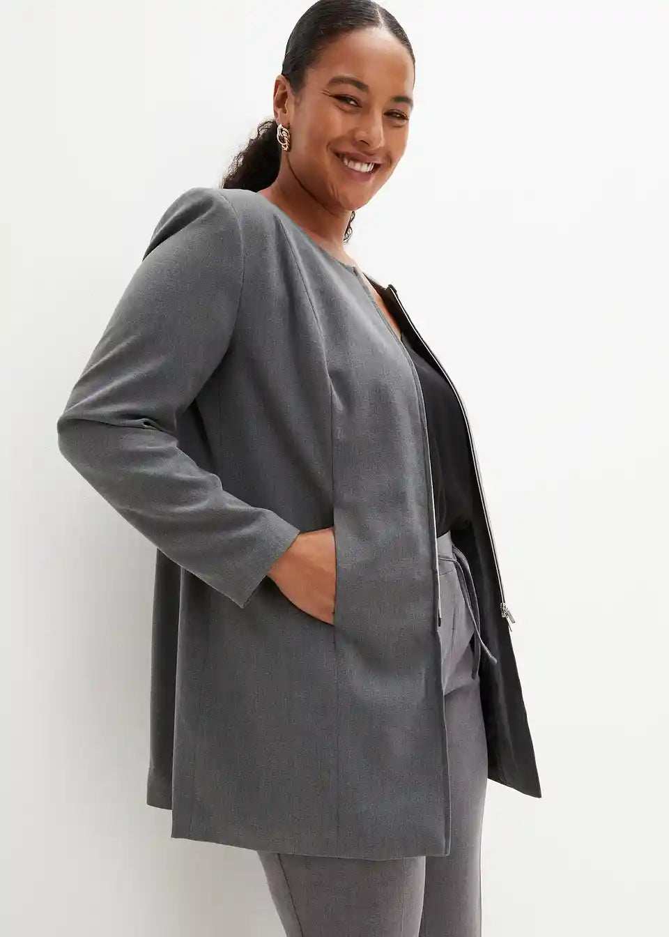 Klasični Dolgi Blazer brez ovratnika z zadrgo