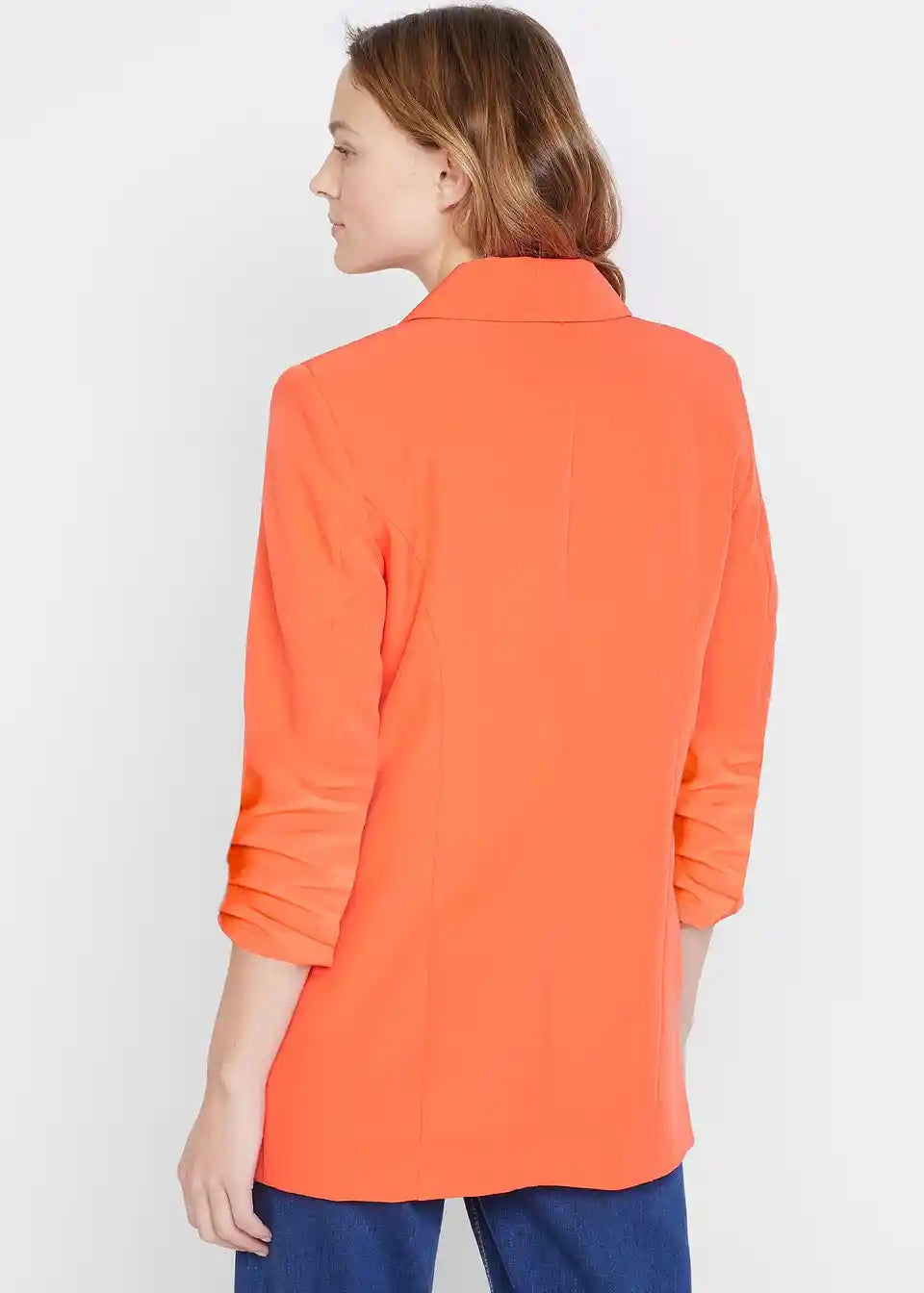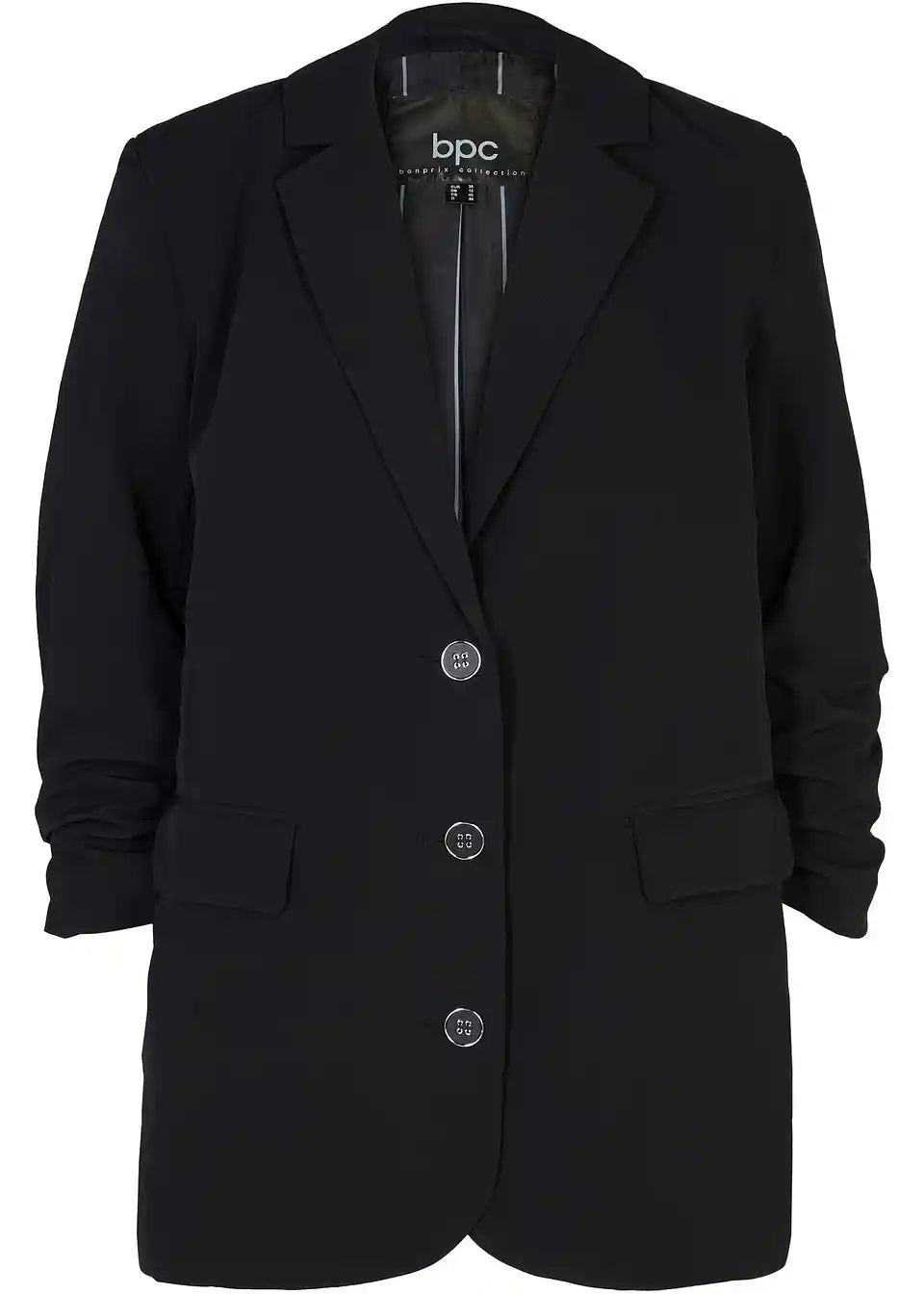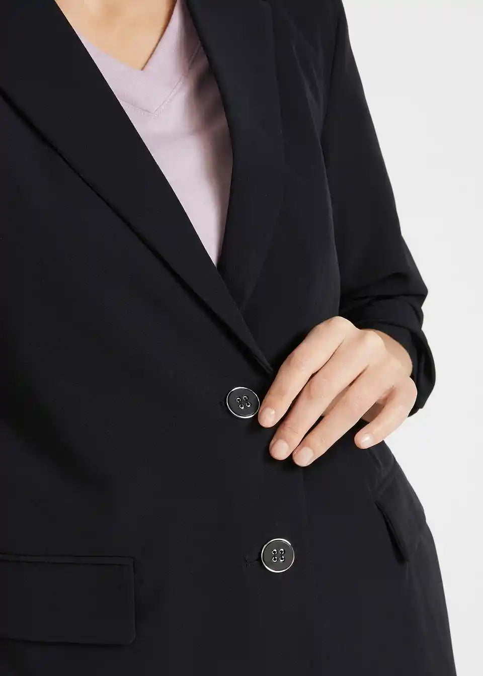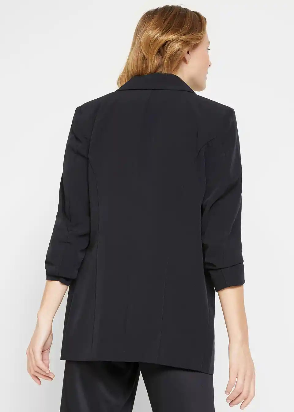 Ravno krojen dolgi blazer z modnimi naborki na rokavih