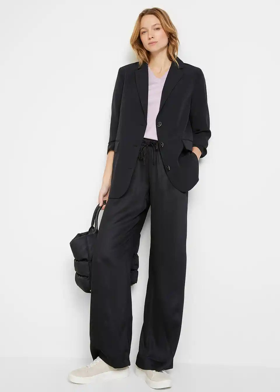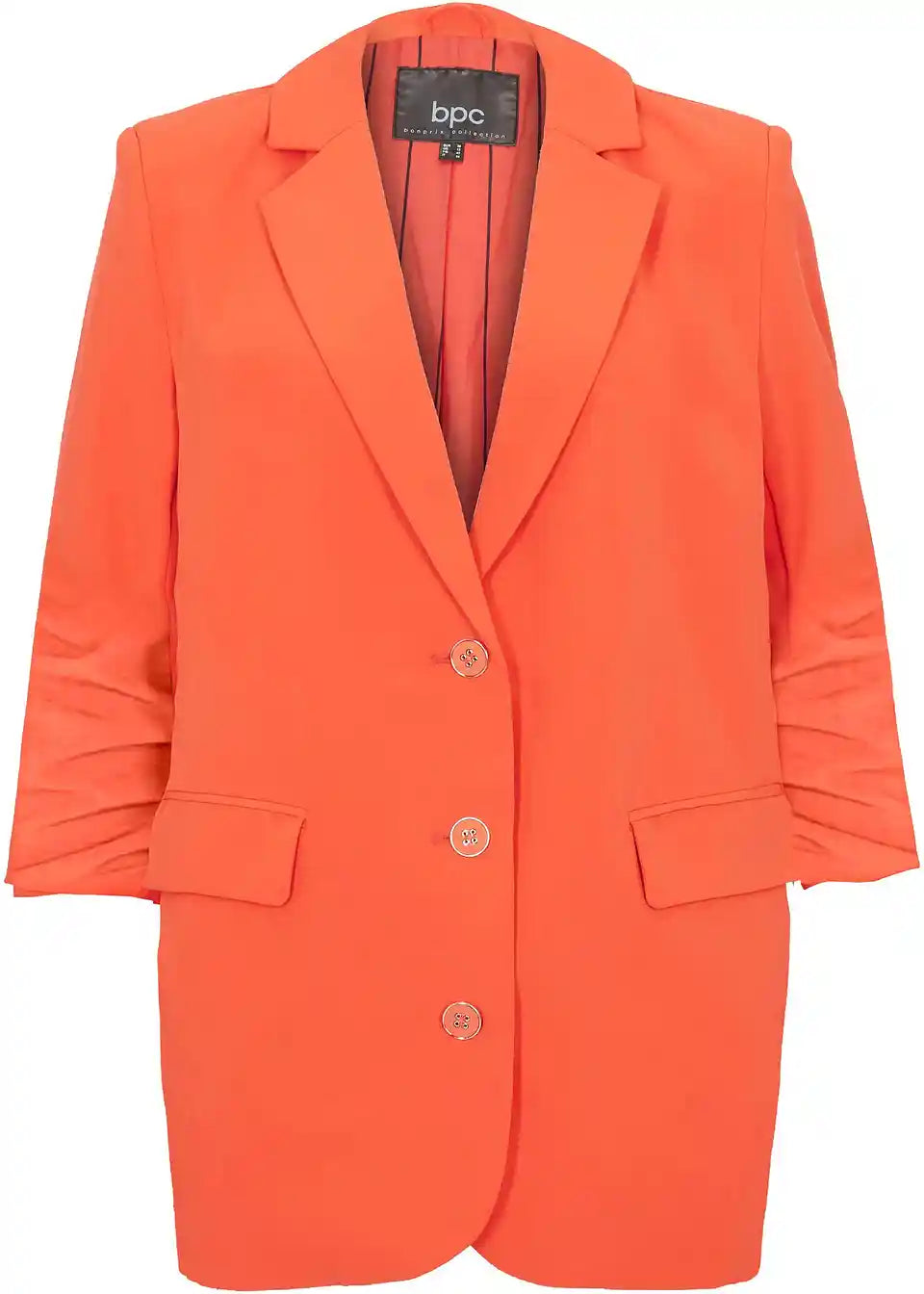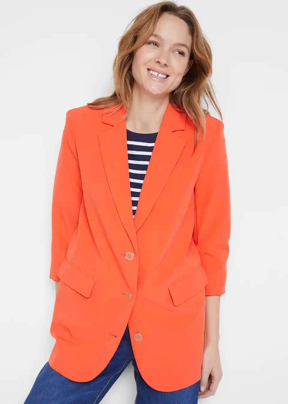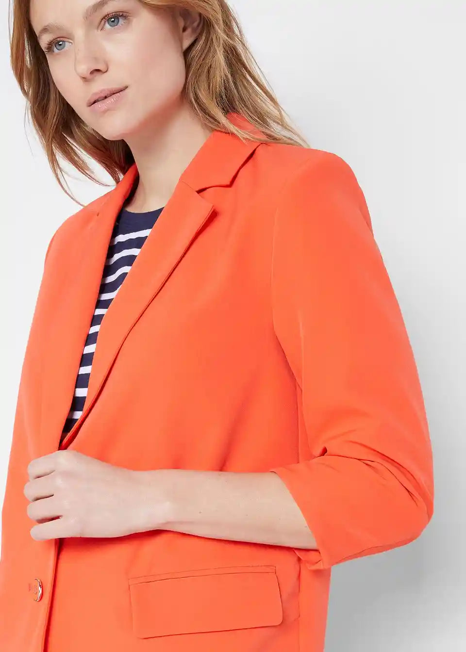 Ravno krojen dolgi blazer z modnimi naborki na rokavih