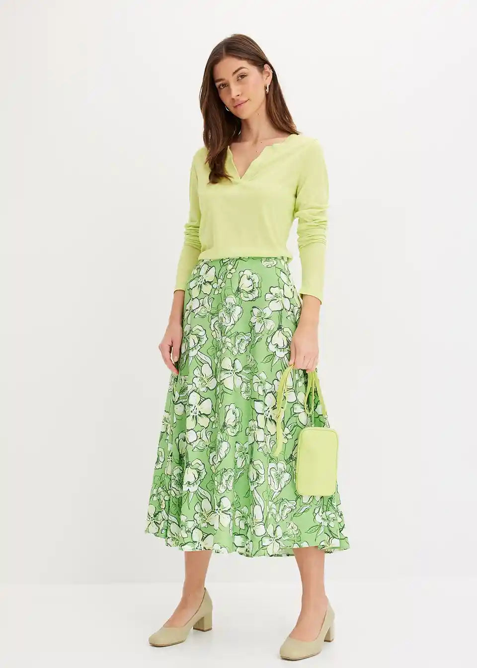 Majica z okroglim ovratnim izrezom, podaljšanim v V iz mehke viskoze