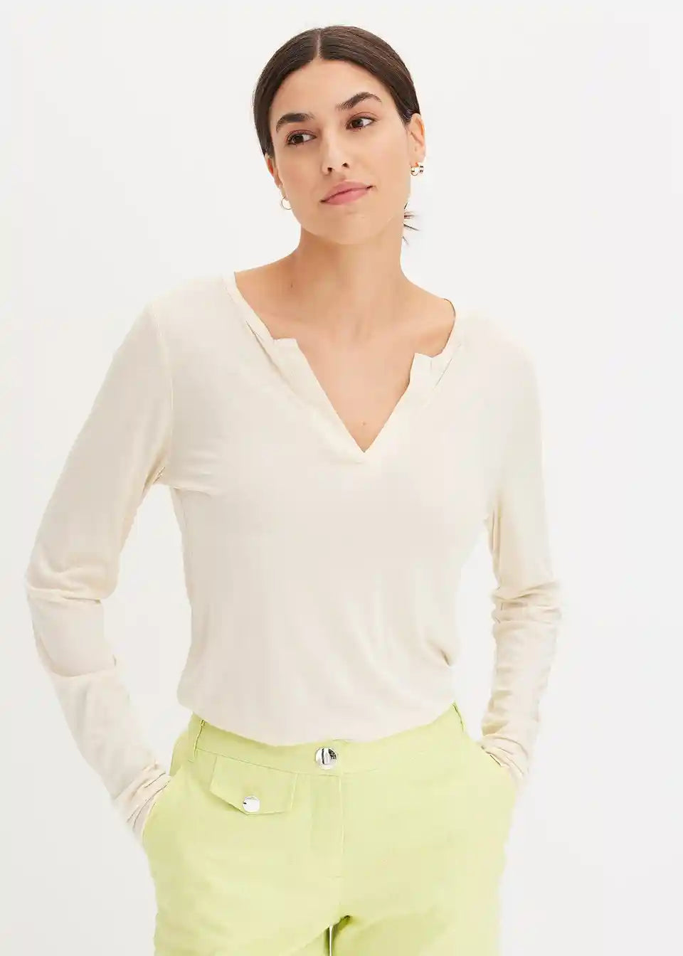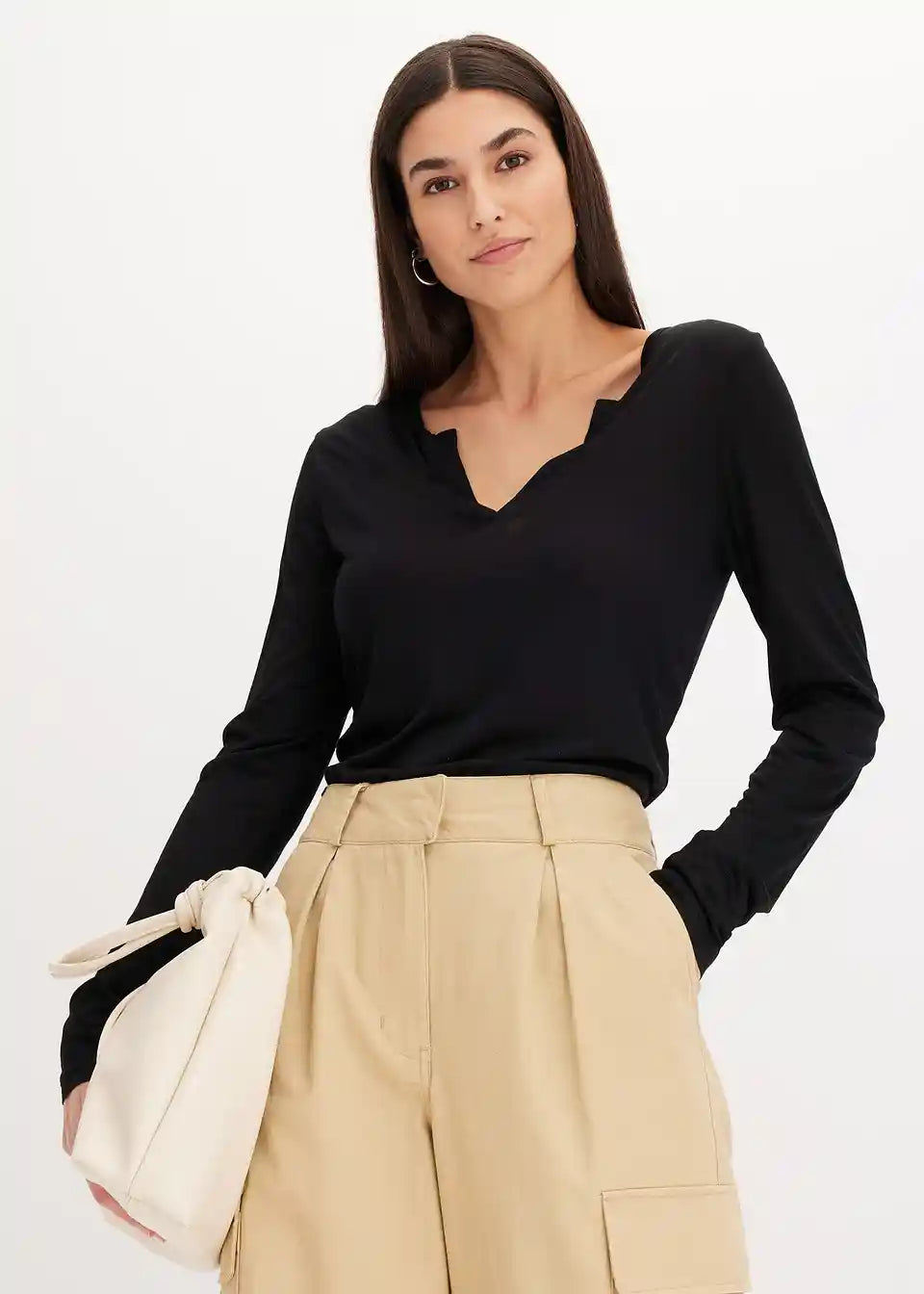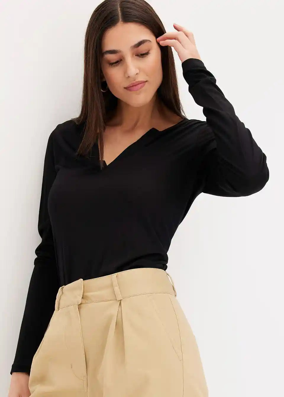 Majica z dolgimi rokavi in odprtim V-izrezom