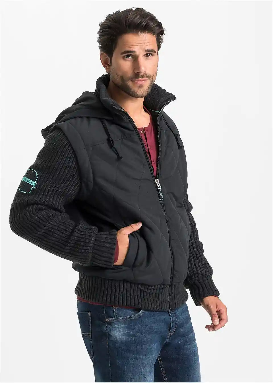 Športni spremljevalec za hladne dni - to je ta ležerna jakna z pletenimi rokavi v Regular Fit kroju. Kratka jakna znamke John Baner je grobo prešita in zasnovana z dvema stranskima žepoma. Rokavi, ovratnik in rob prepričajo s svojim rebrastim pletenim materialom. Kapuca jakne v Regular Fit kroju se lahko prilagodi z vrvico.