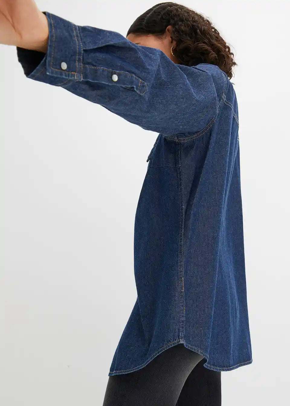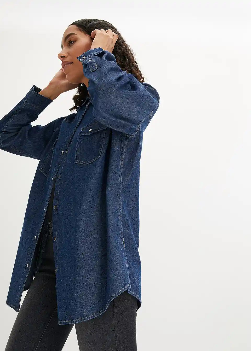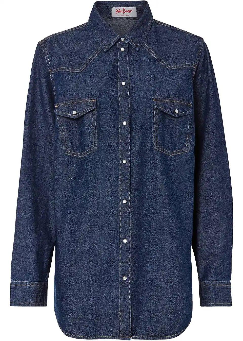 Klasična osnovna dolga jeanssrajca z dvema žepoma na prsih
