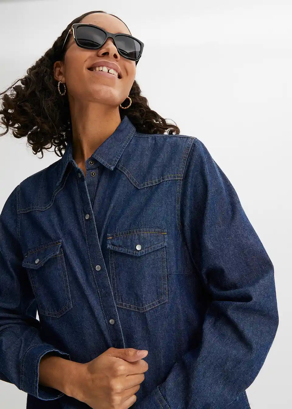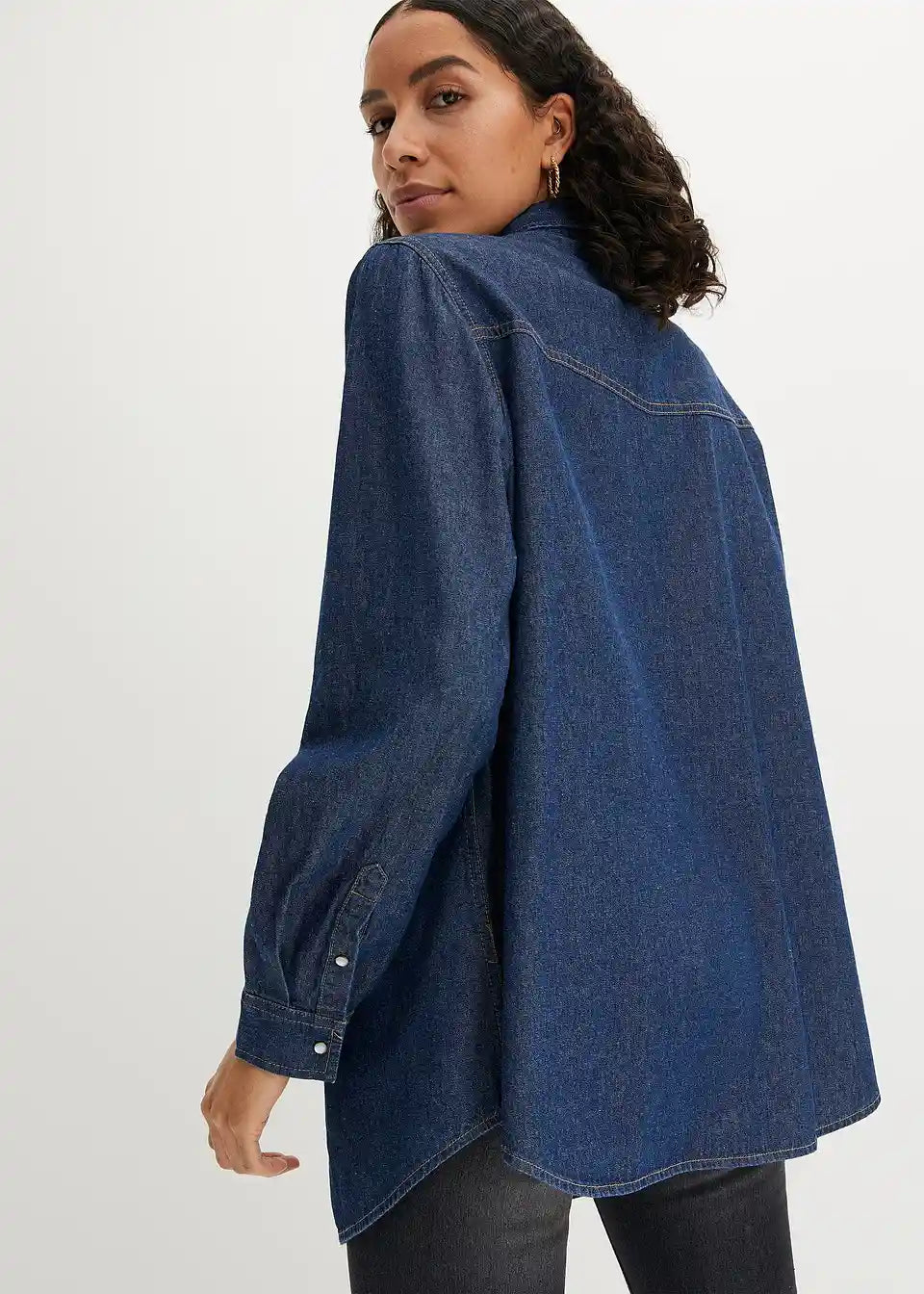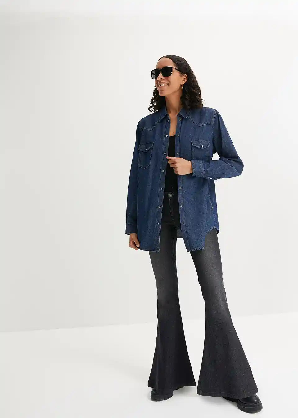 Klasična osnovna dolga jeanssrajca z dvema žepoma na prsih
