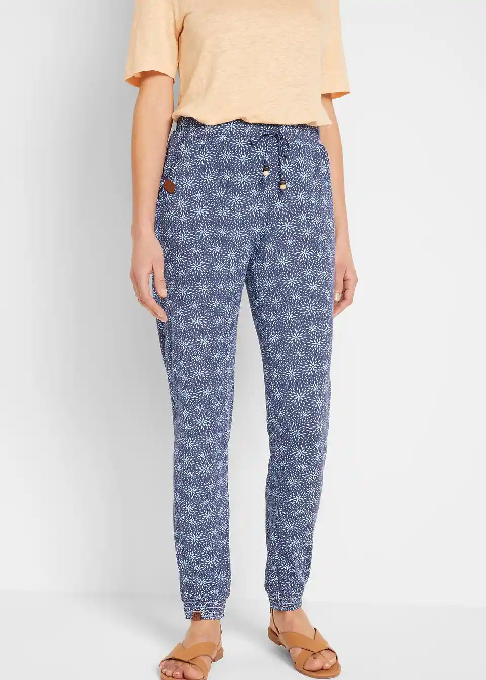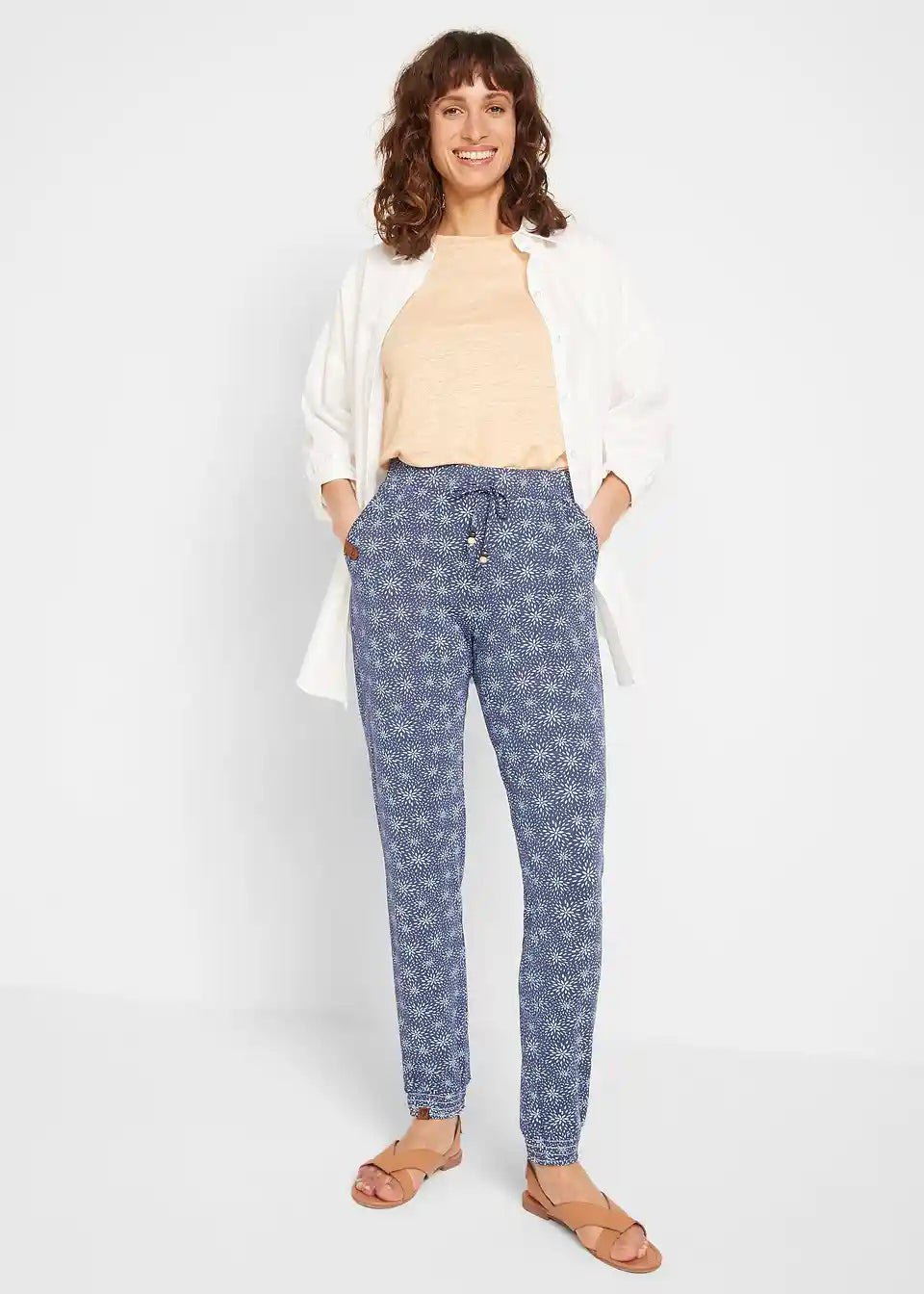 Hlače s potiskom iz mehkega jerseyja z deležem viskoze