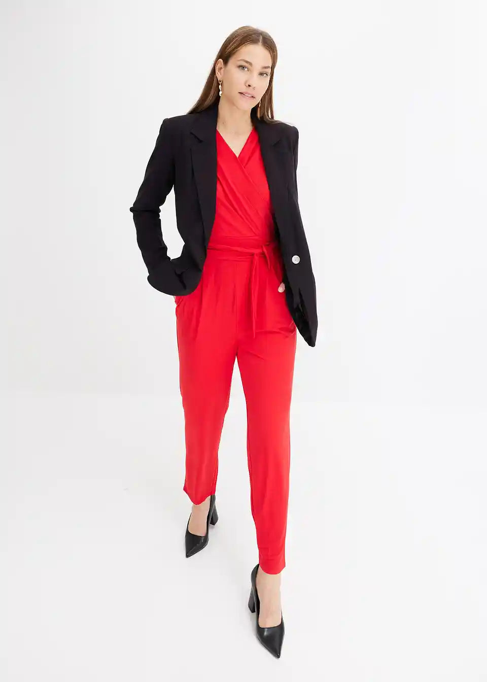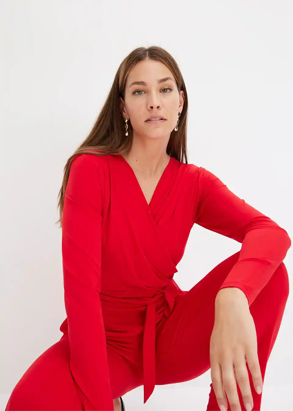 Seksi kombinezon z izrezom v ovitem videzu in zavezovalnim pasom