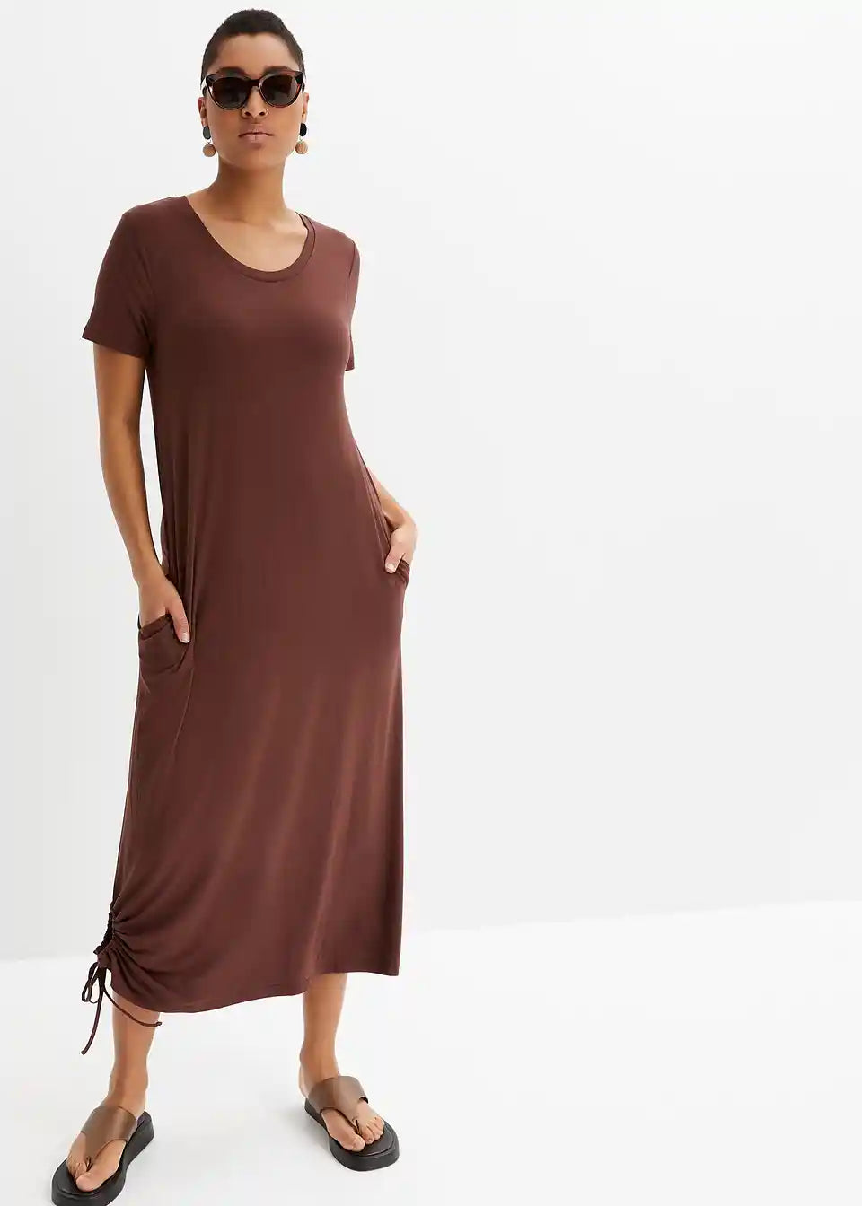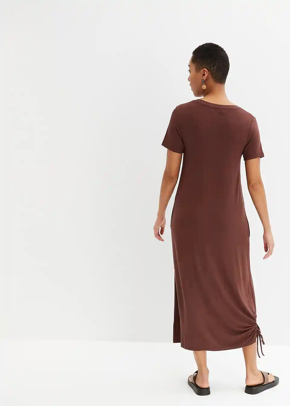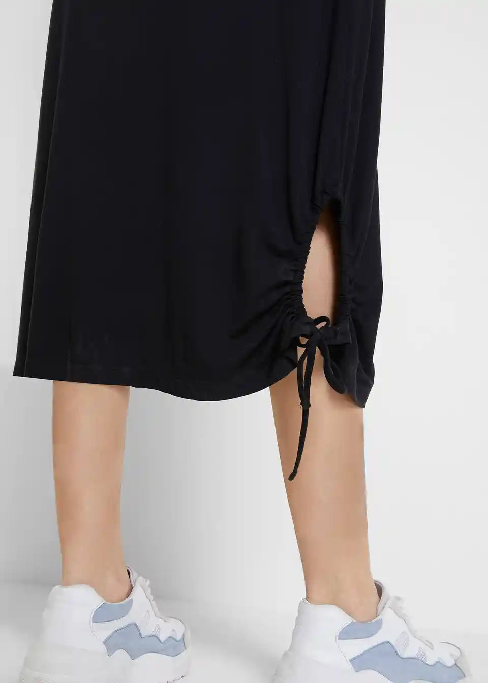 Priložnostna obleka z okroglim izrezom in stranskim detajlom gubanja na robu