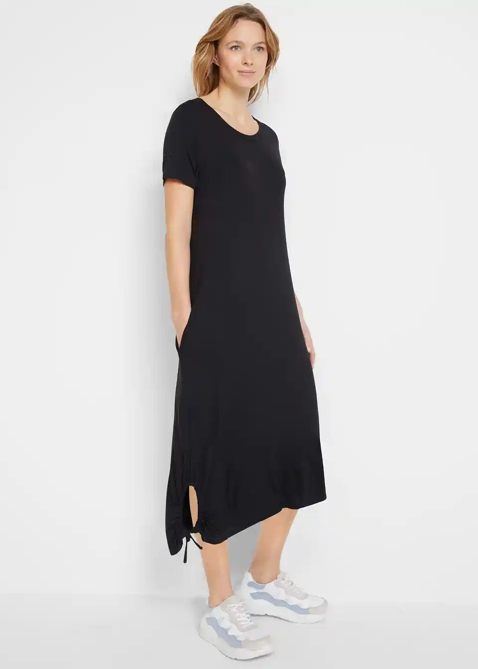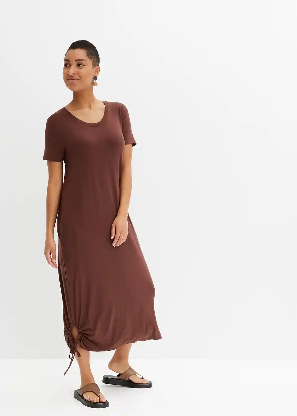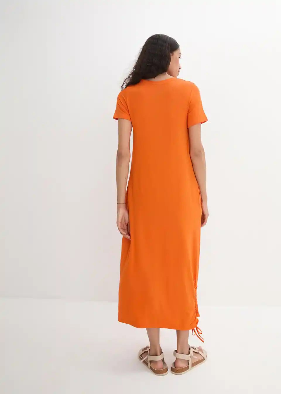 Priložnostna obleka z okroglim izrezom in stranskim detajlom gubanja na robu