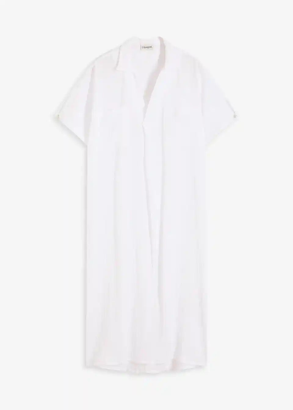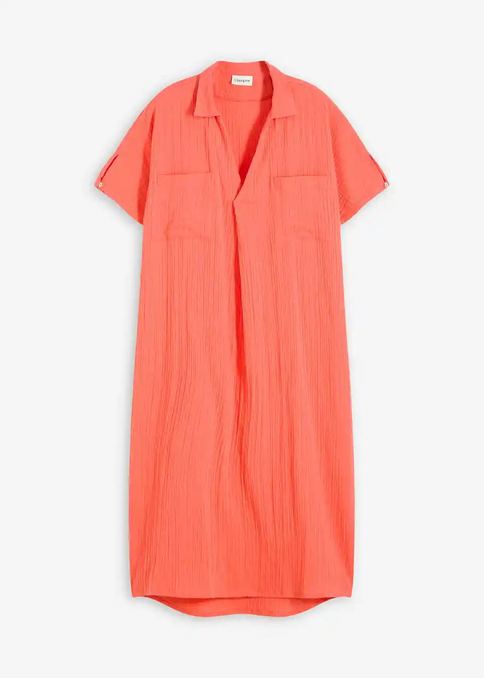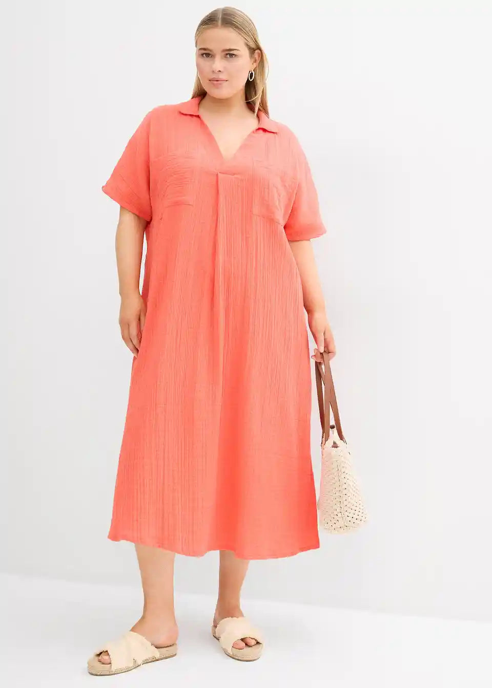 Kaftan obleka v ohlapnem kroju s kimonskimi rokavi in stranskimi razporki na spodnjem robu.