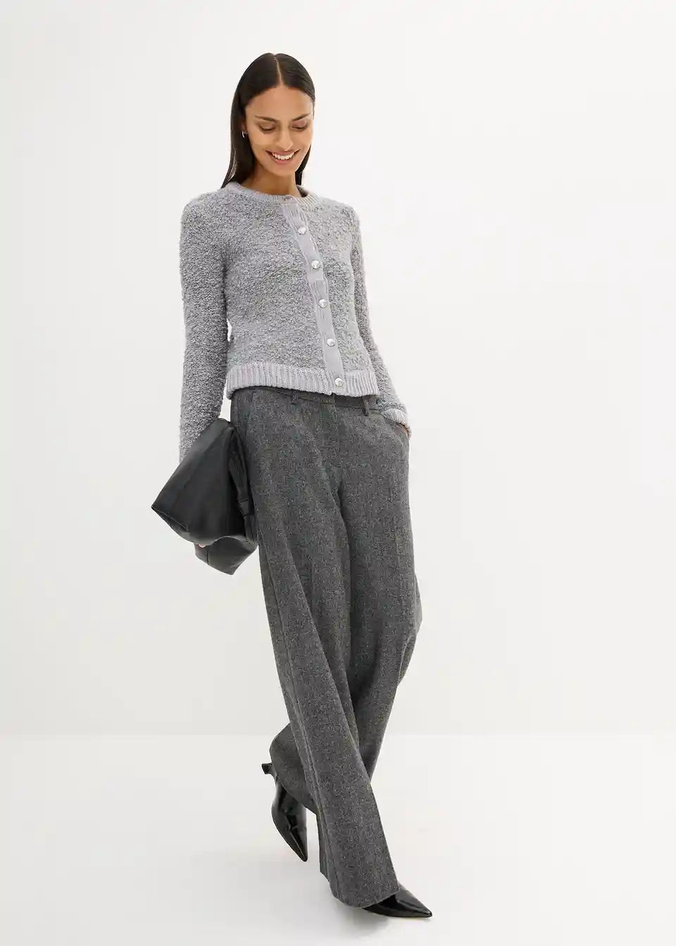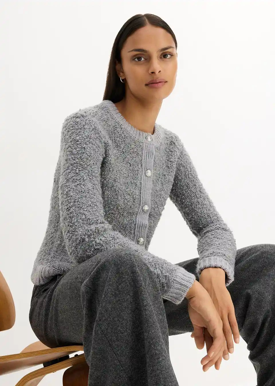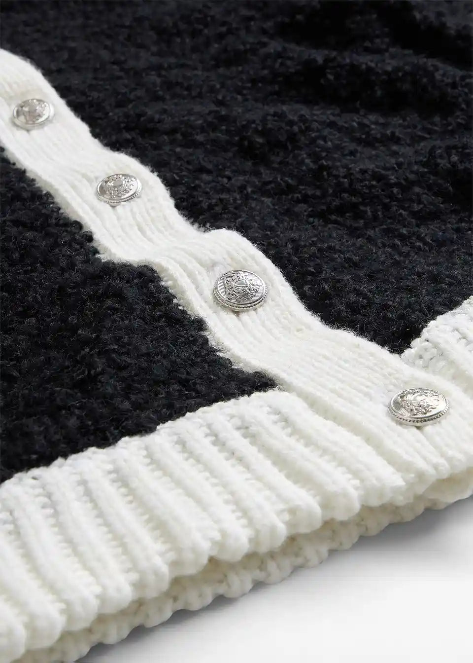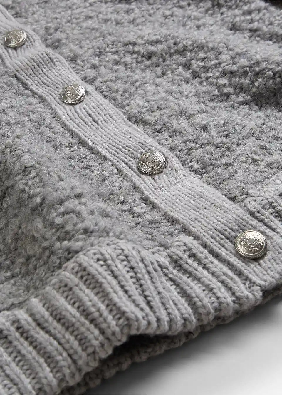 čudovita pletenina iz mehkega volnenega mešanice, z elegantnimi kovinskimi gumbi