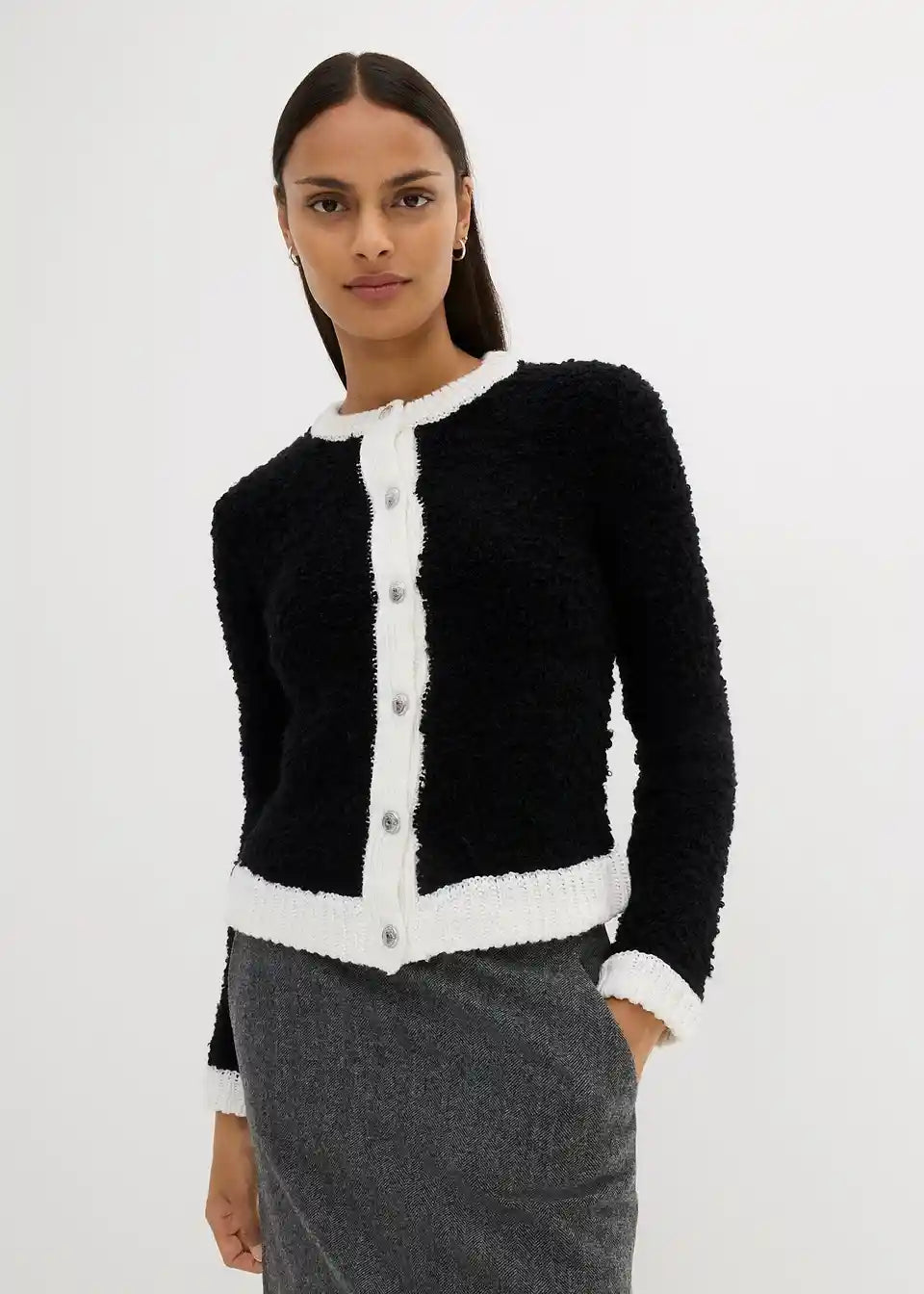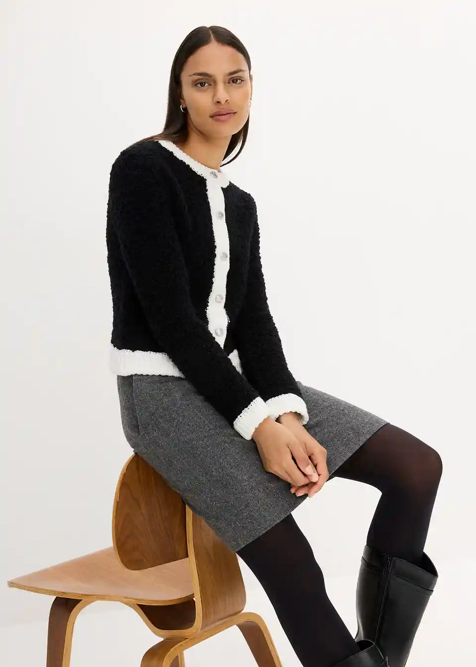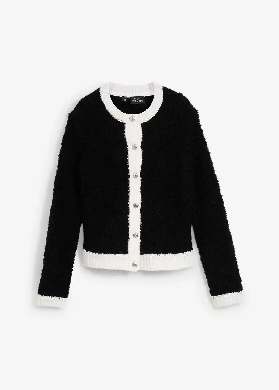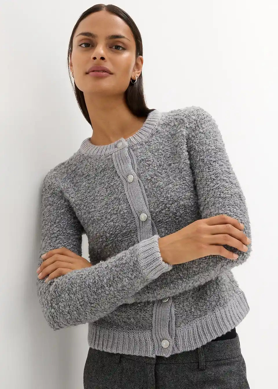 čudovita pletenina iz mehkega volnenega mešanice, z elegantnimi kovinskimi gumbi