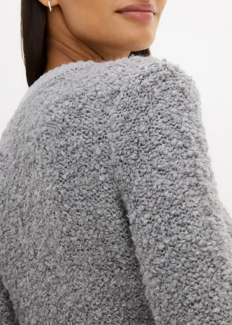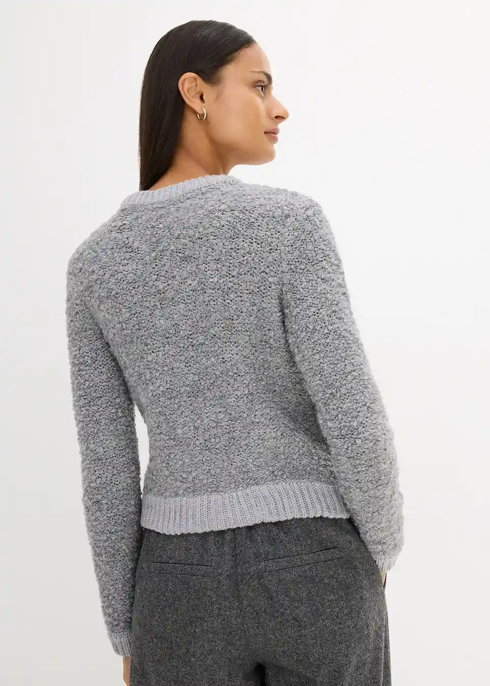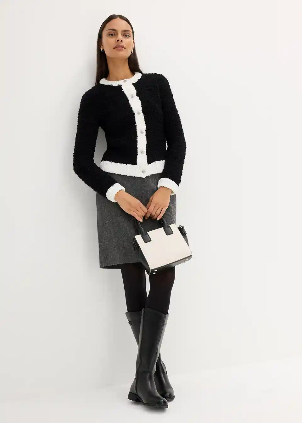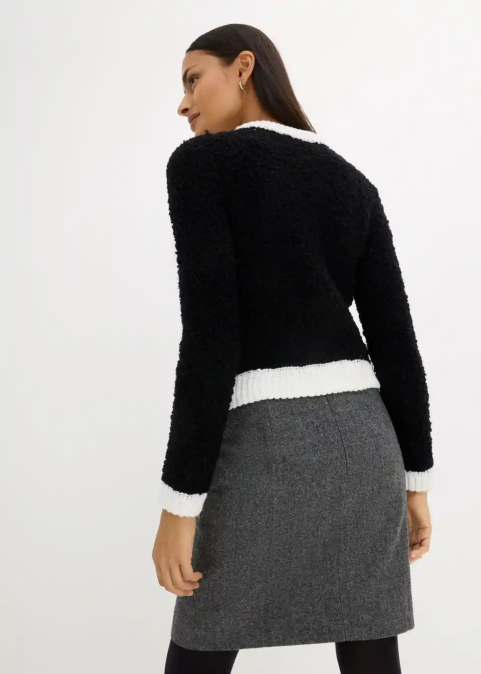 čudovita pletenina iz mehkega volnenega mešanice, z elegantnimi kovinskimi gumbi