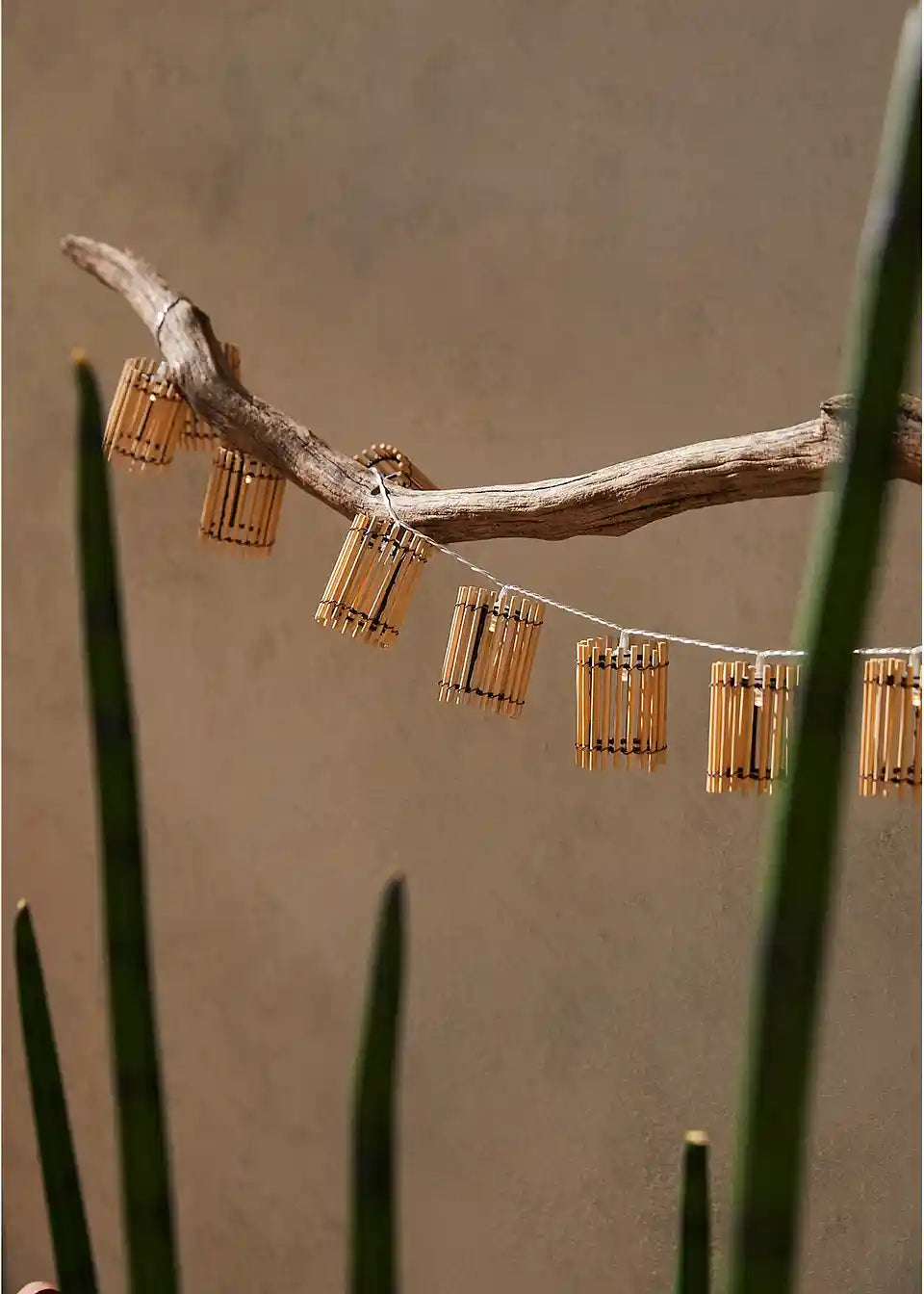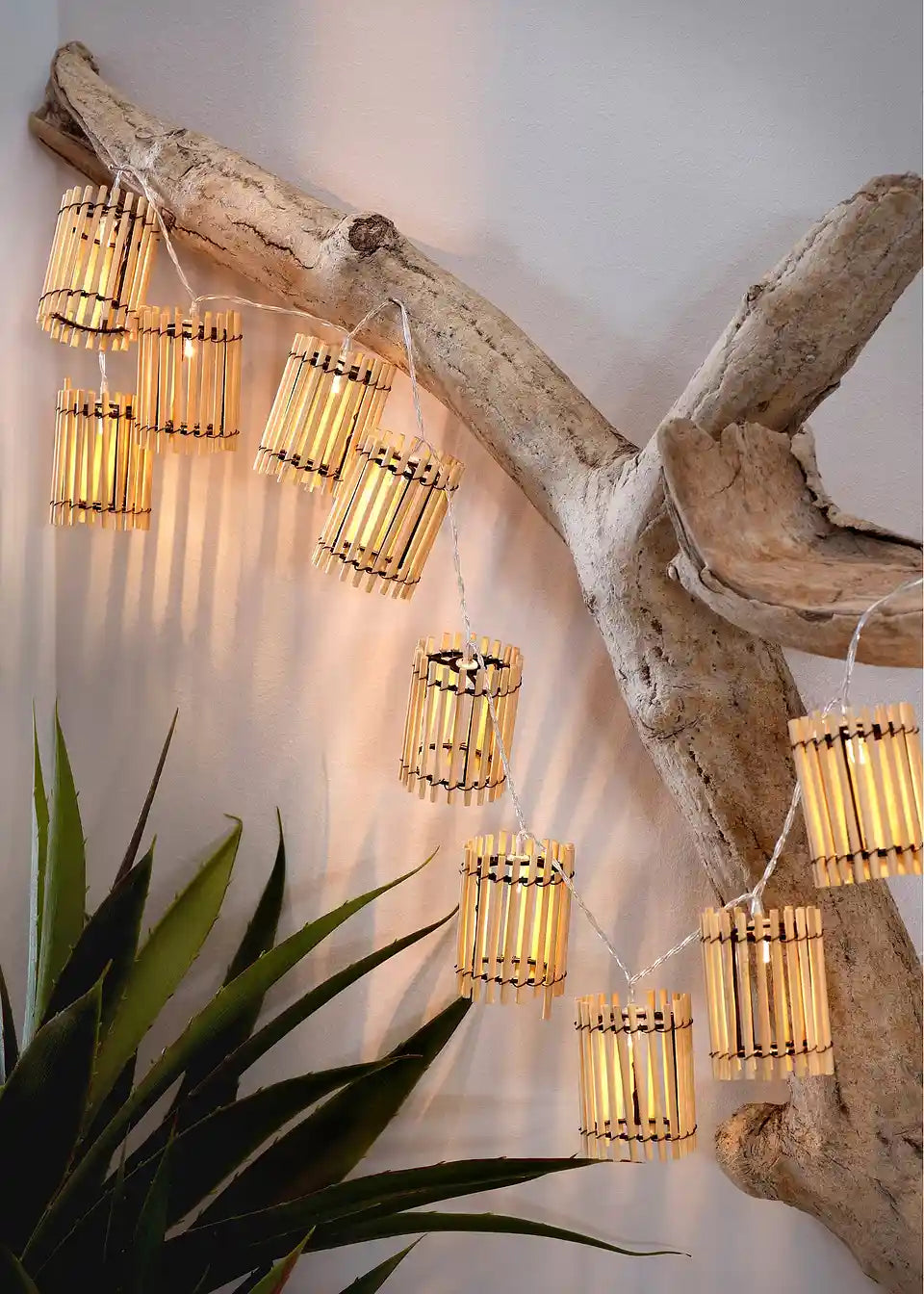 Prava dekoracija za prijetne večere na vrtu, terasi ali balkonu. Veriga lučk z bambusom v naravnem videzu. S stikalom za vklop/izklop.