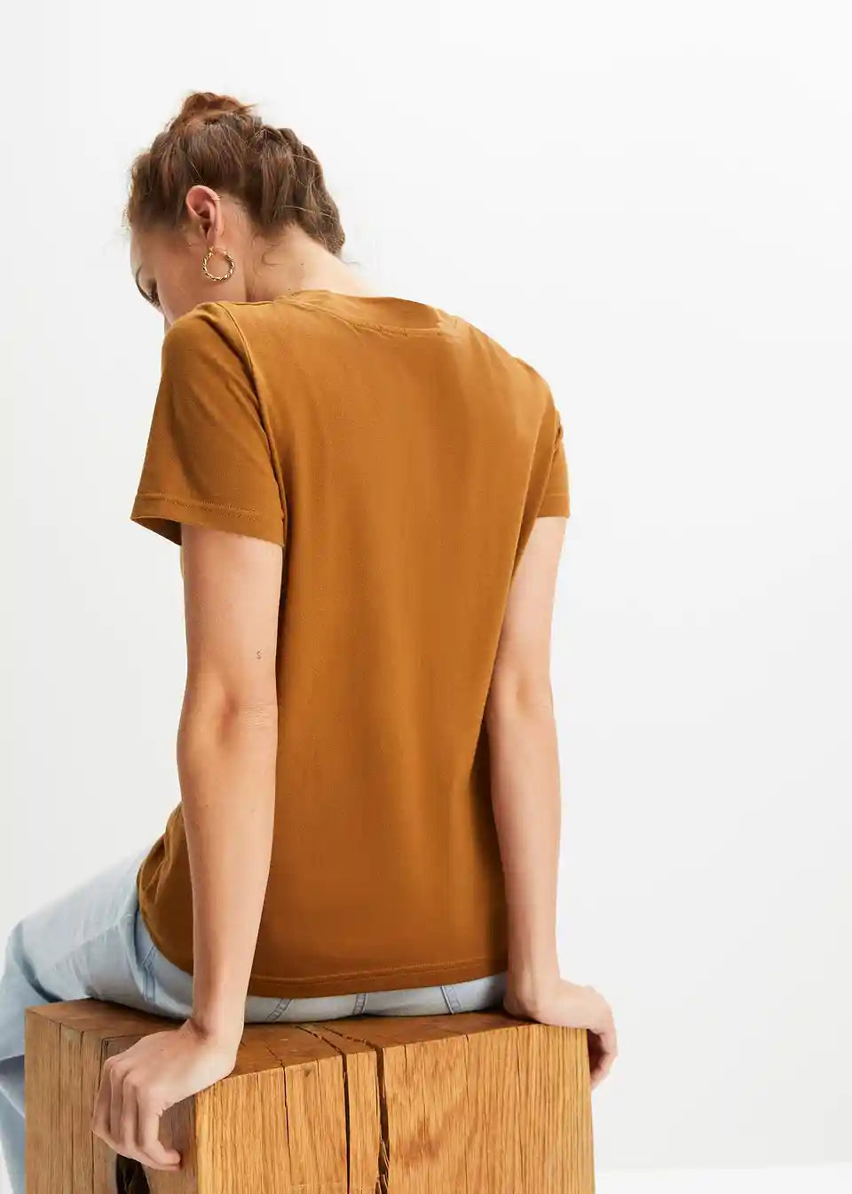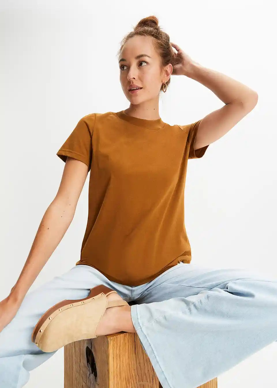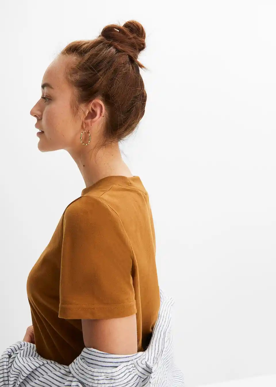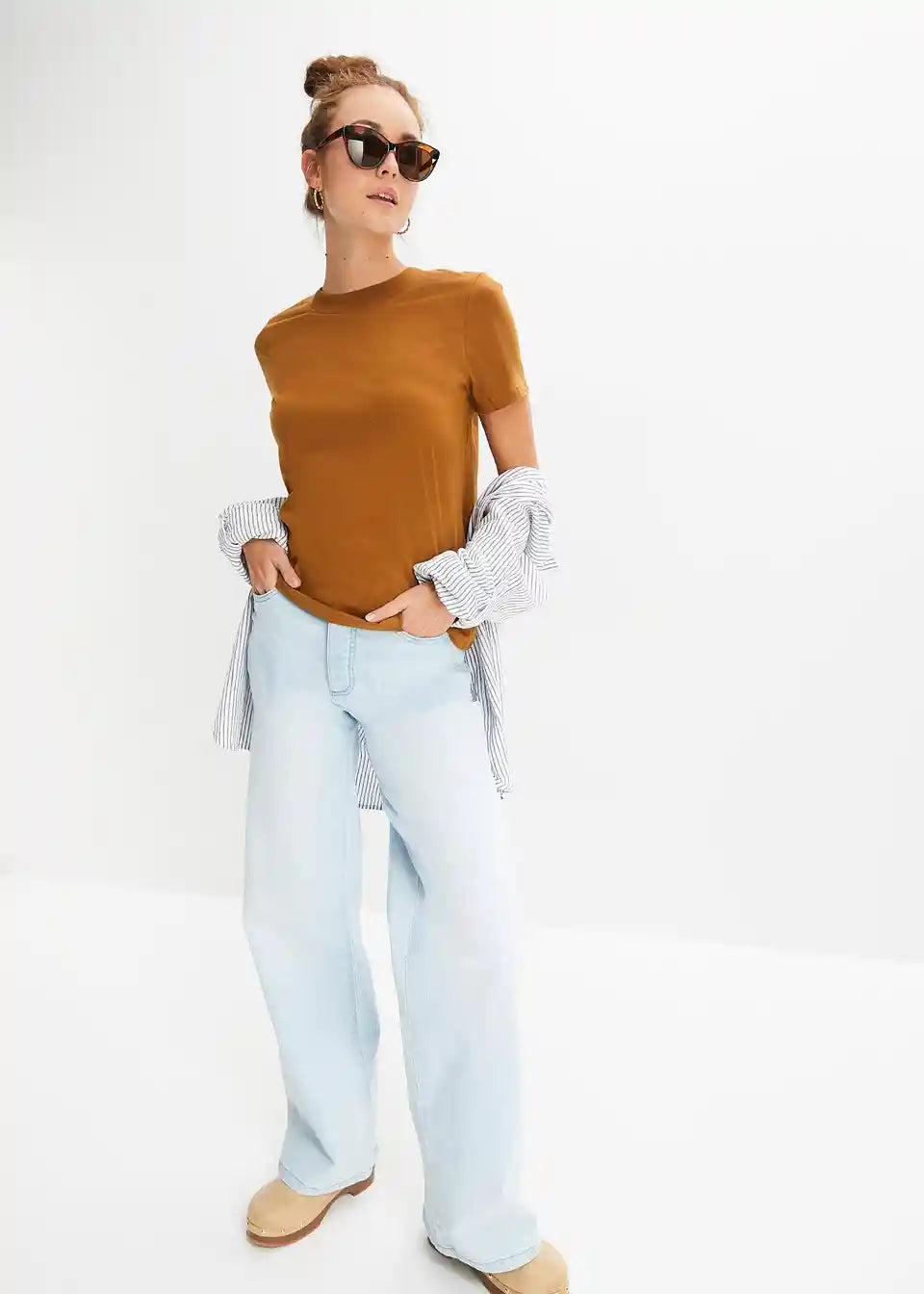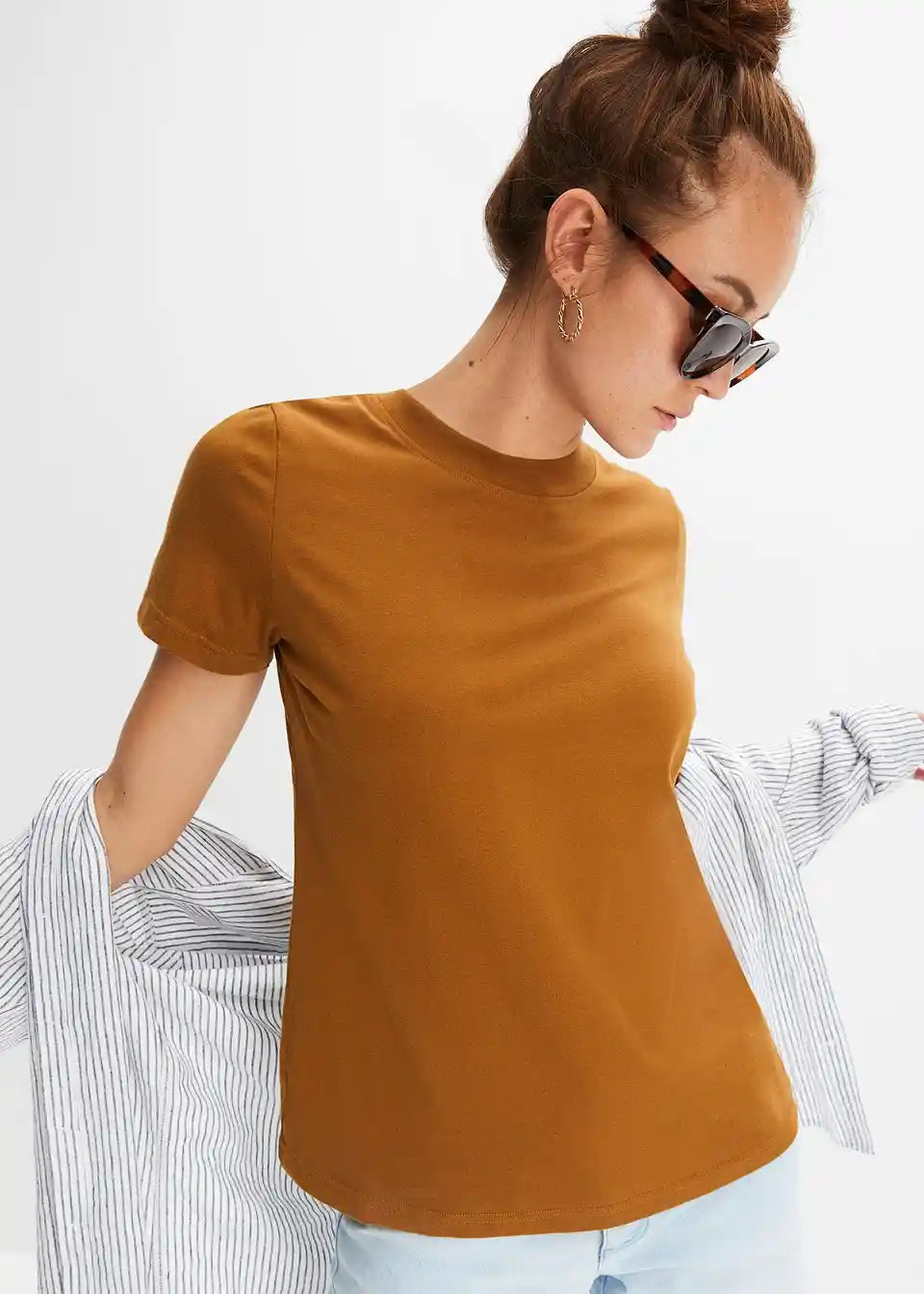 Majica z okroglim izrezom in rebrastim detajlom na ovratniku