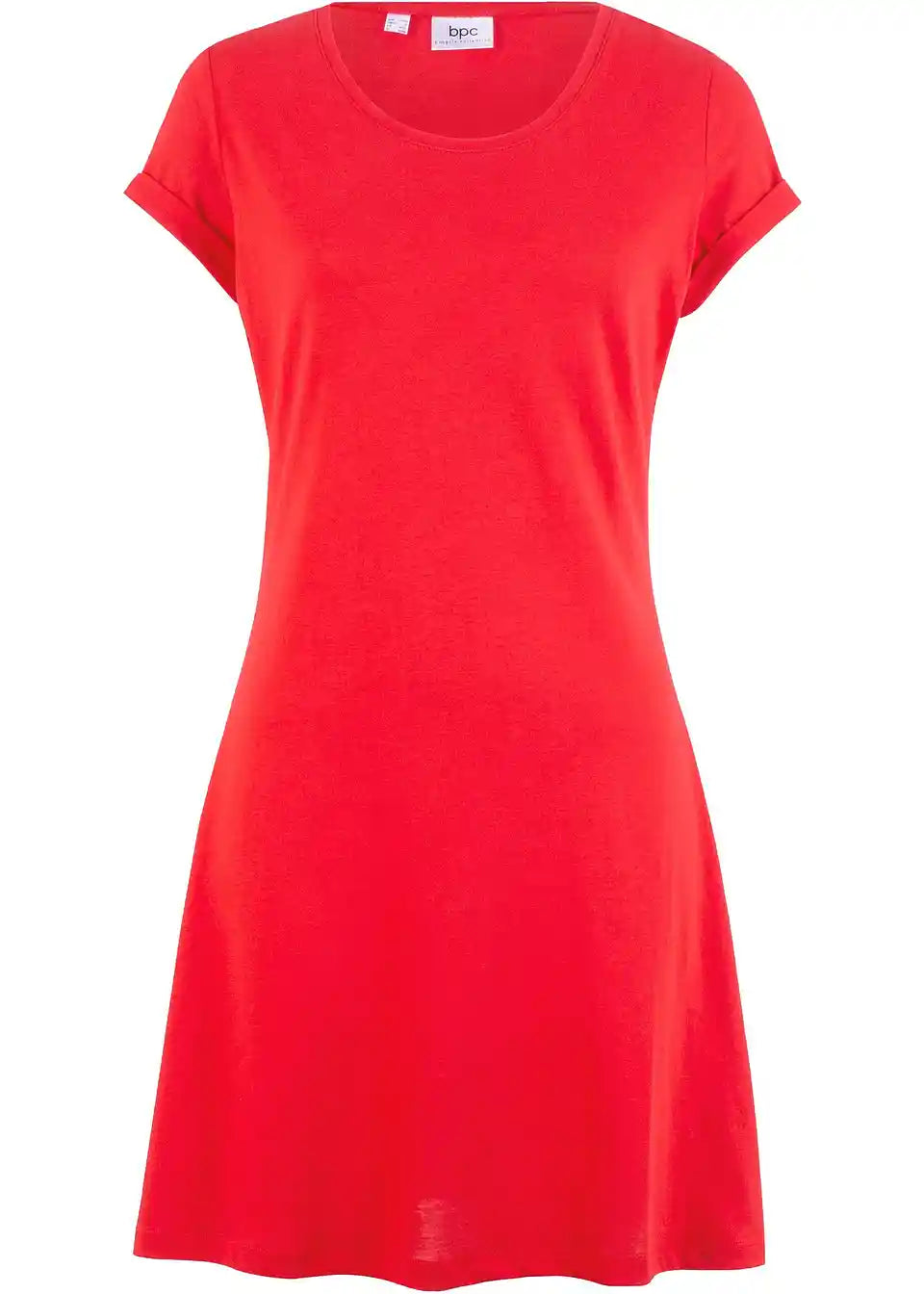 Udobna majica obleka iz bombaža s fiksiranimi zavihanimi rokavi
