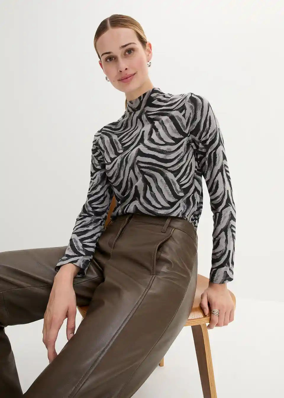 stilna majica z dolgimi rokavi s stoječim ovratnikom
