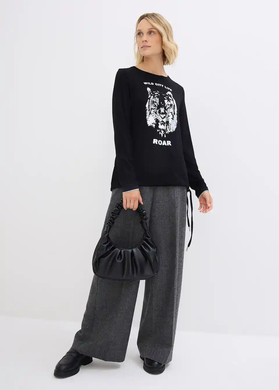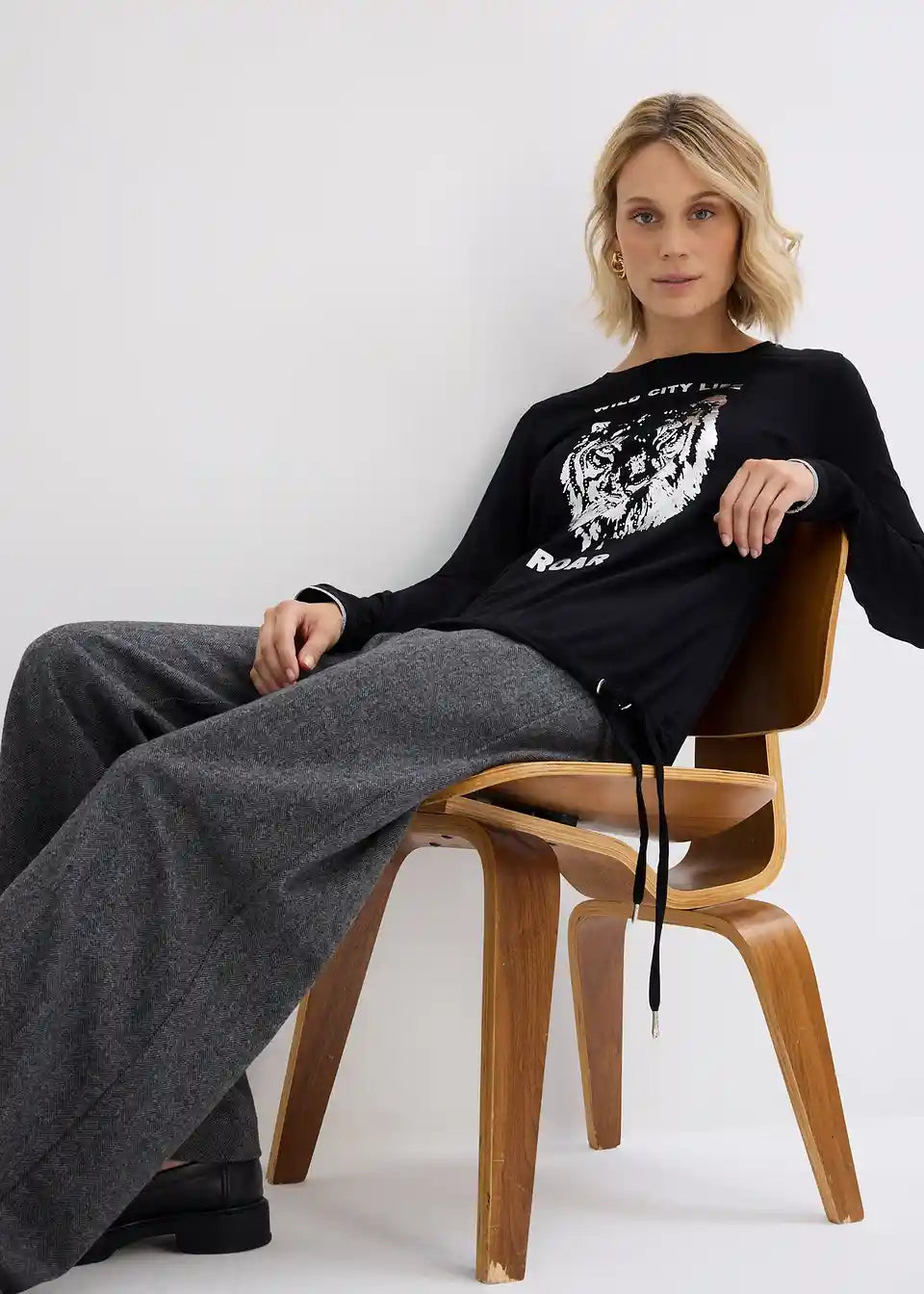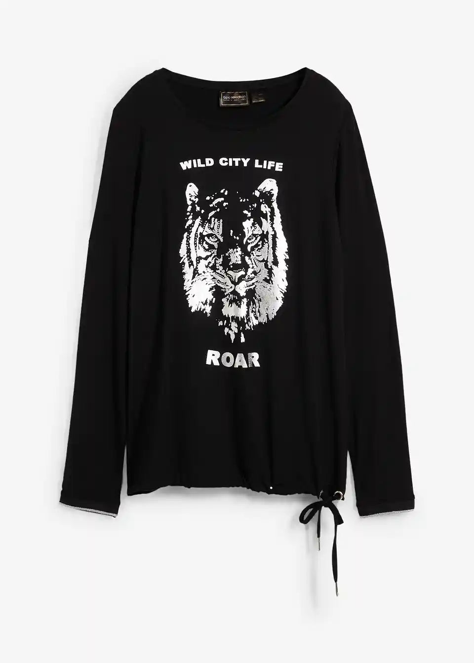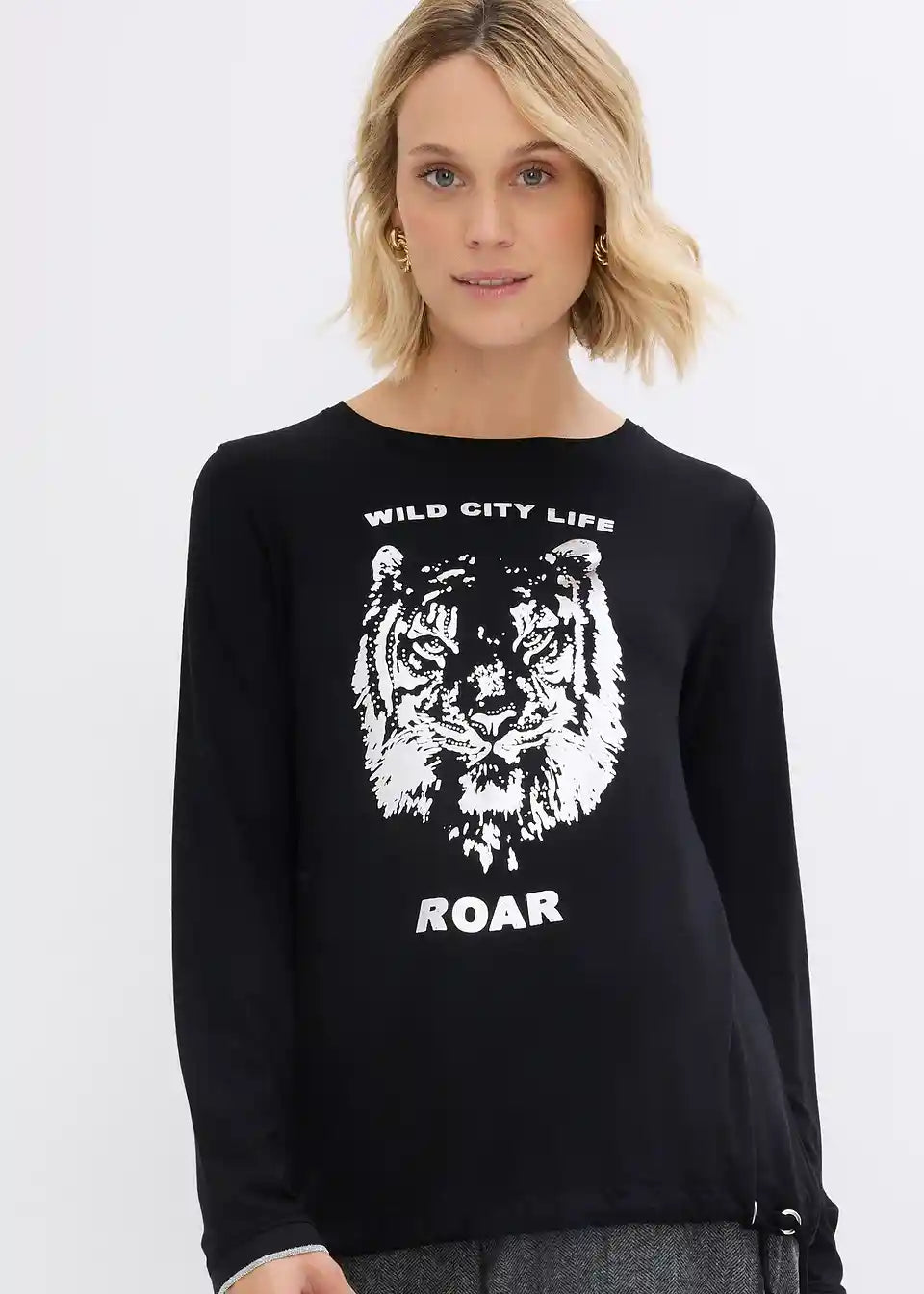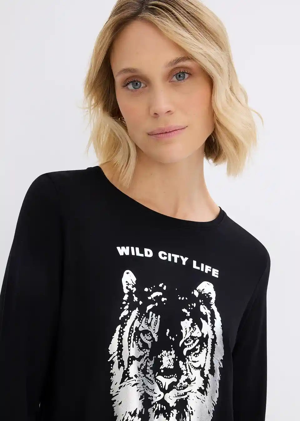 ženska majica z dolgimi rokavi z ležernim tigrastim potiskom