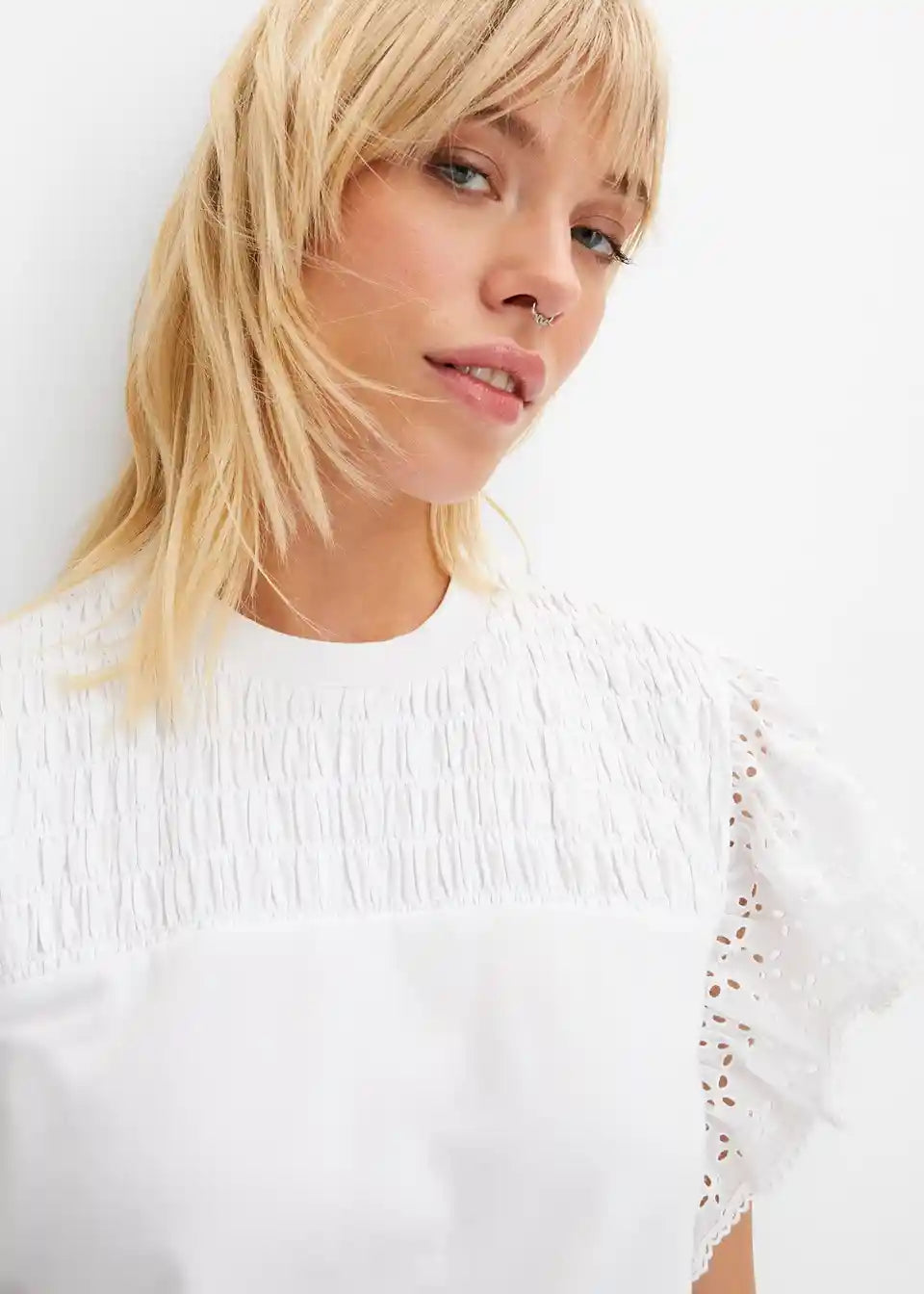 Majica z luknjičasto vezenino
