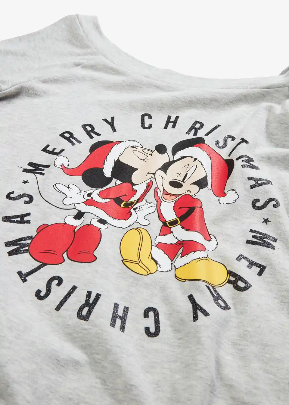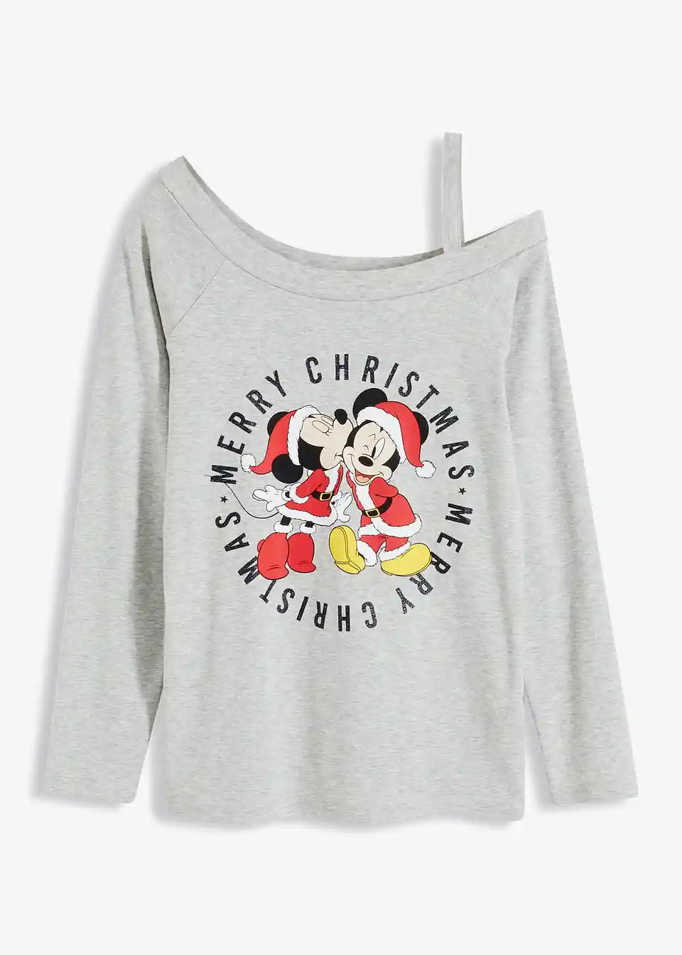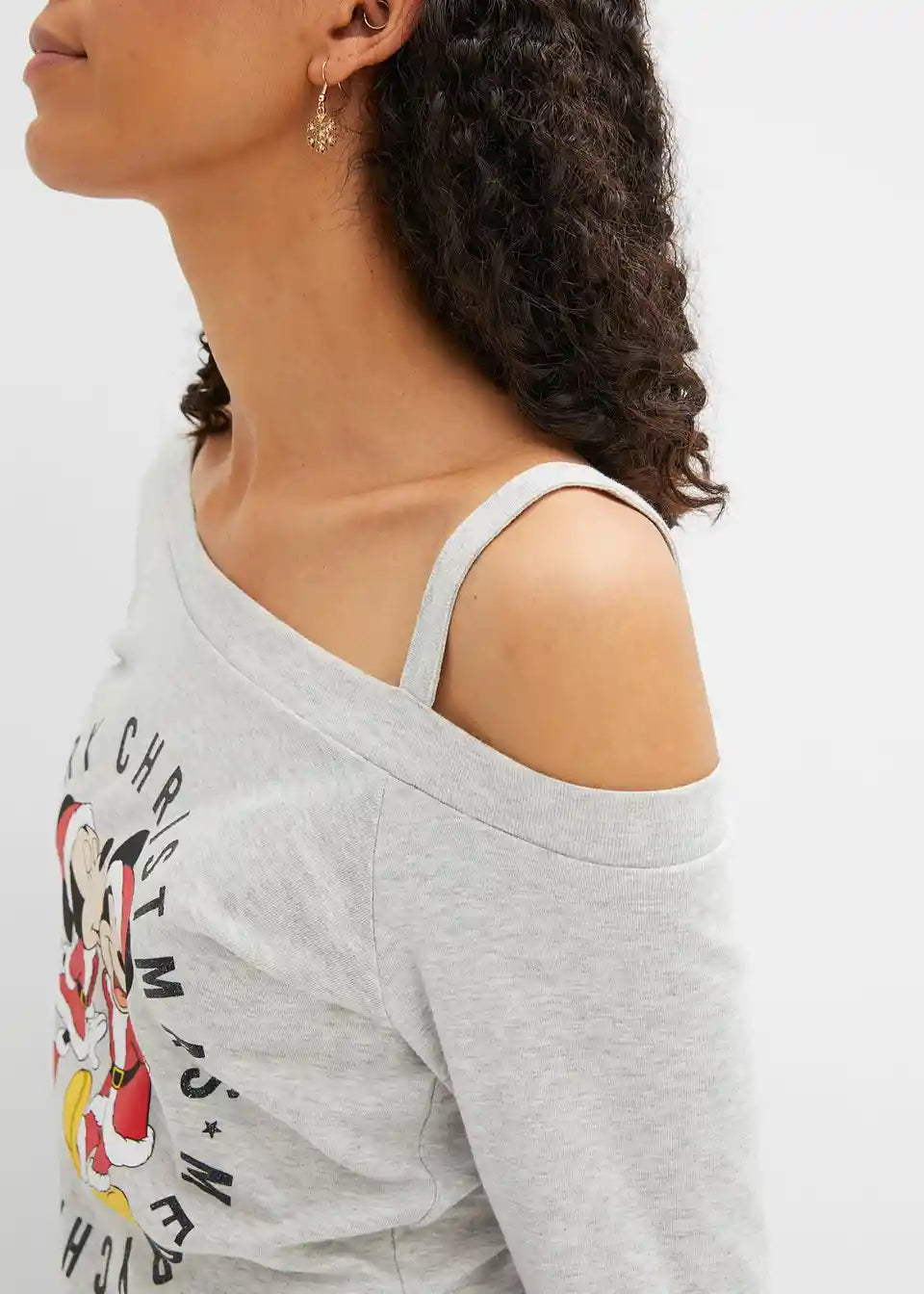 Igriva majica z dolgimi rokavi, izrezom na rami in Mickey Mouse potiskom