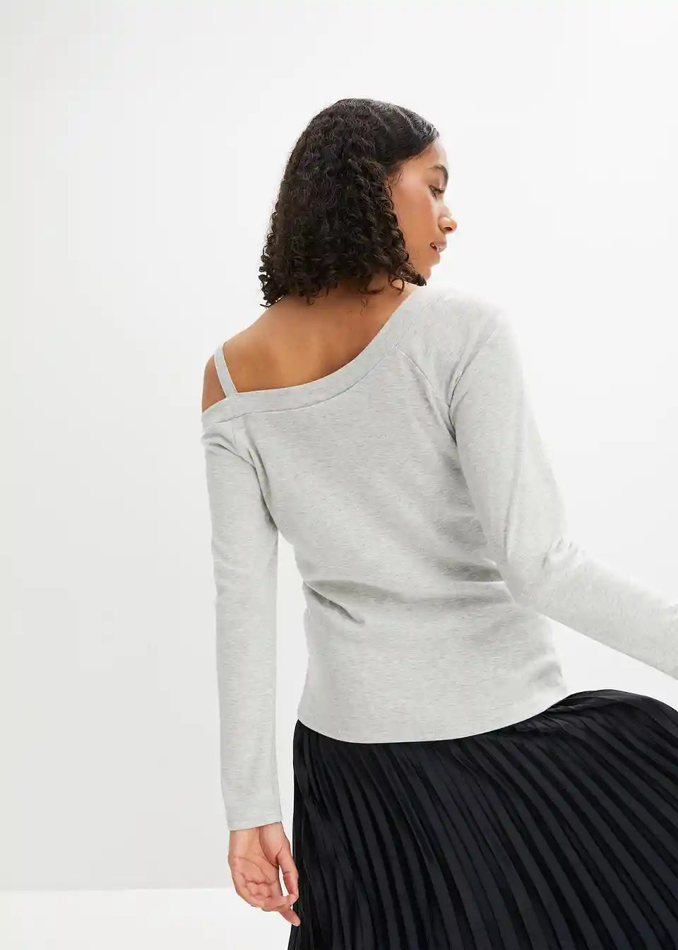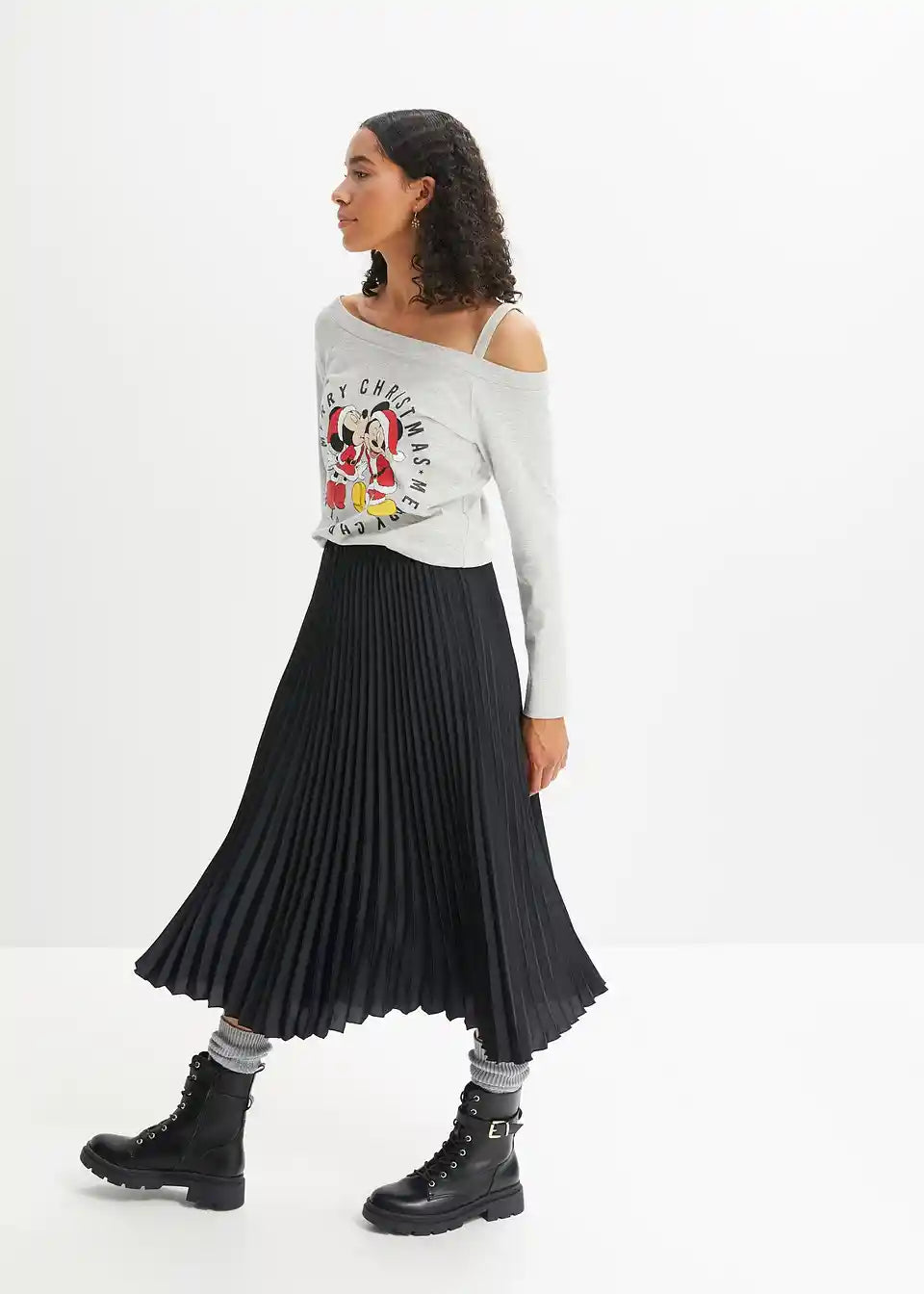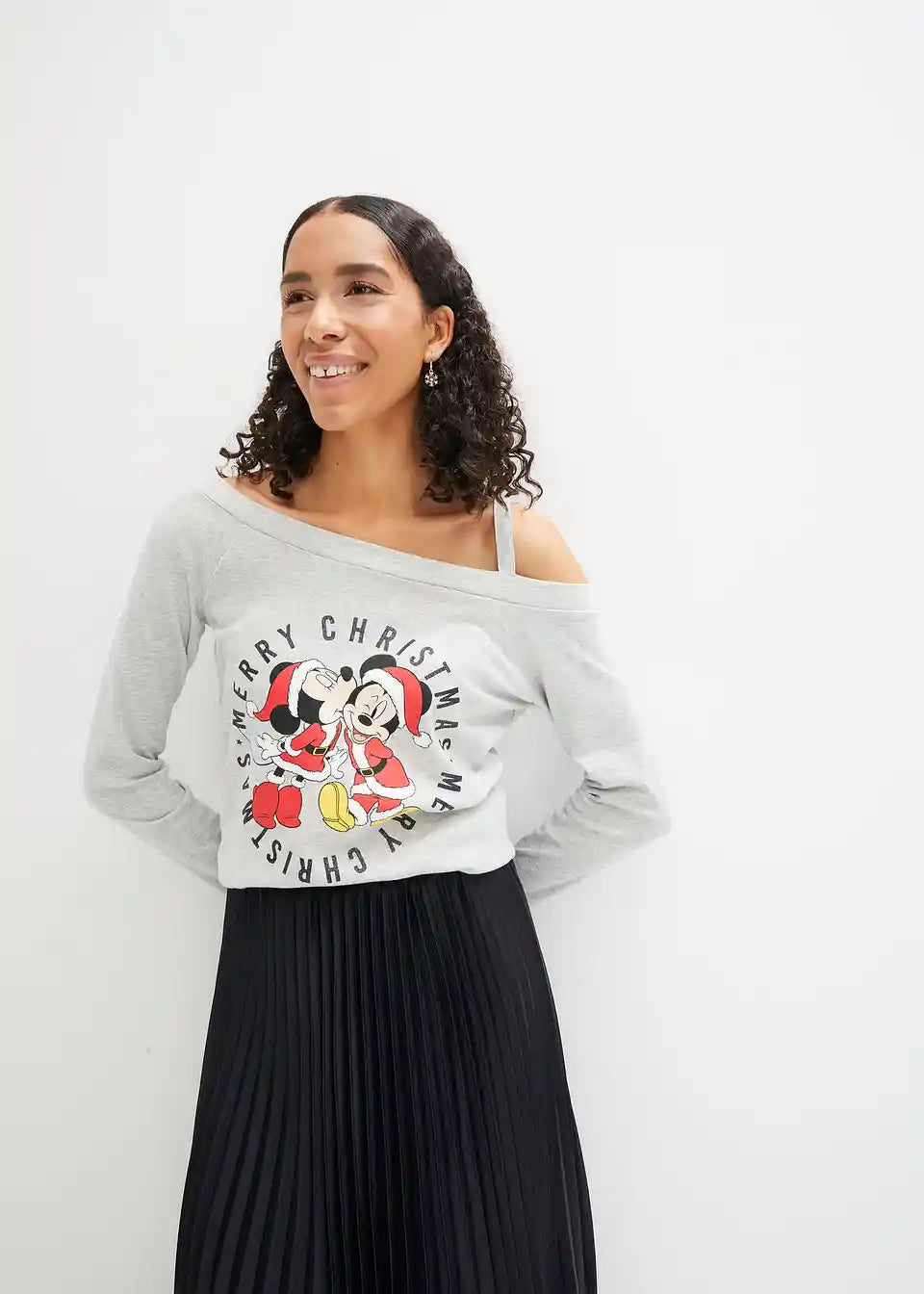 Igriva majica z dolgimi rokavi, izrezom na rami in Mickey Mouse potiskom