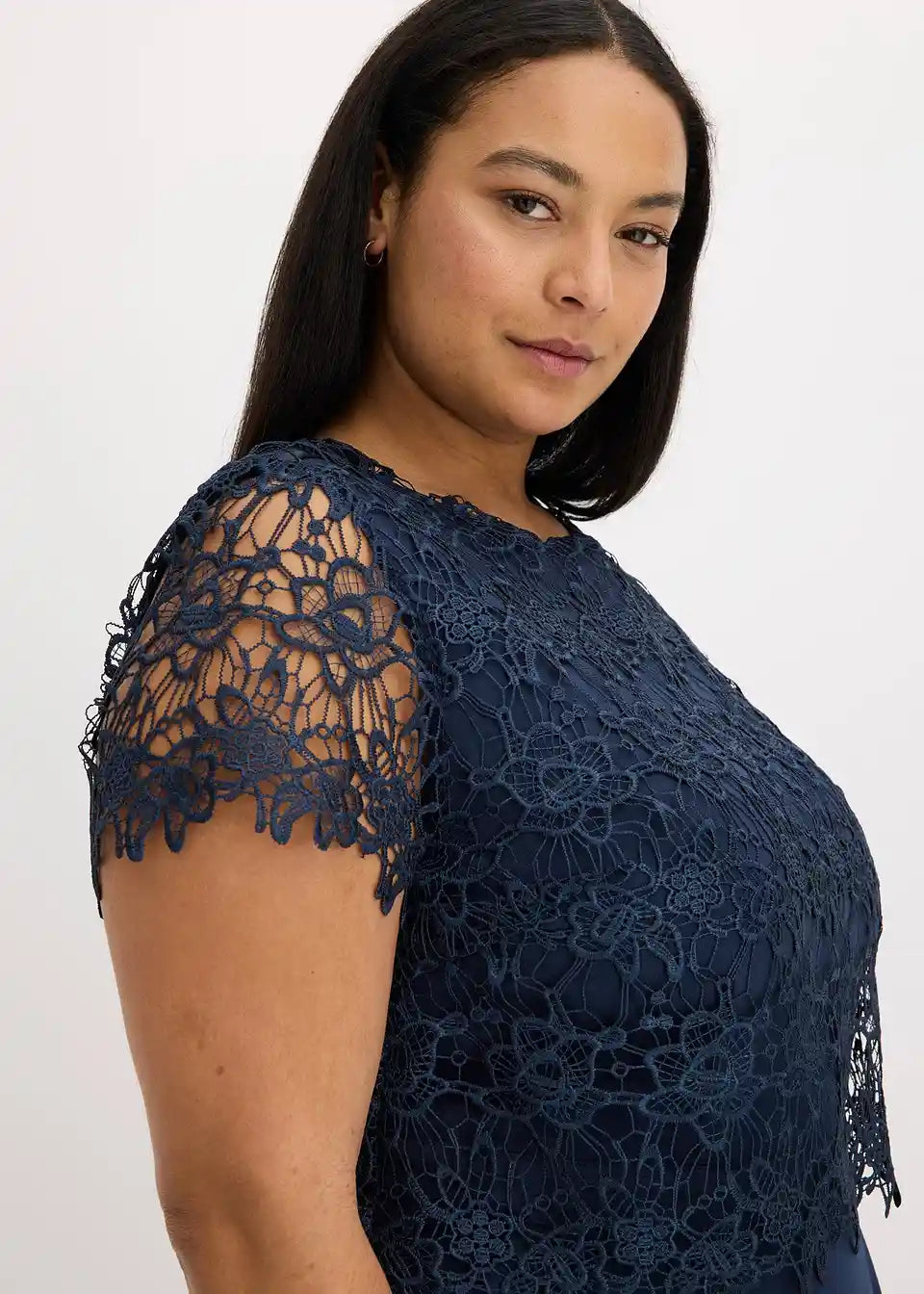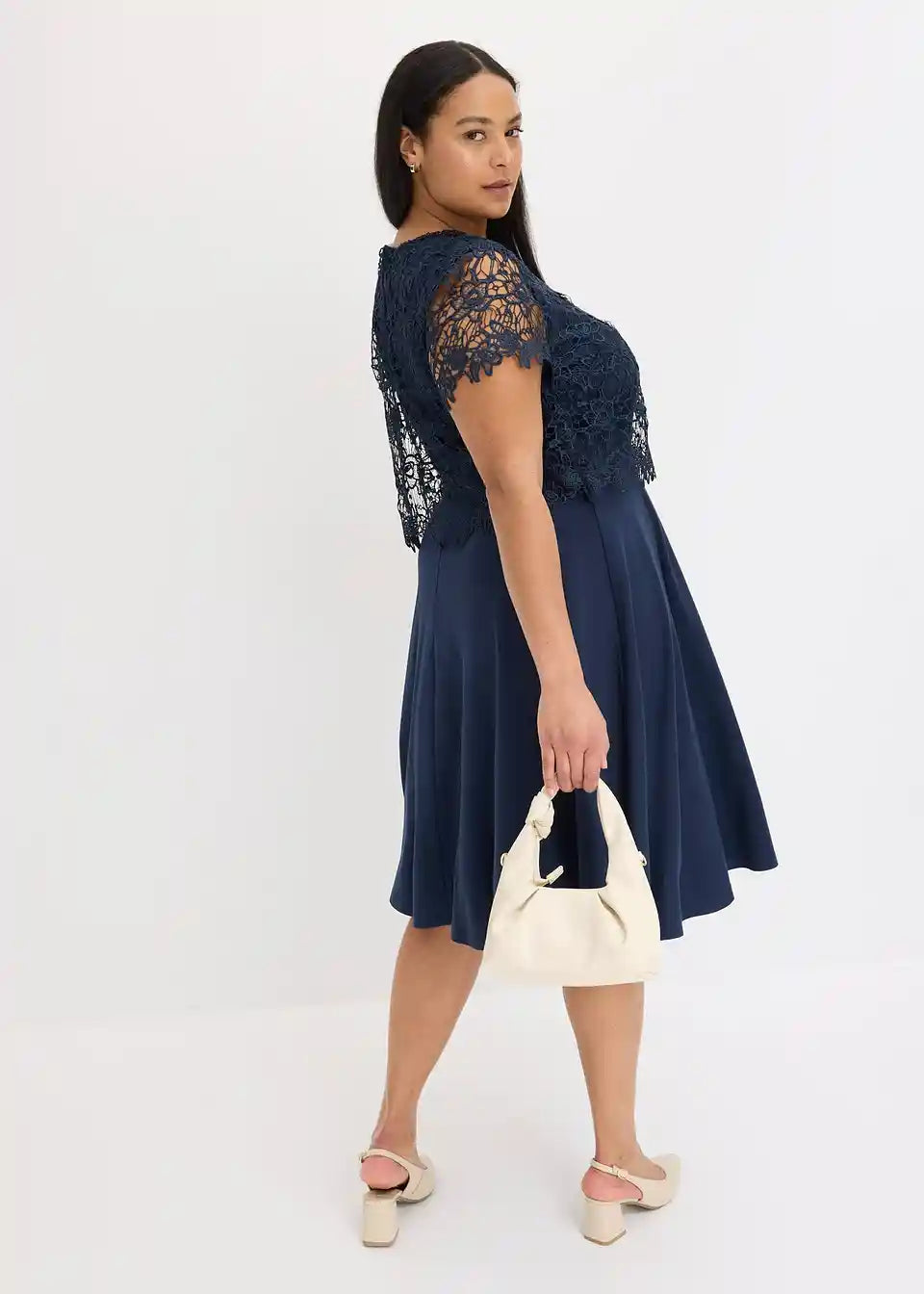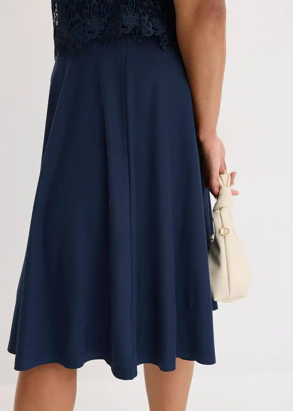 Eleganten in ženstven: Midi obleka s čipkastim zgornjim delom in razširjenim krilom