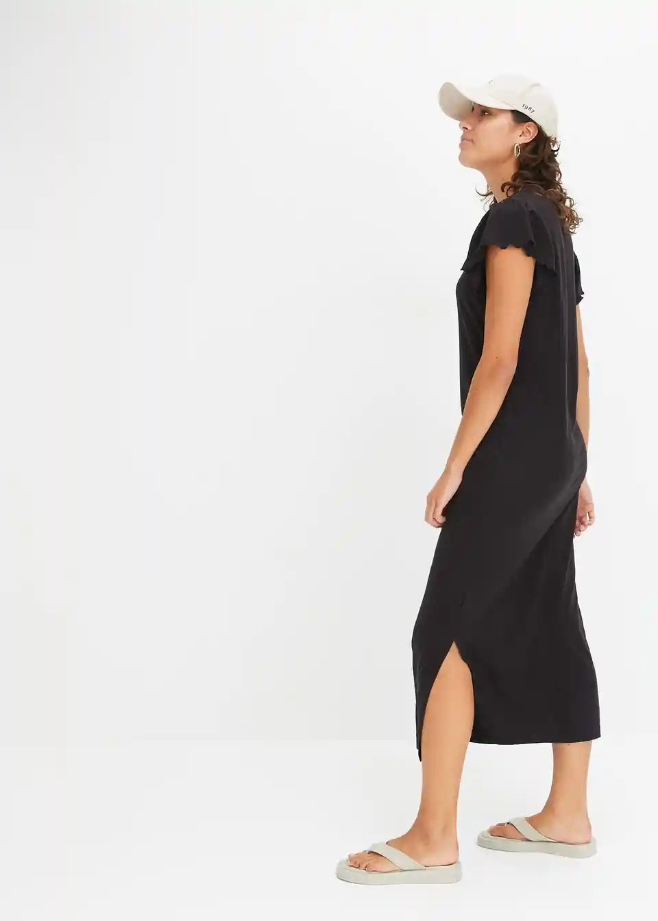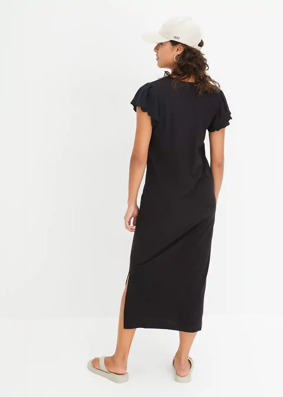 Midikleid iz bombaža z razcepljenimi rokavi in razporkom