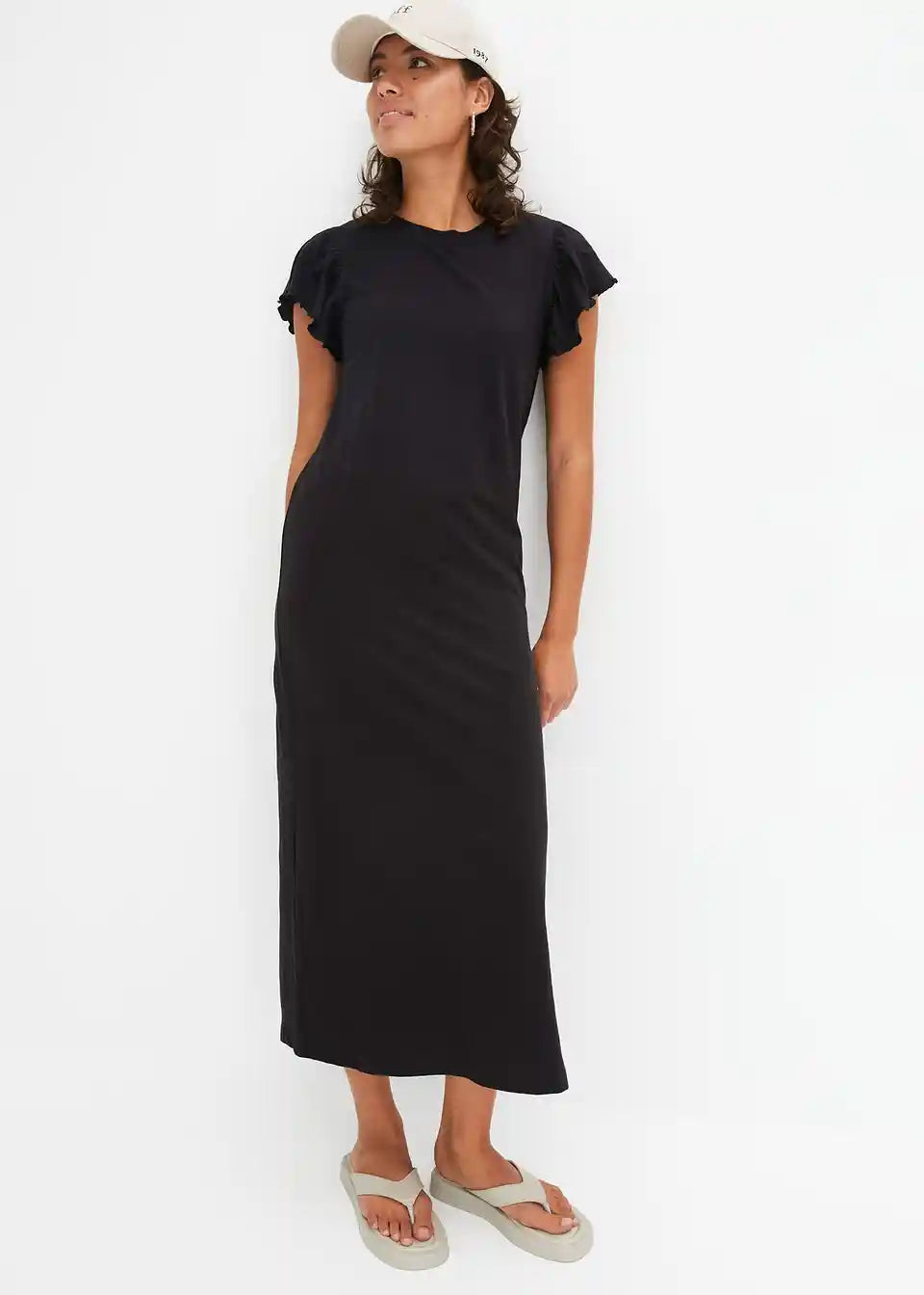 Midi obleka s krilastimi rokavi