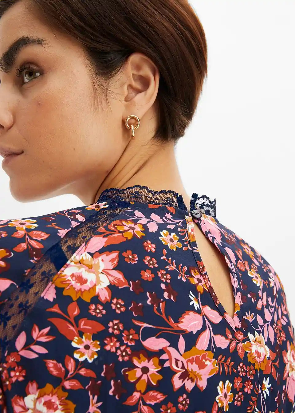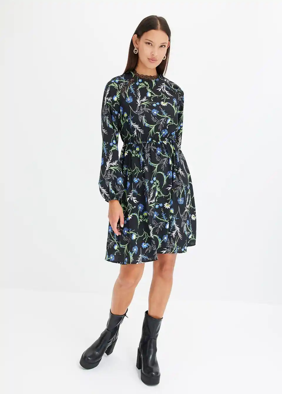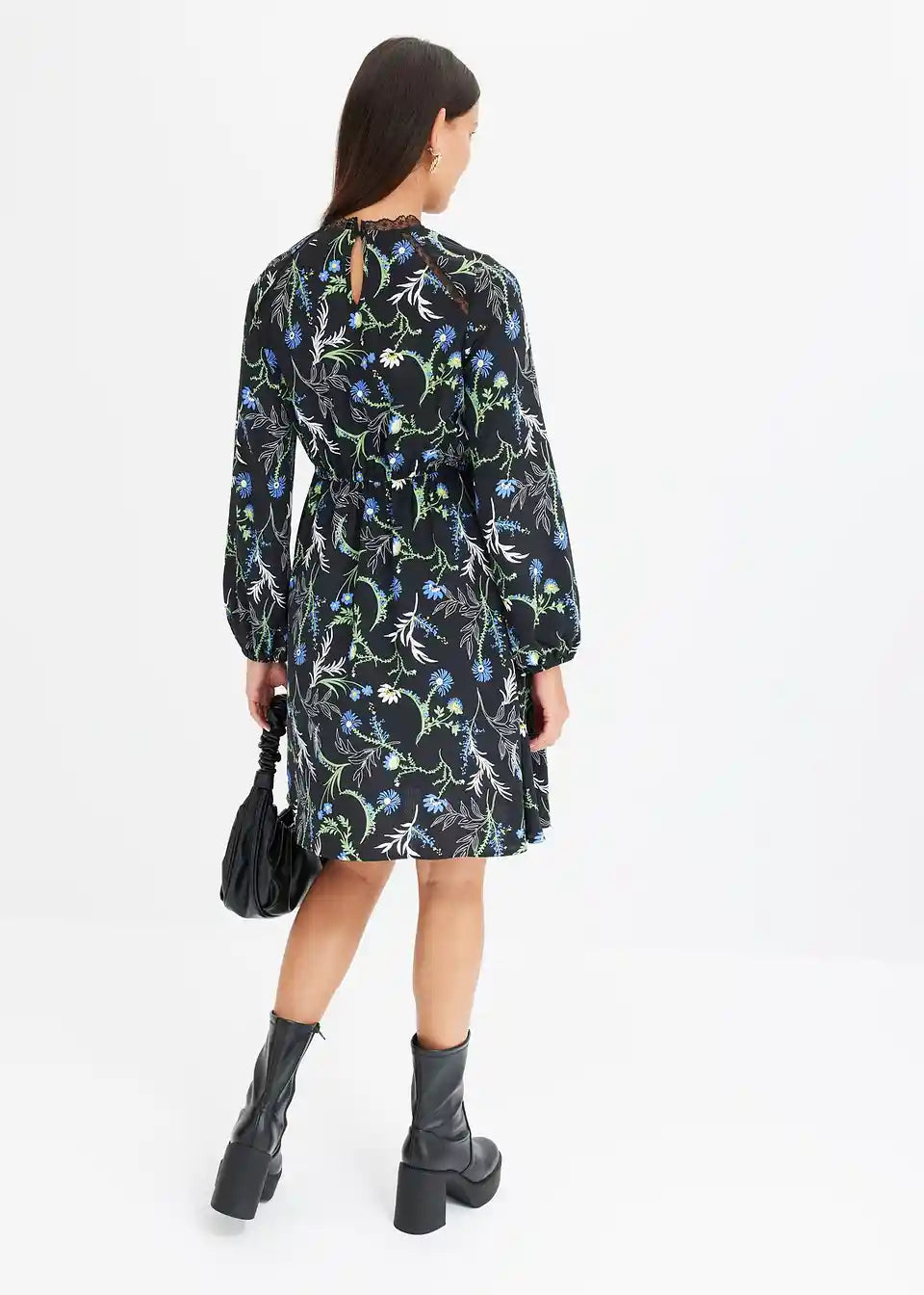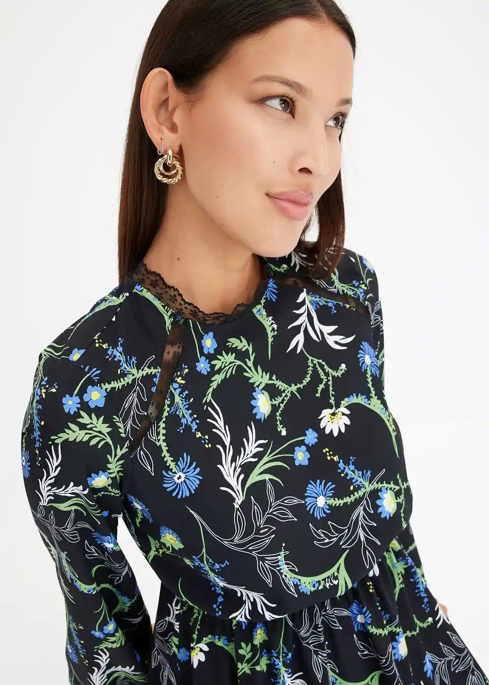 Igriva obleka v mini dolžini s čipkastimi detajli na izrezu