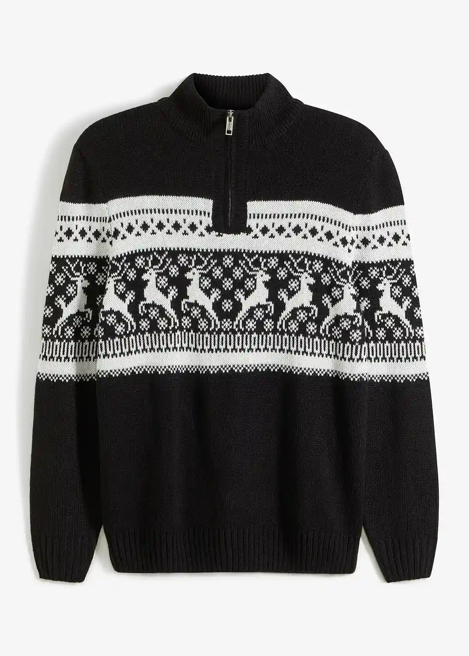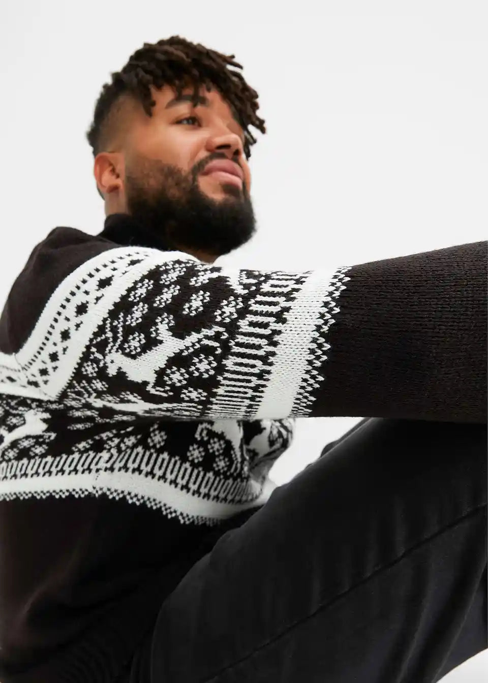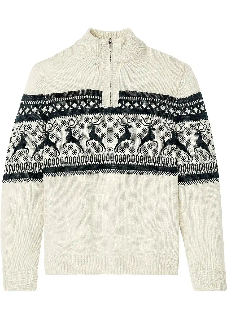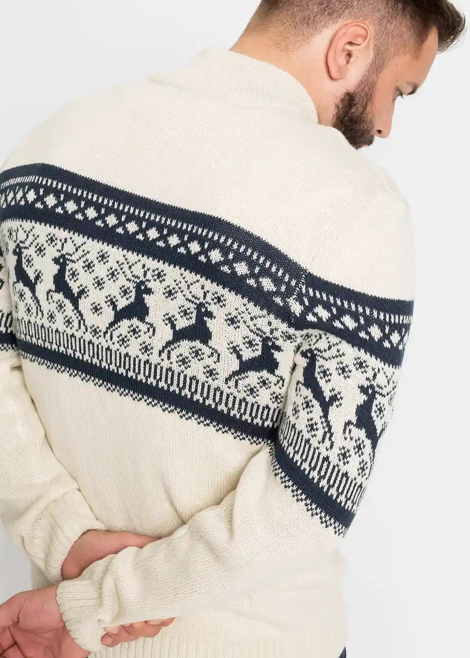 Moški Pulover s Stoječim Ovratnikom in Vpletenim Motivom Severnih Jelenov
