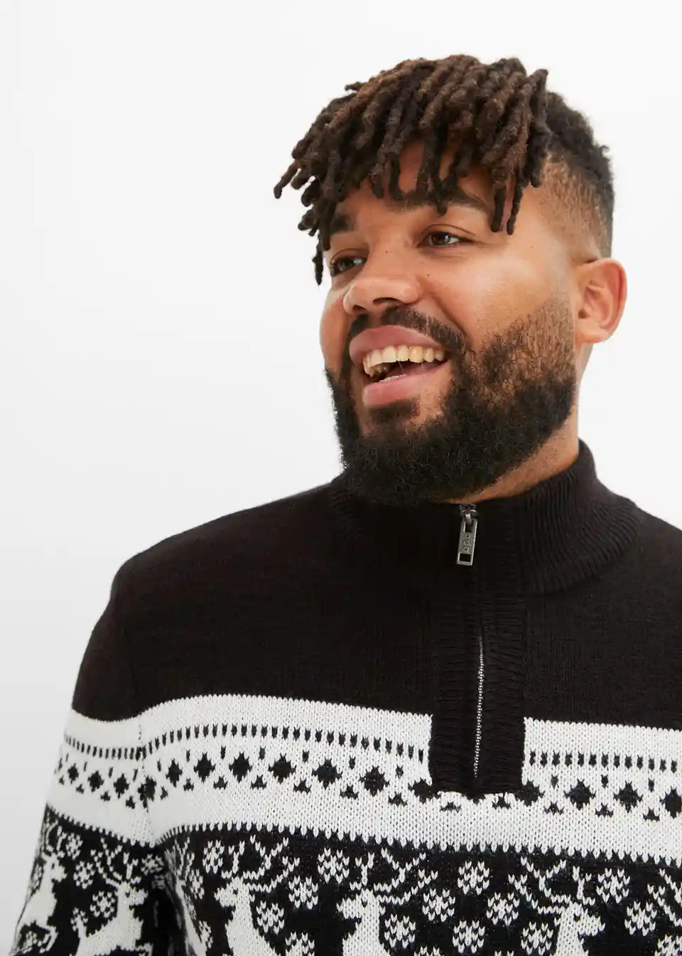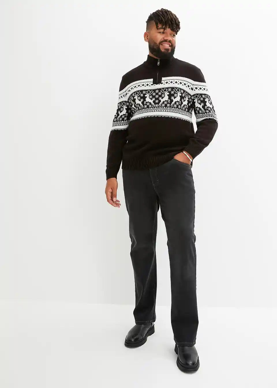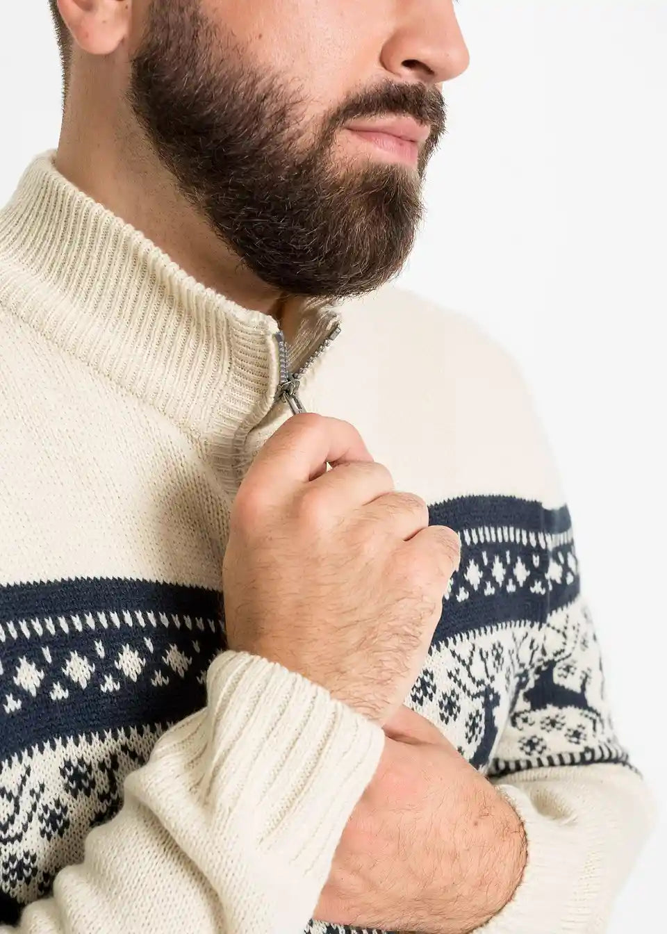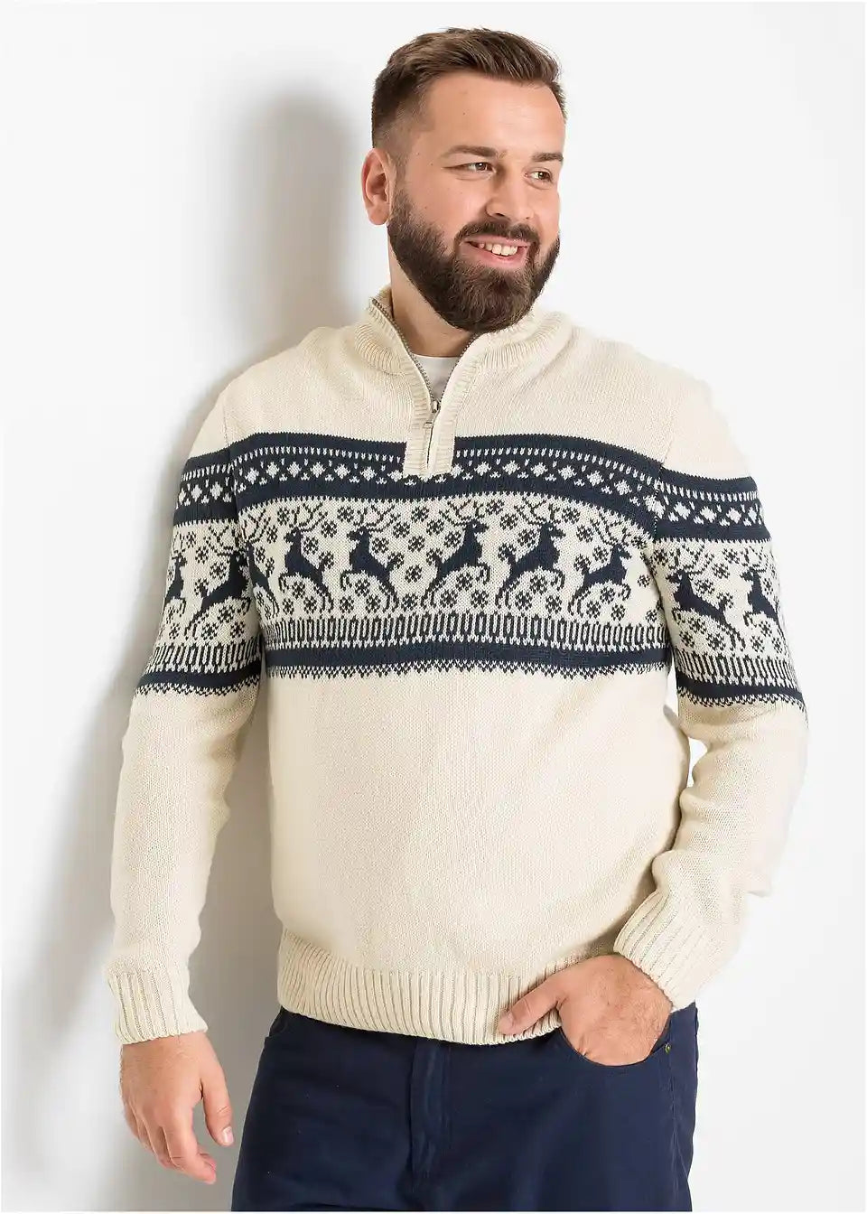 Moški Pulover s Stoječim Ovratnikom in Vpletenim Motivom Severnih Jelenov
