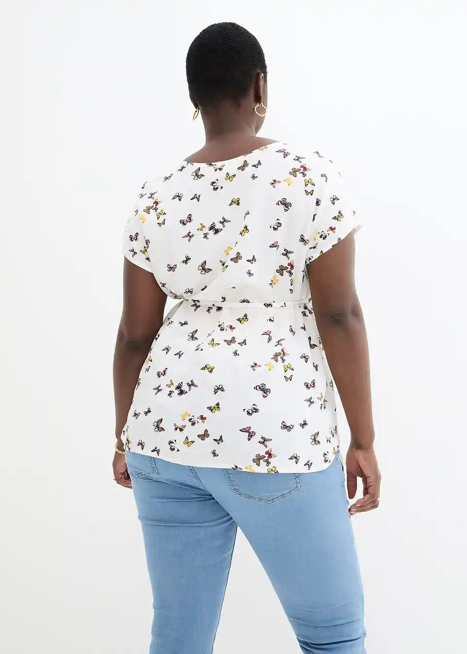 Ta nosečniška bluza z Allover-potiskom se zaradi elastičnega materiala prilagaja trebuhu. Vezalni trak poudari rastoči trebuh in poskrbi za ženstven detajl.
