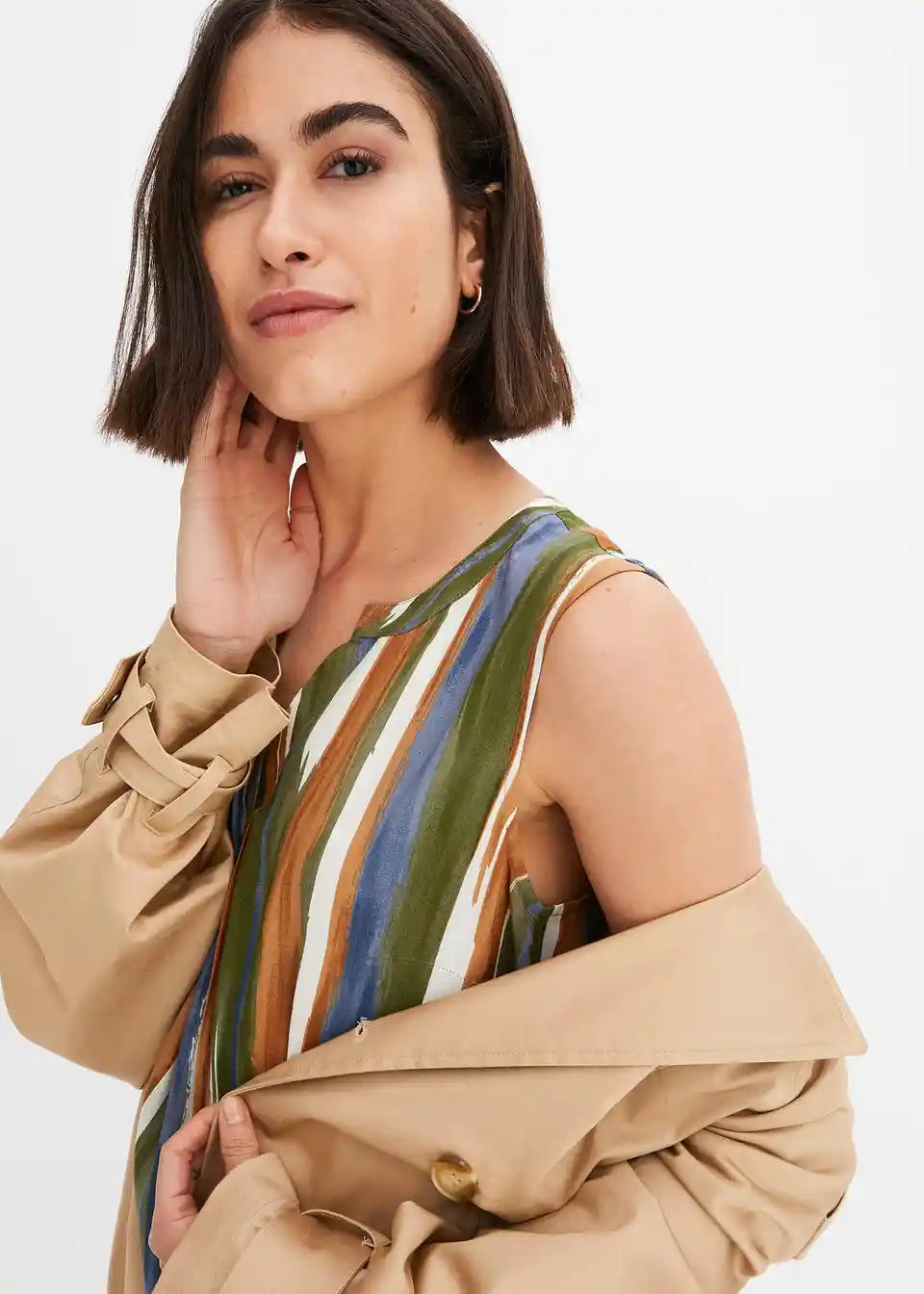 Barva:nova kakijeva/mat kamelja/svetlo modra črtasta