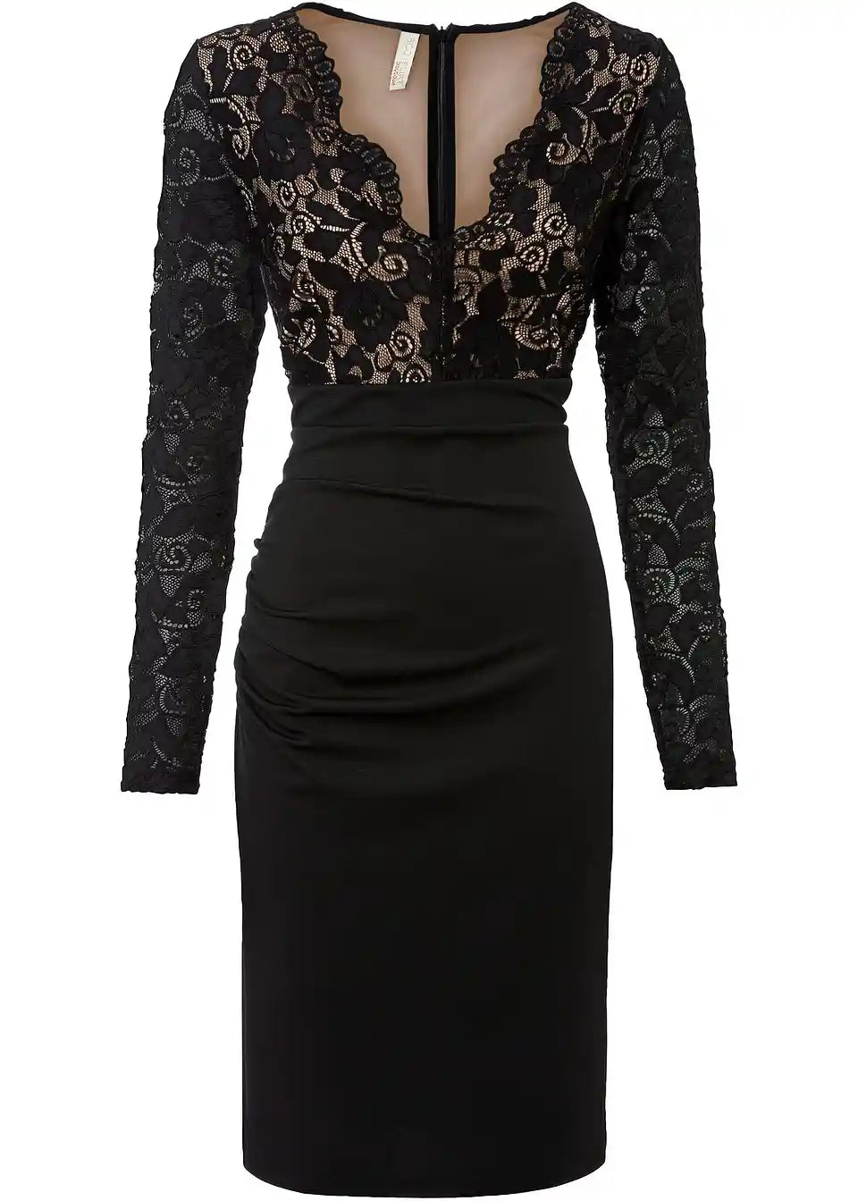 Stilska obleka z globokim V-izrezom in zadrgo zadaj