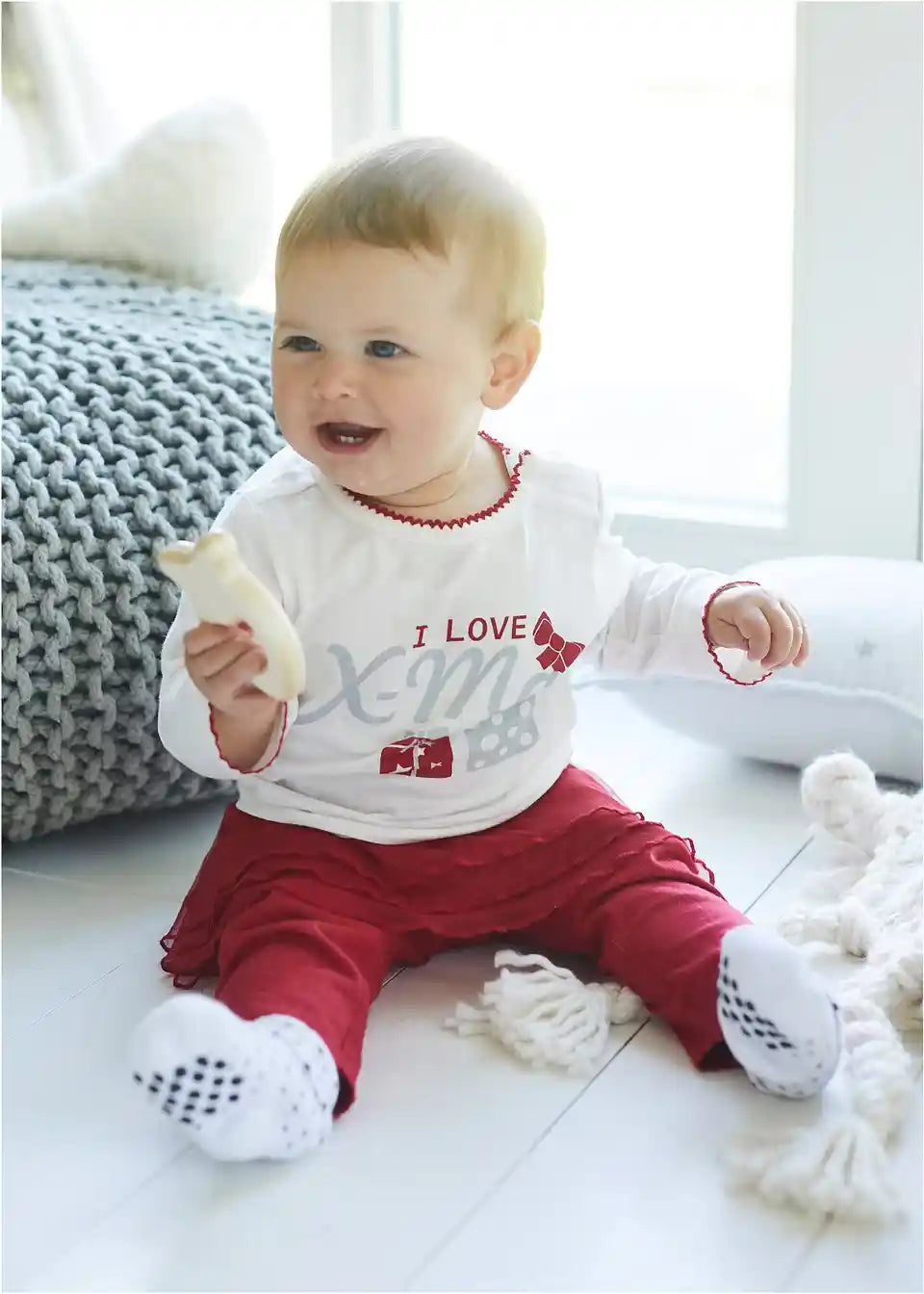 Majica in pajkice s krilcem in božičnim motivom iz ekološkega bombaža za malčke