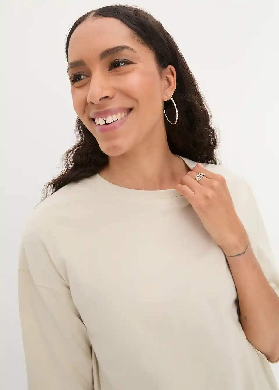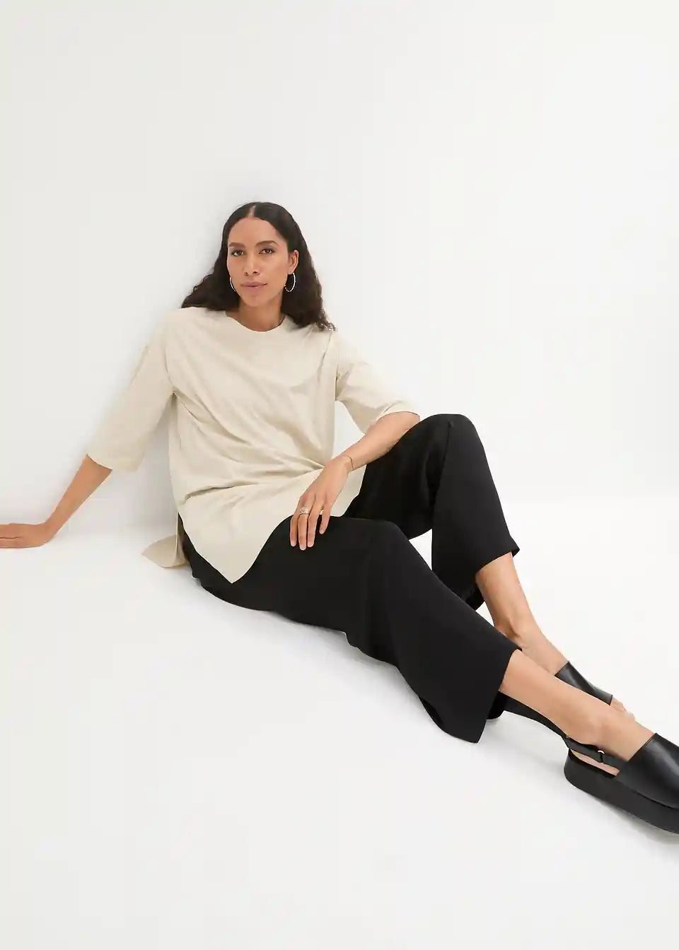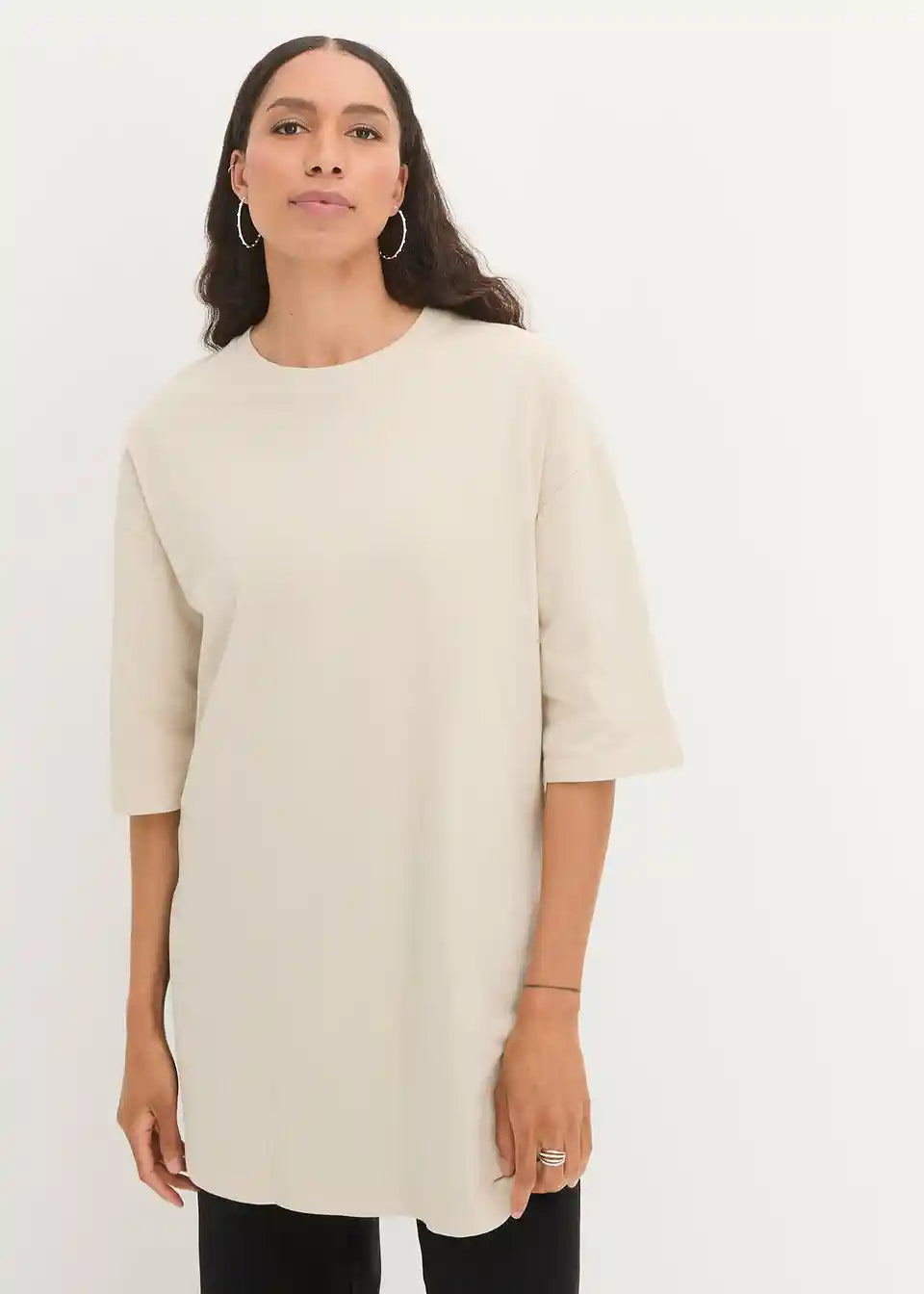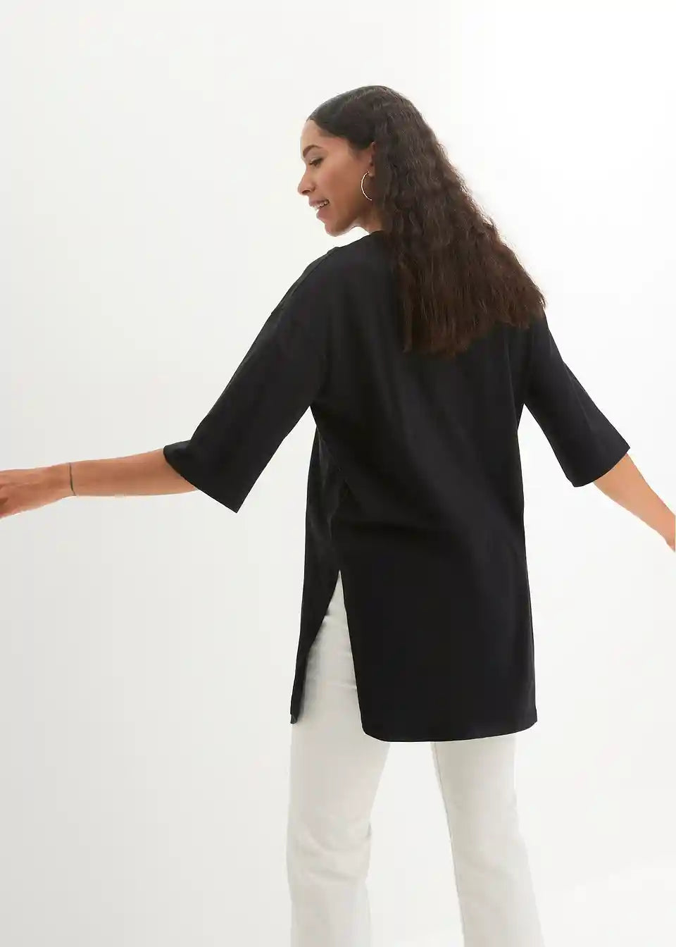Ležerna dolga majica z udobnimi stranskimi režami in oversized-krojem