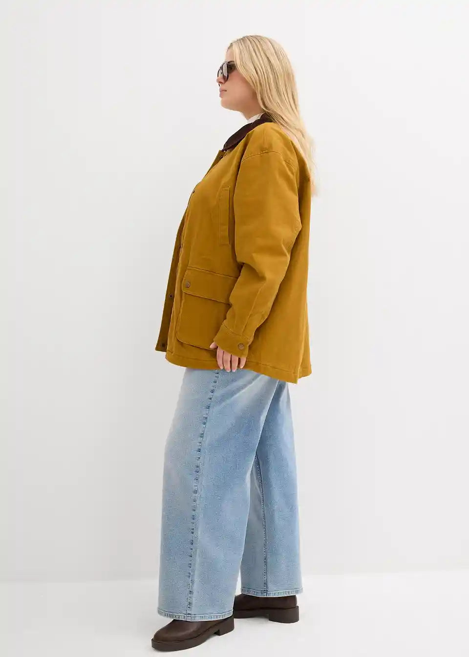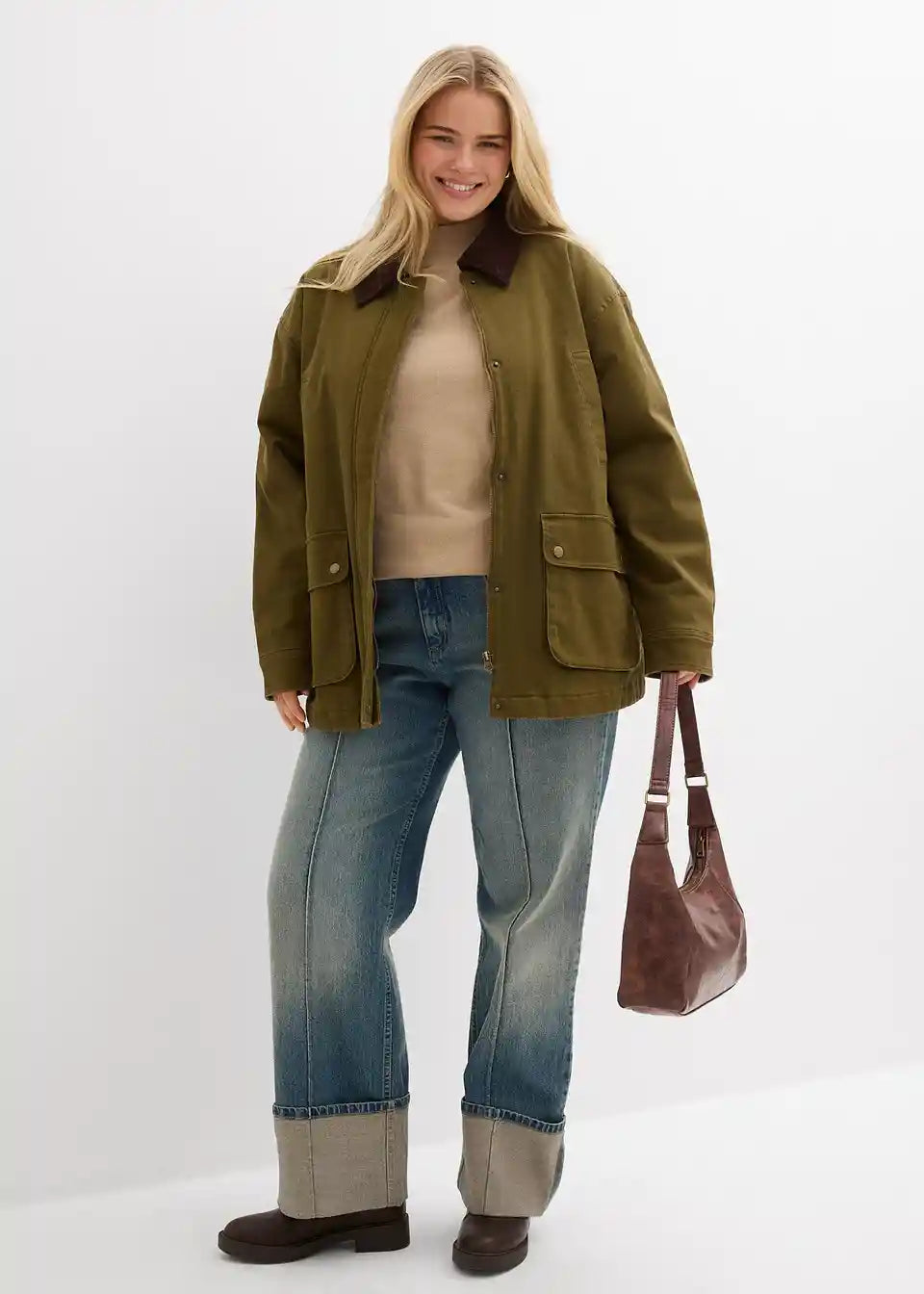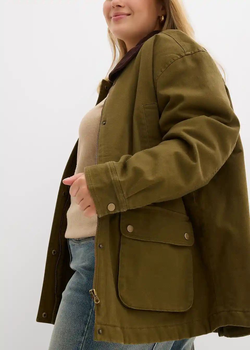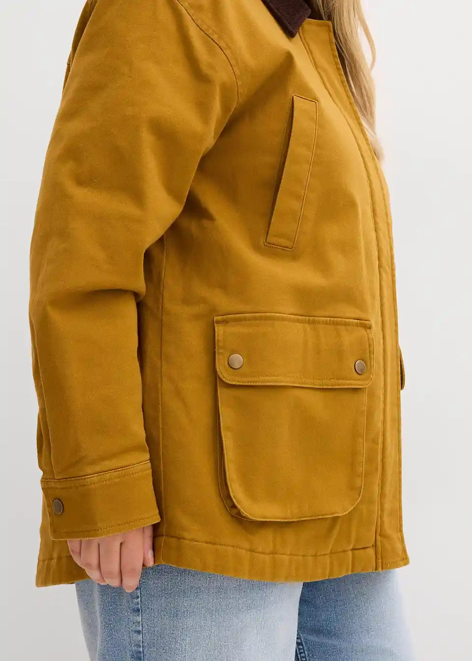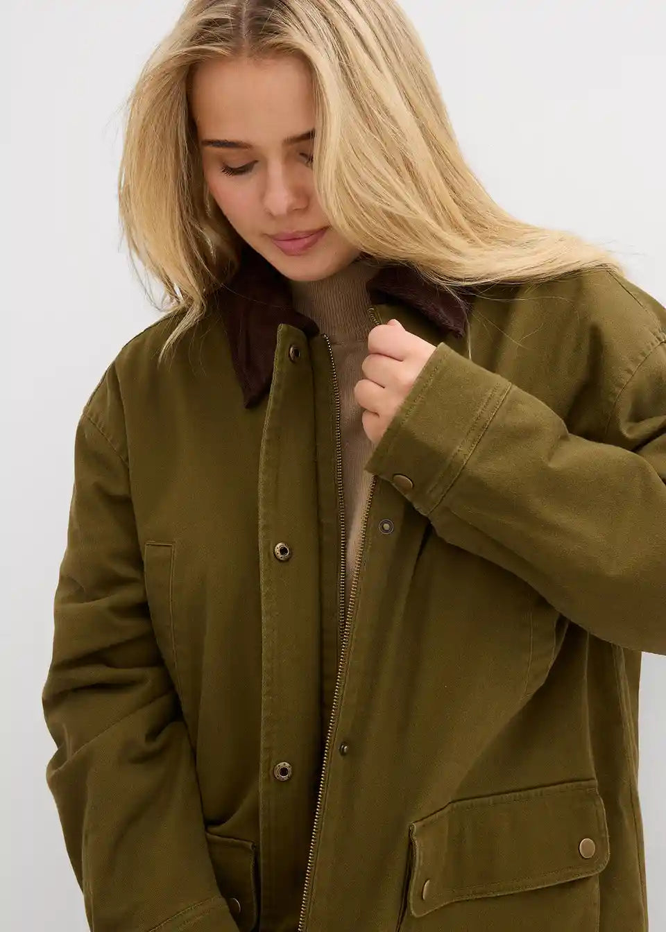 Ohlapna podložena parka z ovratnikom iz žameta in žepi