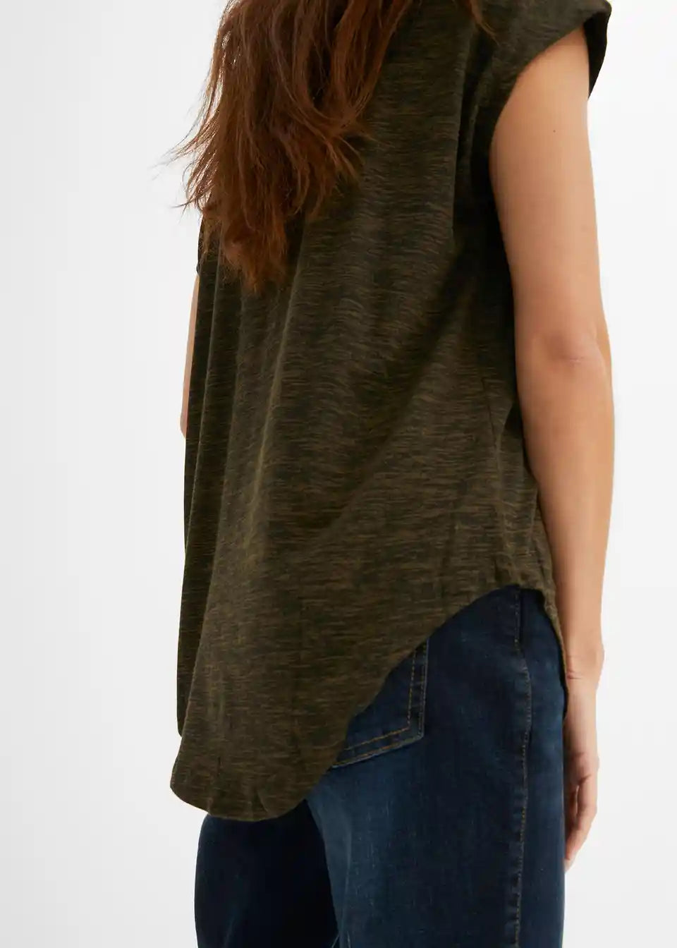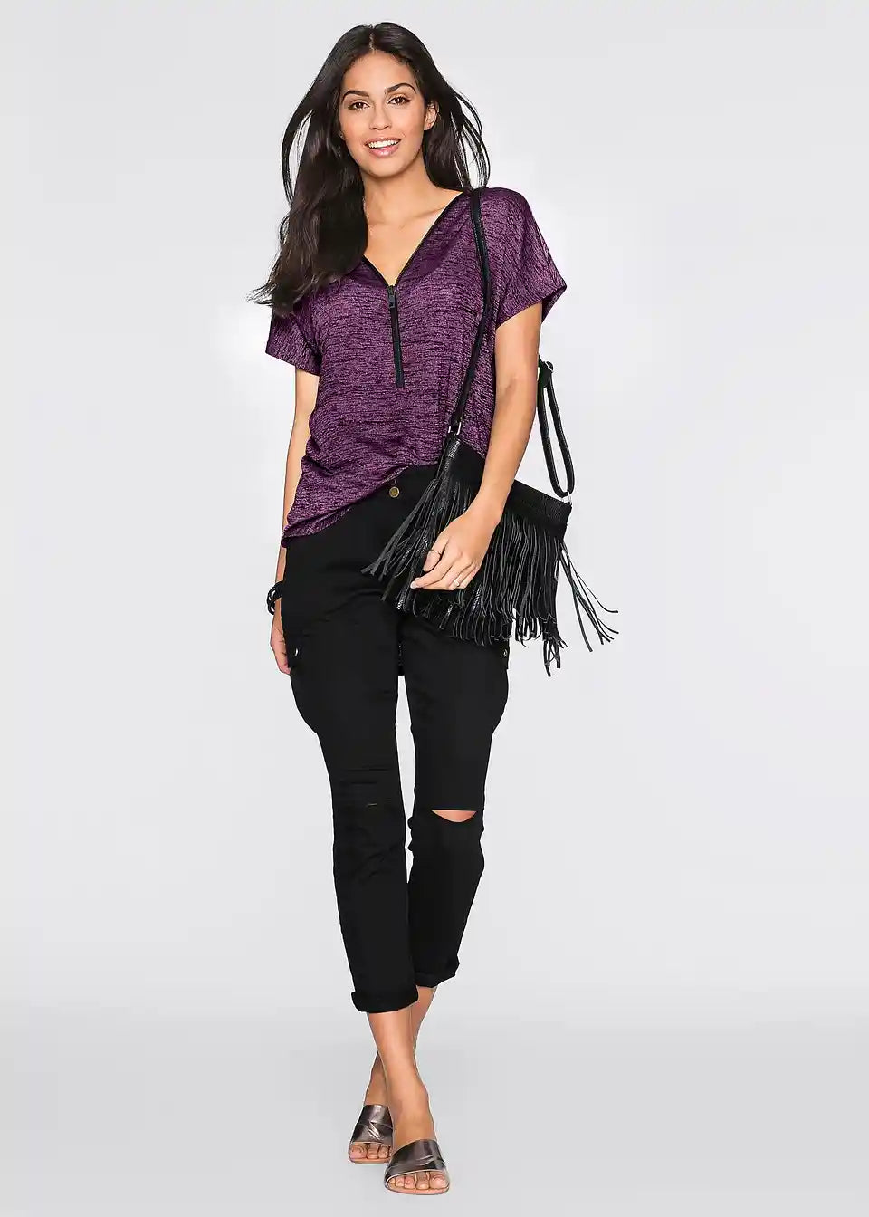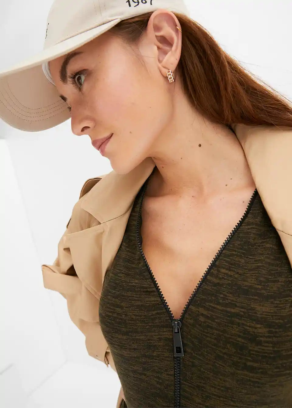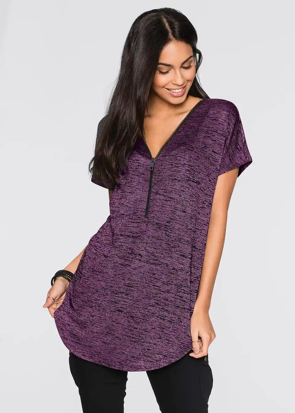 Ohlapen kroj naredi ta Oversize-Shirt z zadrgo iz BODYFLIRT sproščeno zgornje oblačilo, ki omogoča ustvarjanje številnih privlačnih kombinacij. Model s kratkimi spuščenimi rokavi je prijetno širok. Nastavljiva zadrga pri V-izrezu omogoča variacijo širine izreza. Majica z zaobljenim robom izgleda dobro v kombinaciji z oprijetimi hlačami, krili in pajkicami. Za poudarjeno ženstven videz lahko kombinirate z širokejšim spodnjim delom.