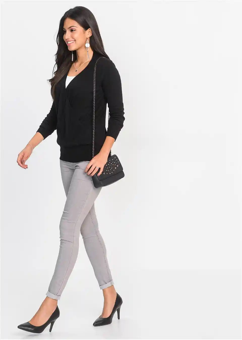 Oviti učinek pri tem modelu BODYFLIRT ustvarja globok V-izrez, kar omogoča igro z majicami. Čipka, kontrastne barve ali vzorci - vsak kos doda Ovitemu Puloverju nov pridih. Za dober zaključek poskrbi rebrast širši spodnji rob. Rebrast dizajn se ponovi tudi na zaključkih rokavov. Naj bo sproščen videz z jeansom in škornji prek navadne majice ali nekoliko bolj domiseln v kombinaciji s čipko in usnjenimi pajkicami: Oviti Pulover navdušuje v številnih različicah.