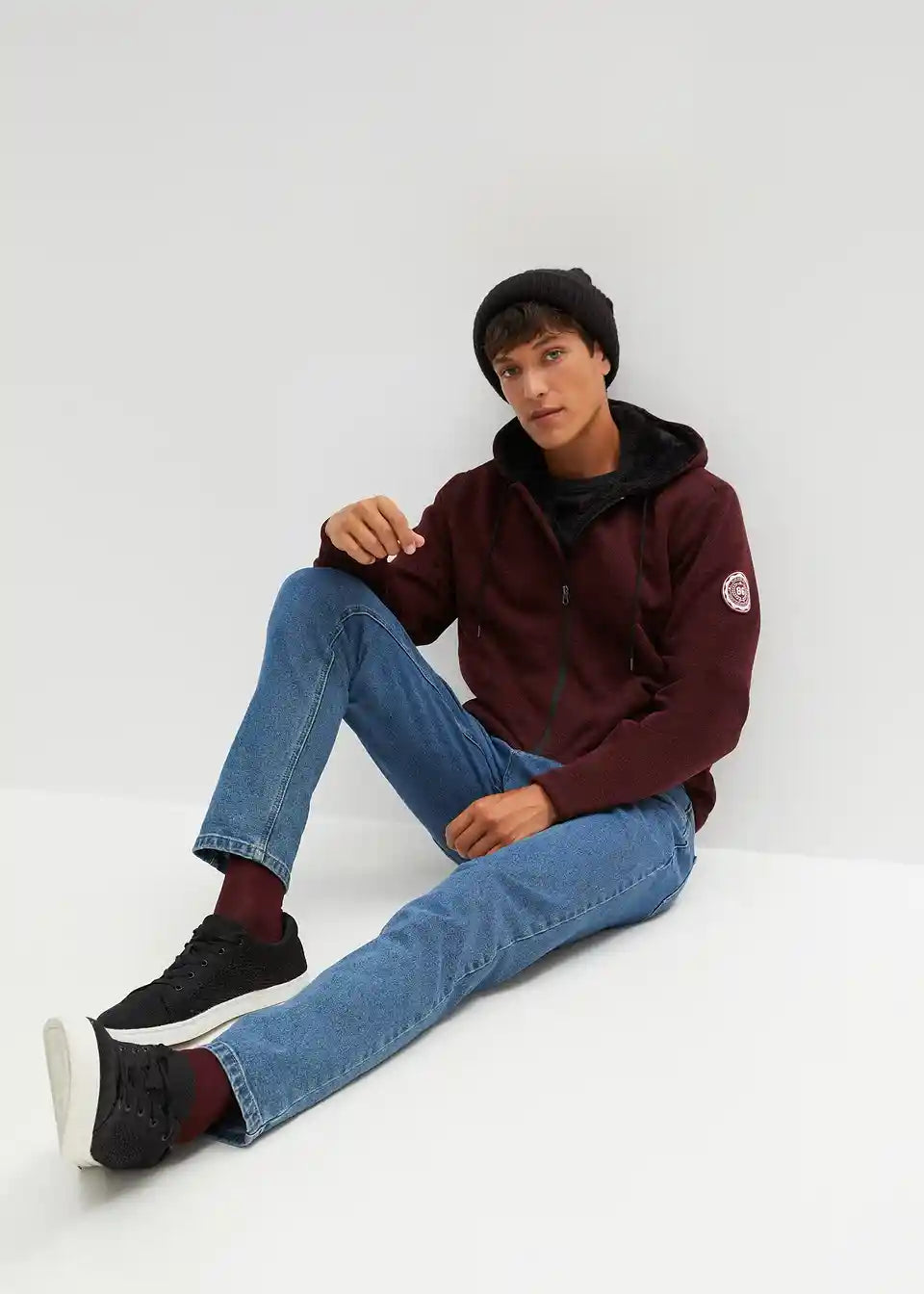 Pletena plišasta jakna s podlogo iz umetnega ovčjega krzna