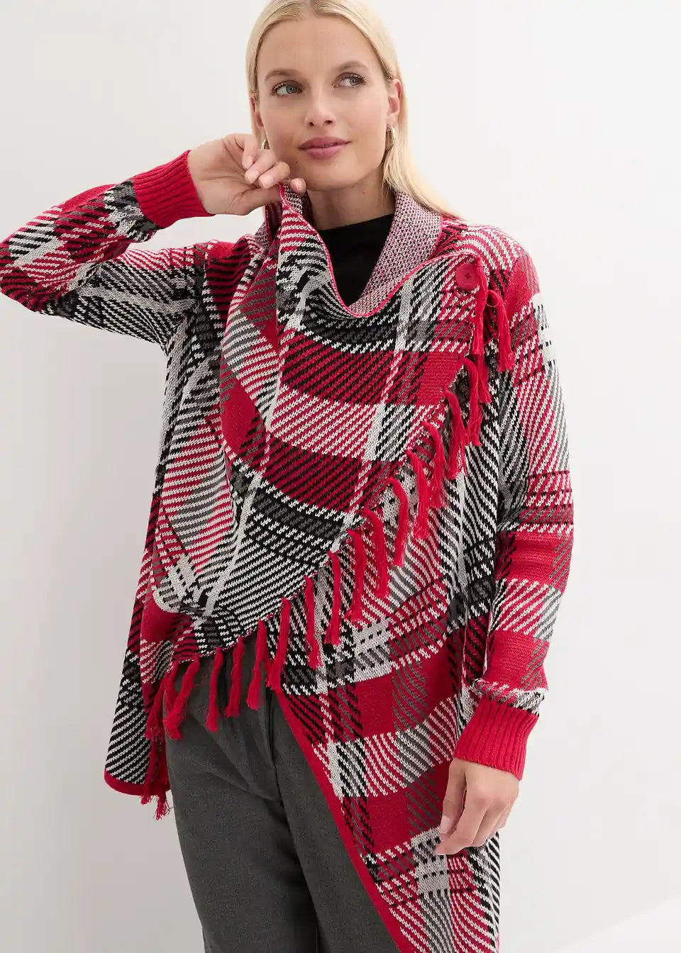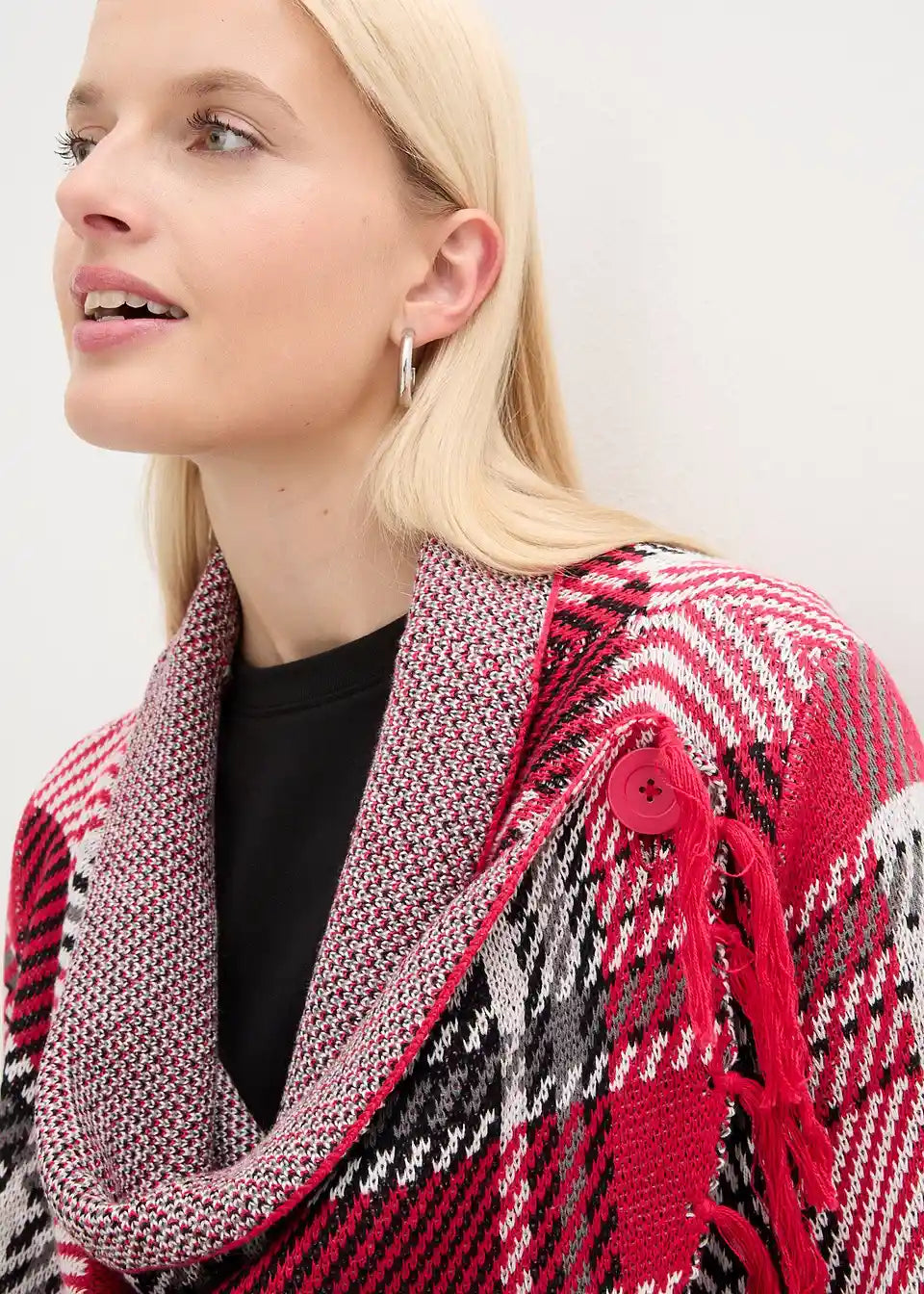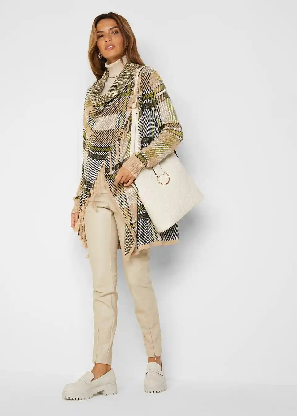 Udobna pletena jopica v asimetričnem kroju z resicami