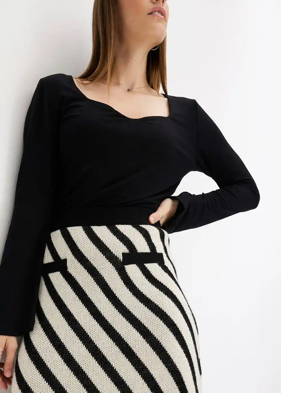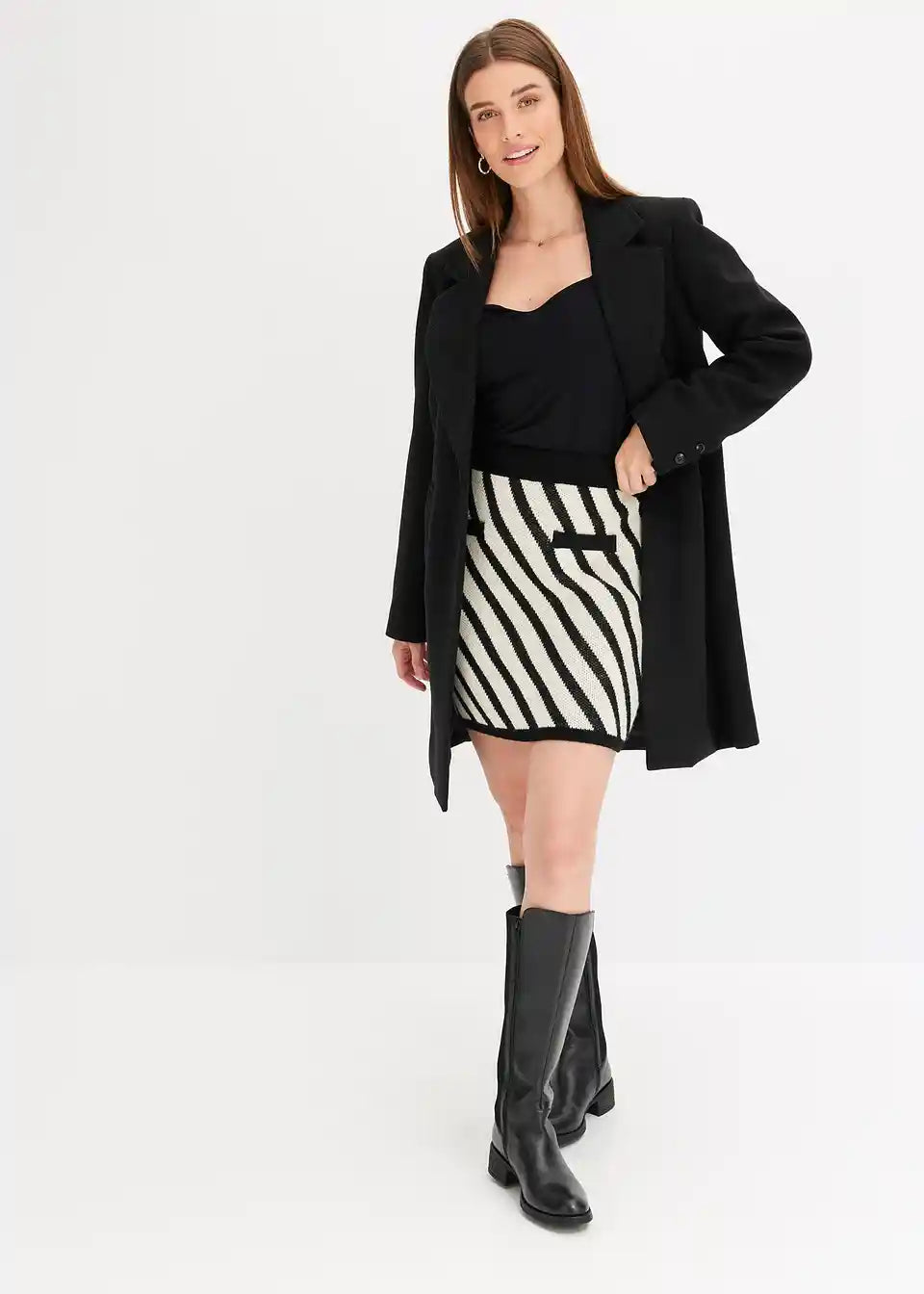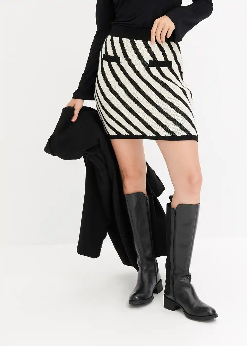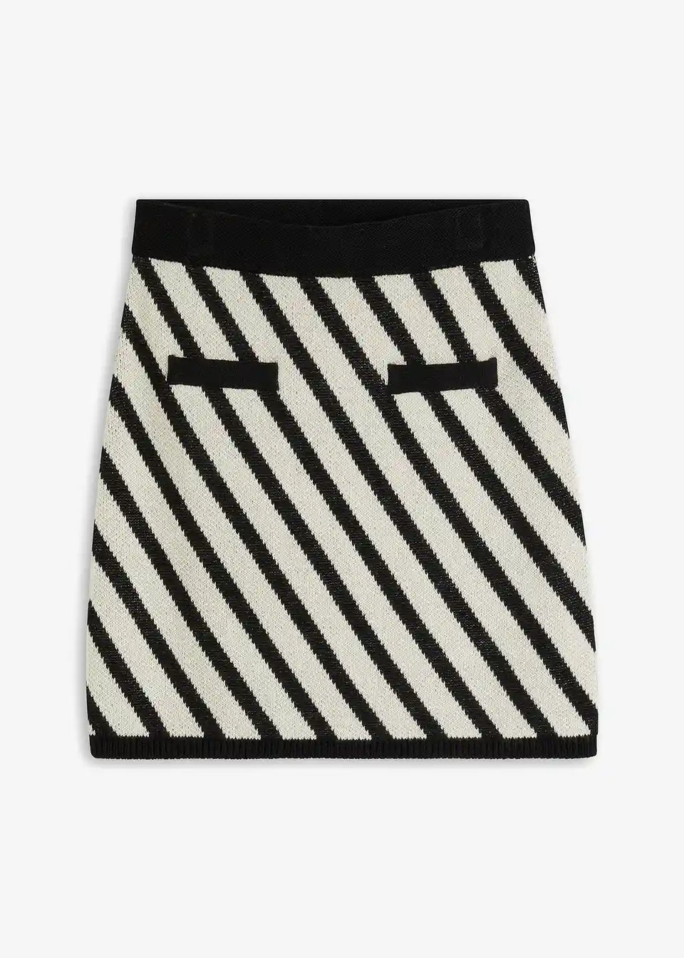 kratko pleteno krilo z diagonalnim črtastim vzorcem