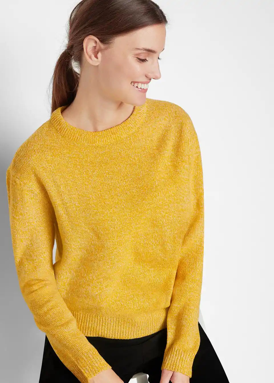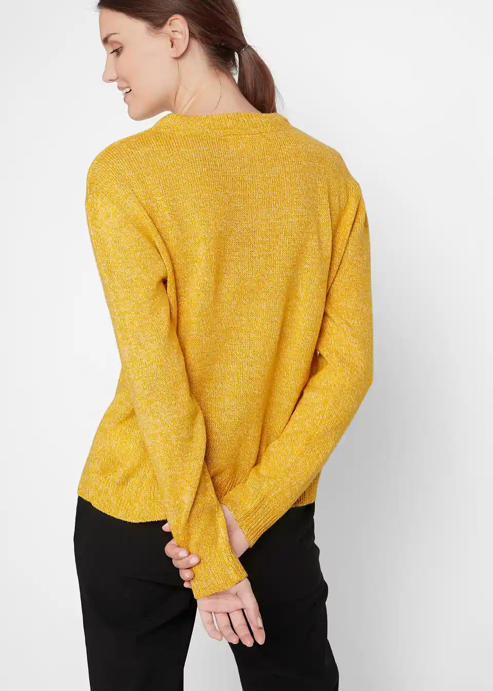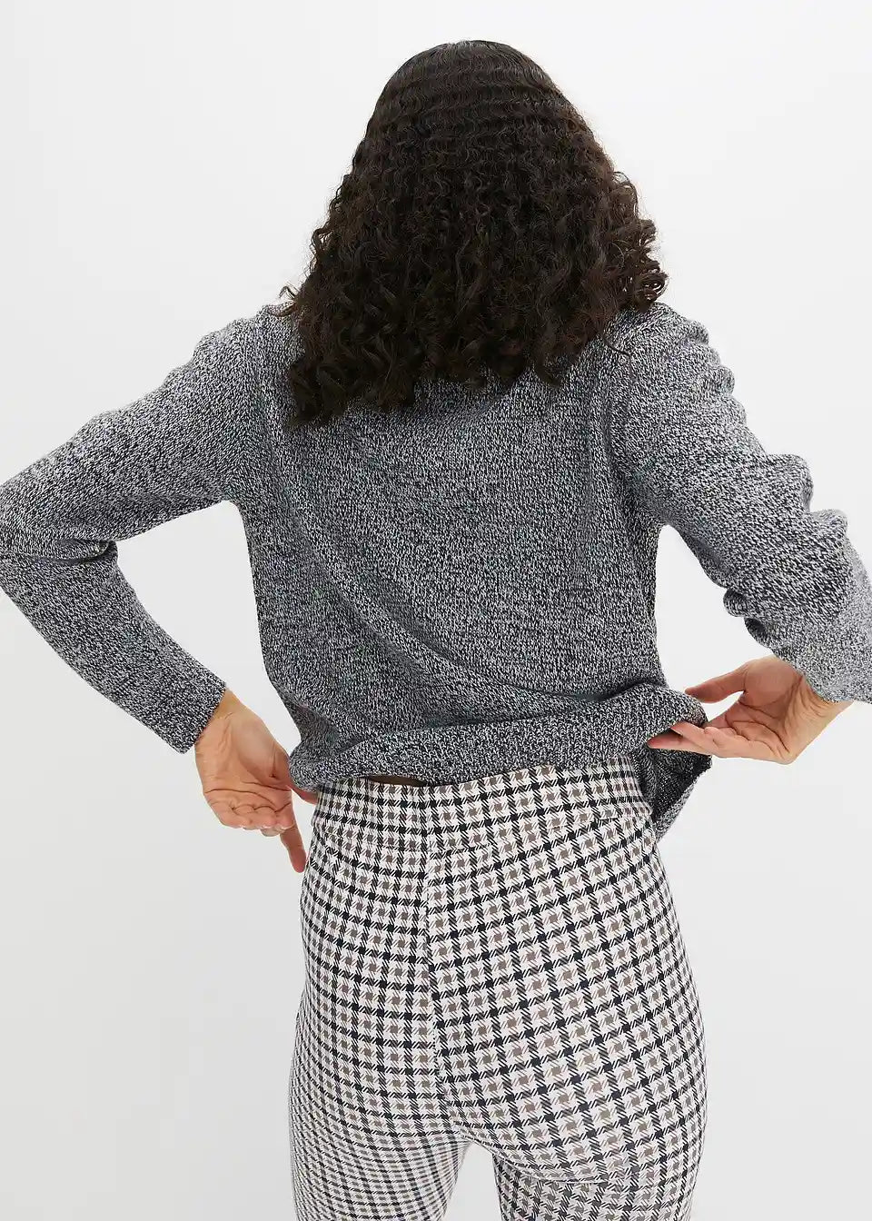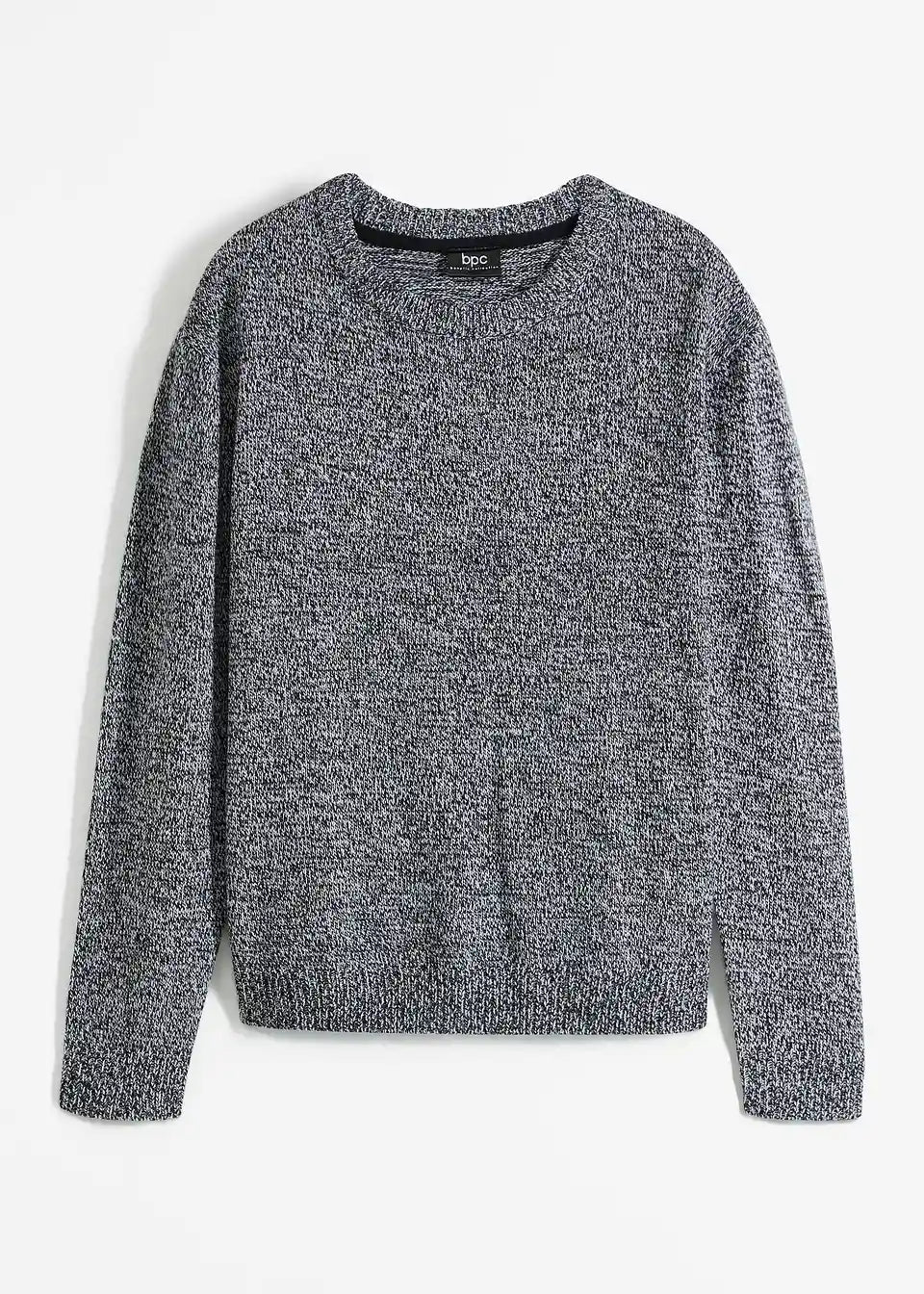 Pleten pulover z okroglim izrezom v meliranem videzu