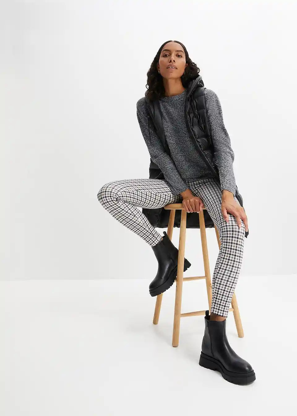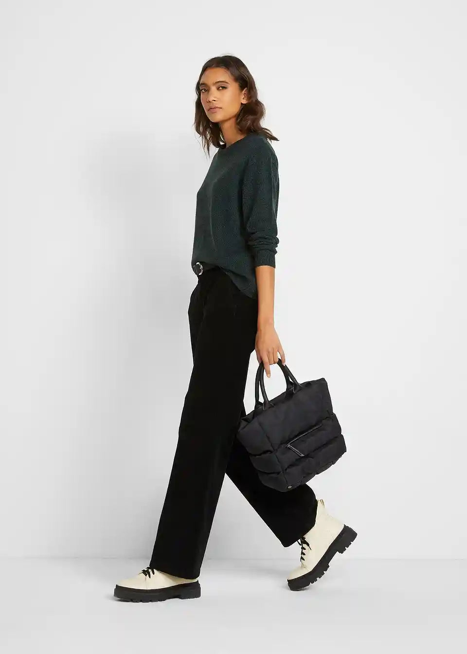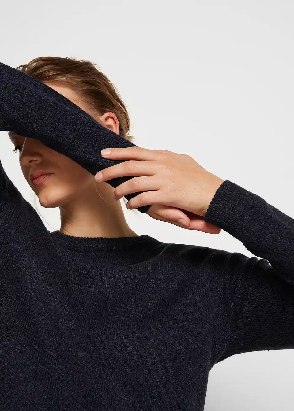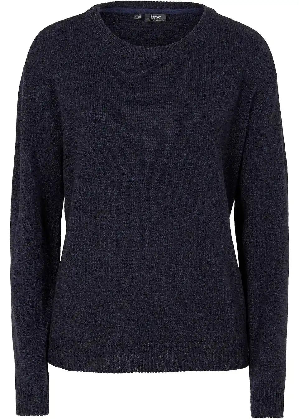 Pleten pulover z okroglim izrezom v meliranem videzu
