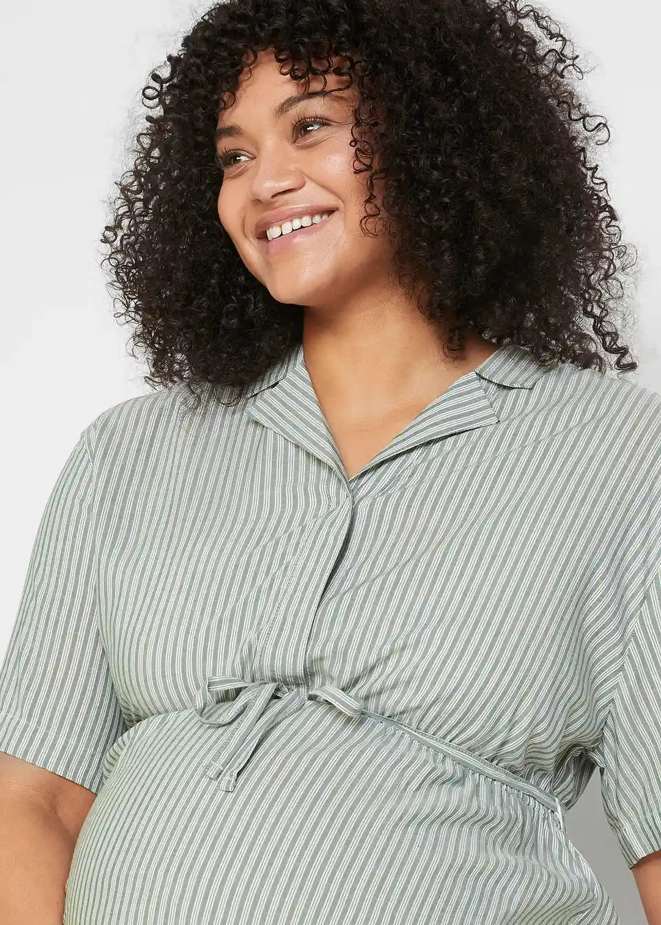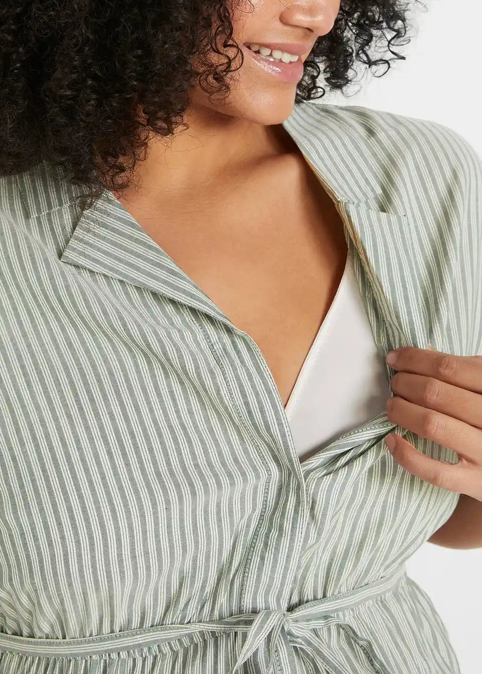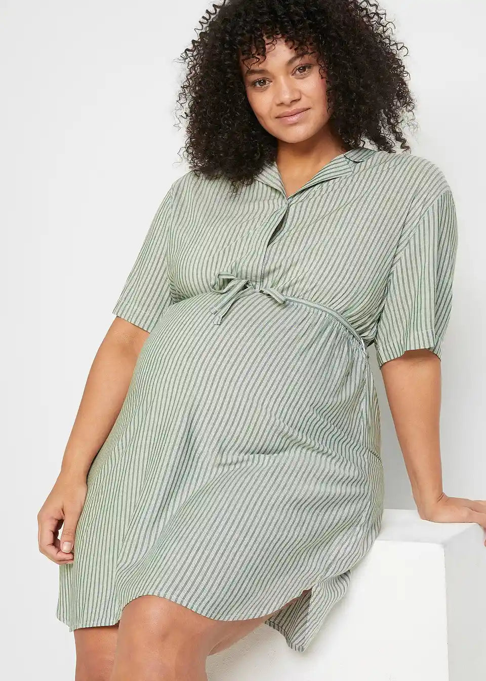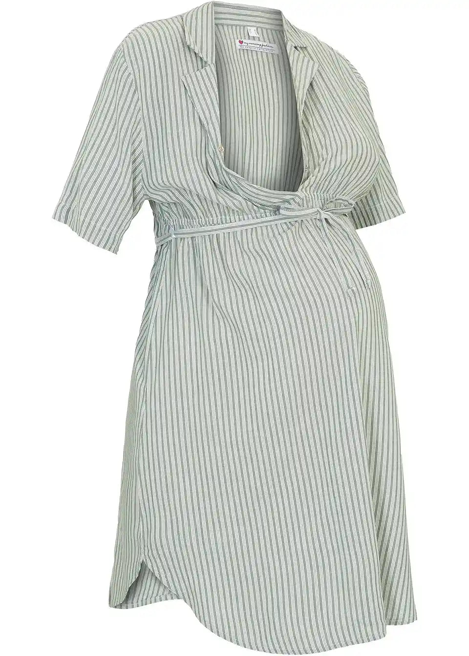 Srajčna obleka za nosečnost in dojenje s trakom za zavezovanje