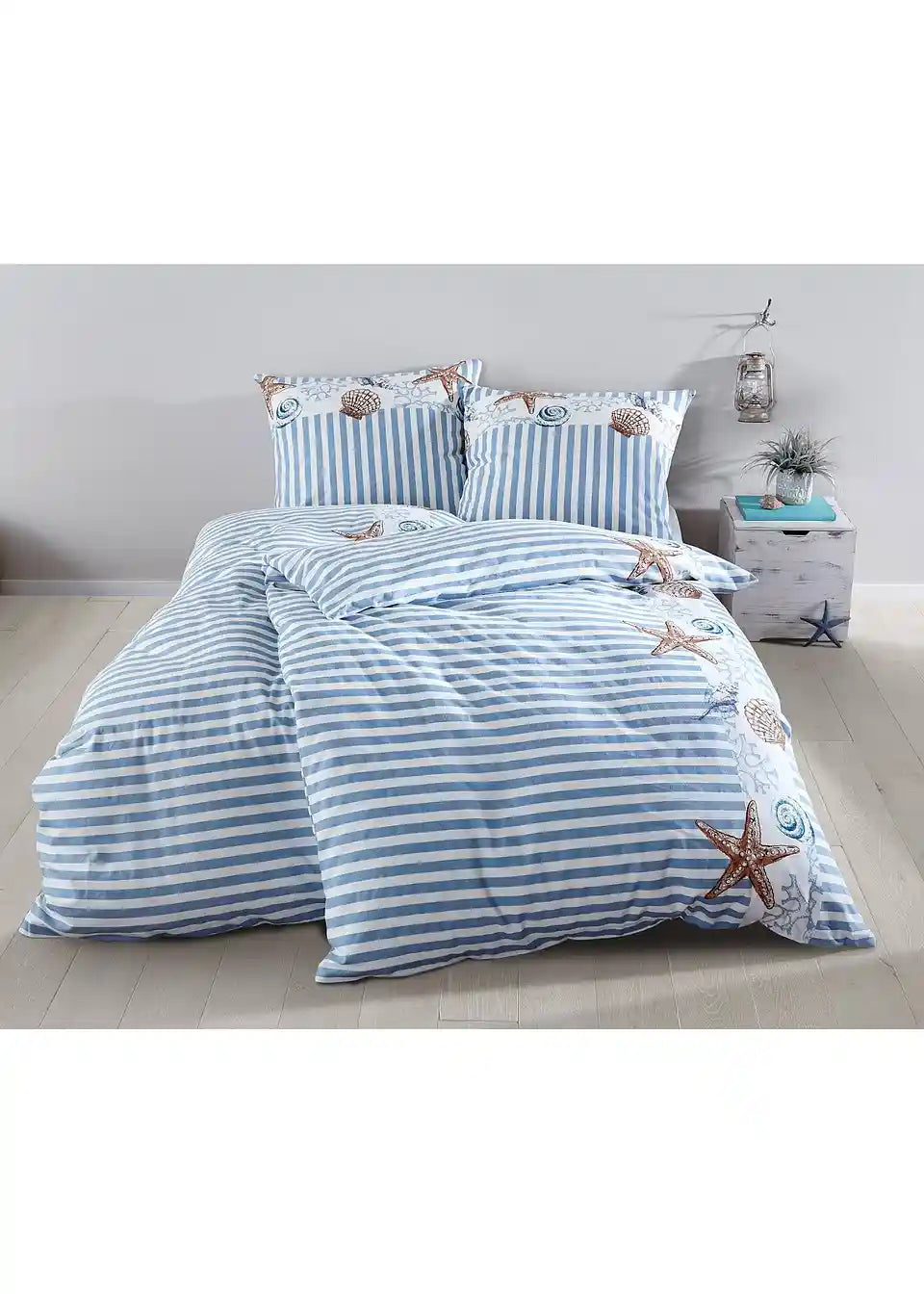 Morska privlačnost: Posteljnina s črtami in školjkami