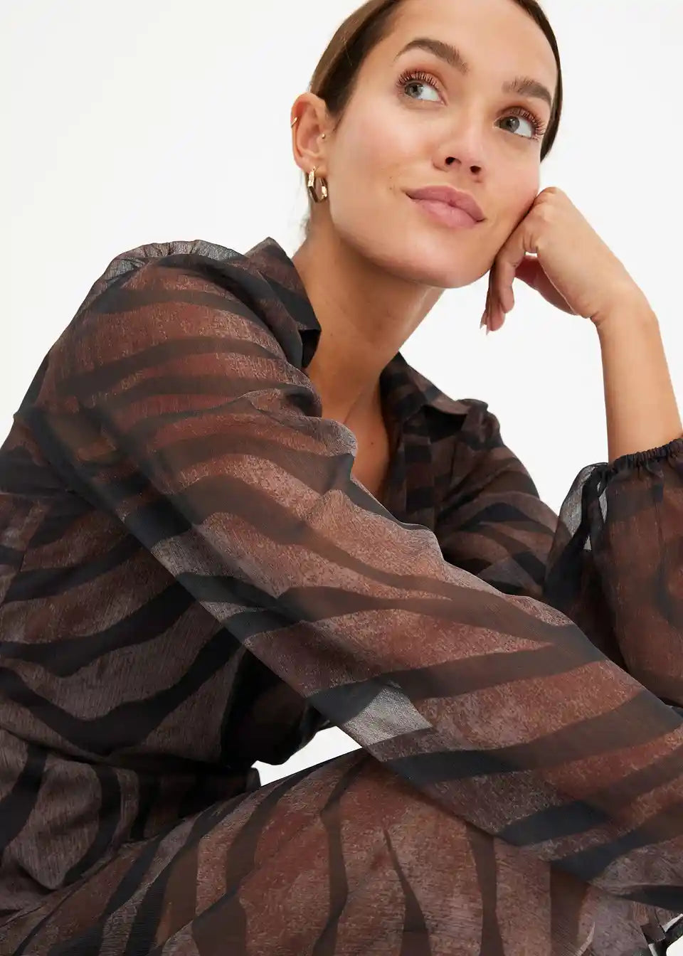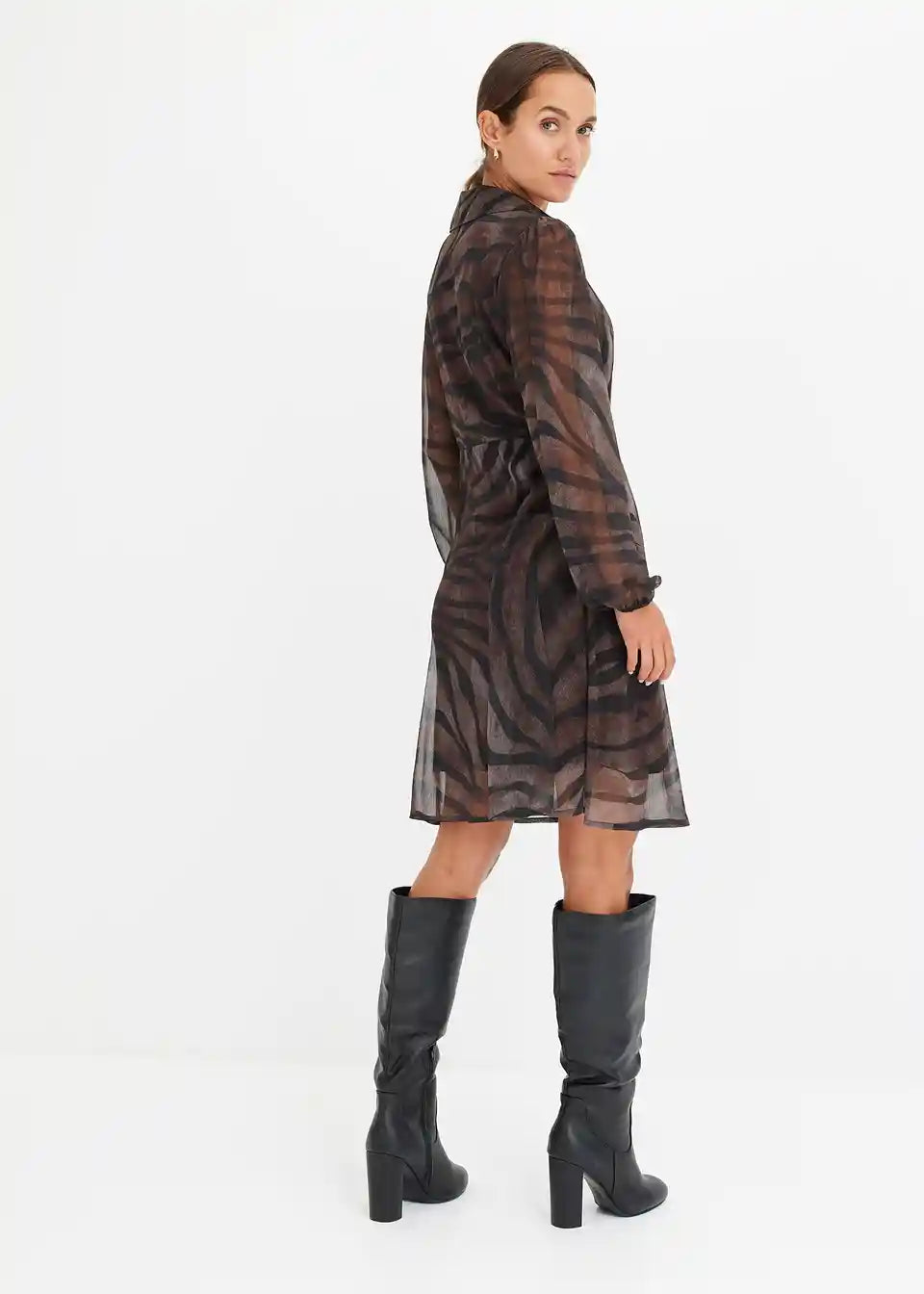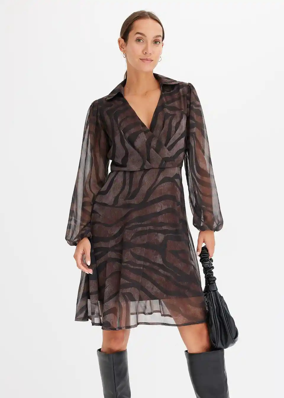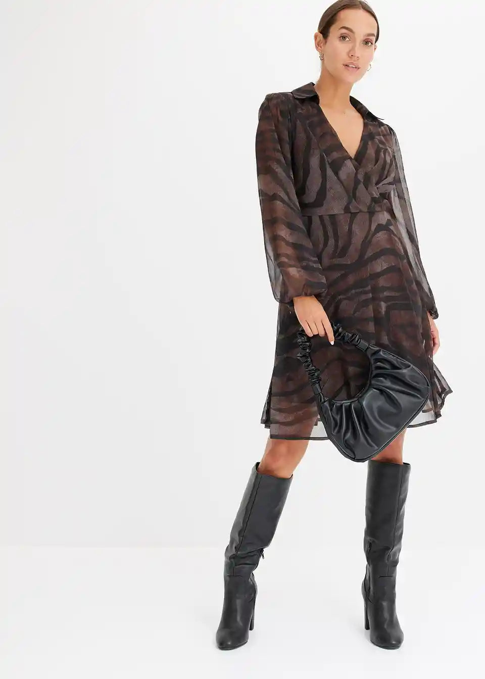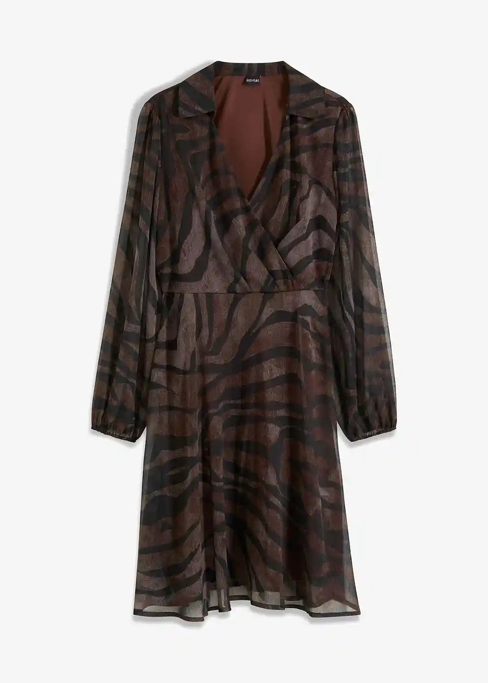 ženstvena šifonasta obleka z modernim živalskim potiskom