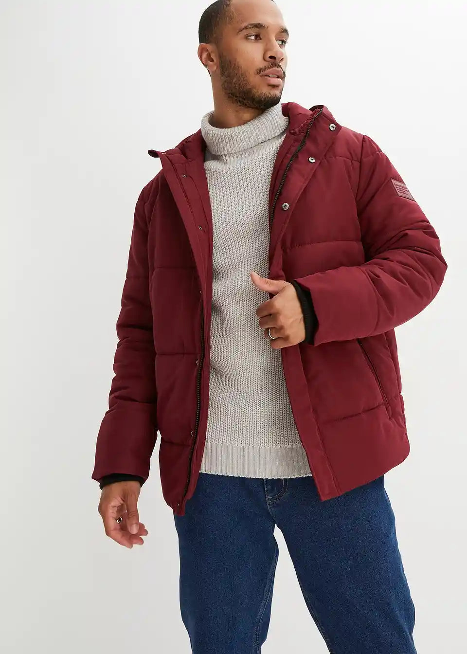 Moderna prešita jakna z našitkom na rokavu, dvema zunanjima žepoma in enim notranjim žepom