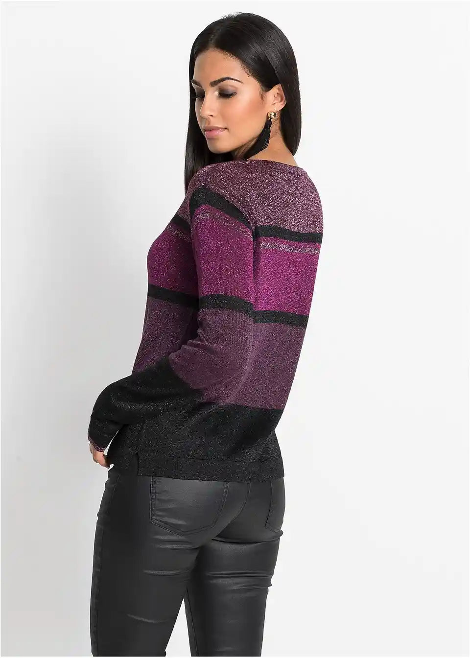 Moderen pulover iz lureksa z lepim črtastim vzorcem.