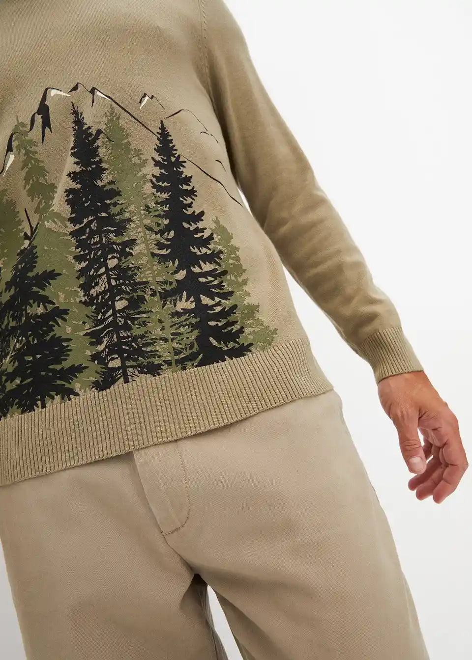 Fino pleten pulover z motivom in bombažem