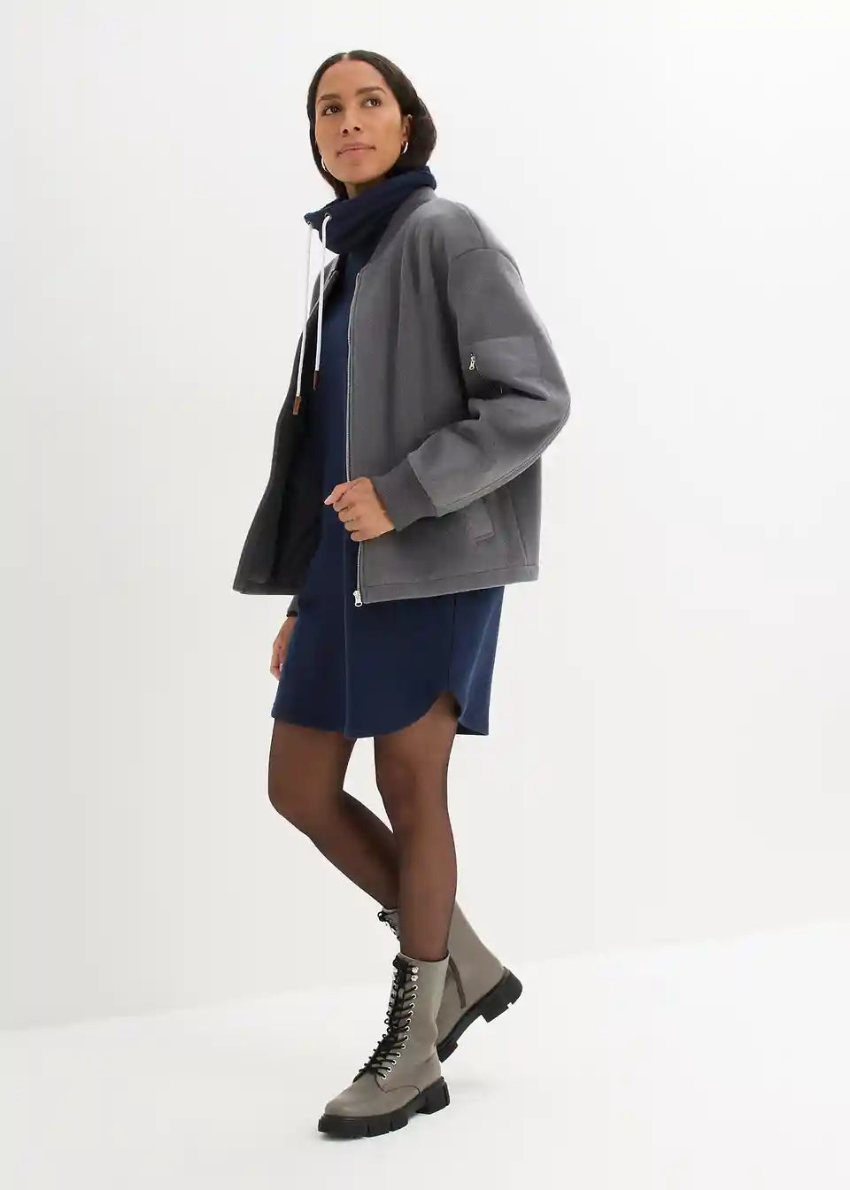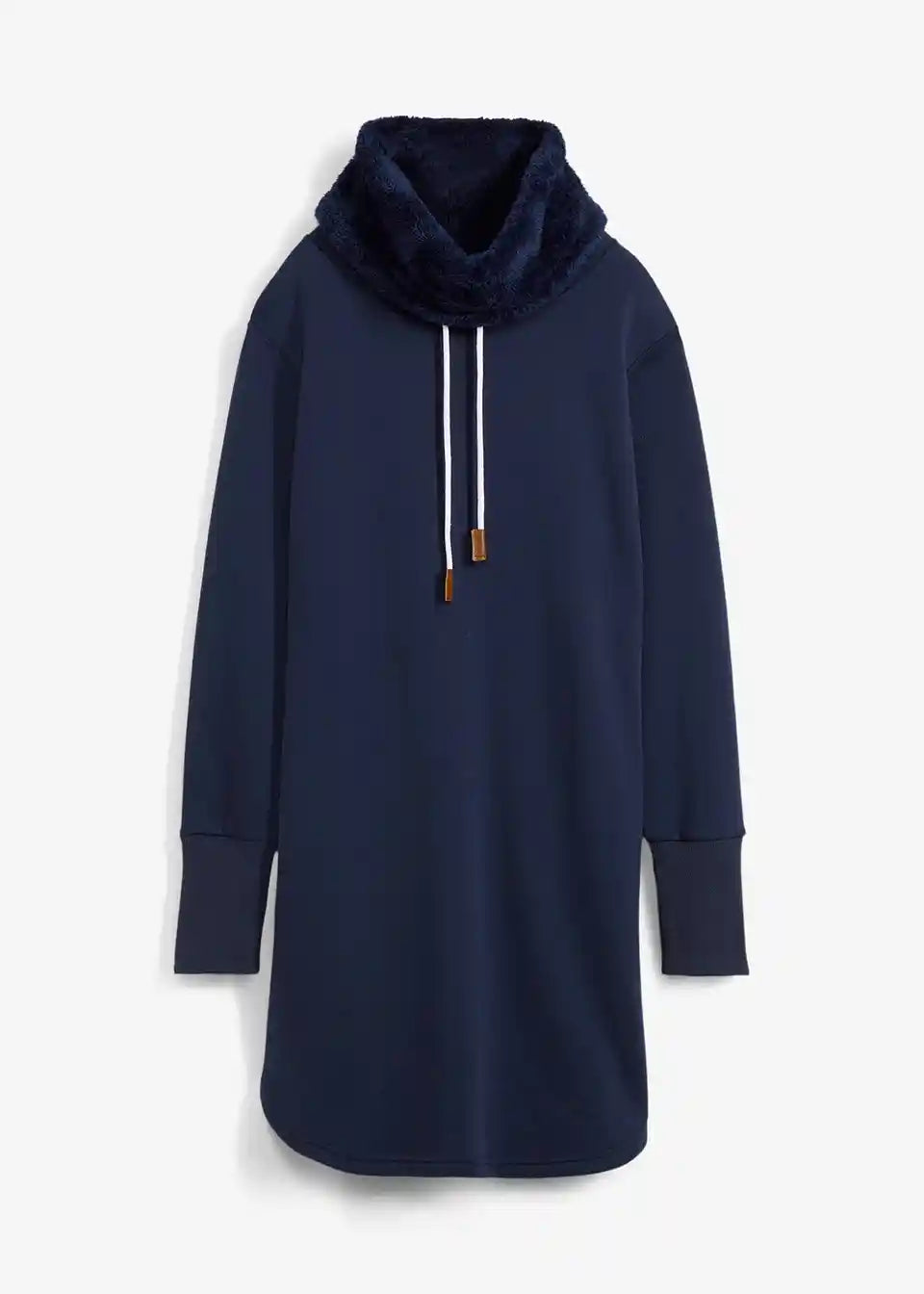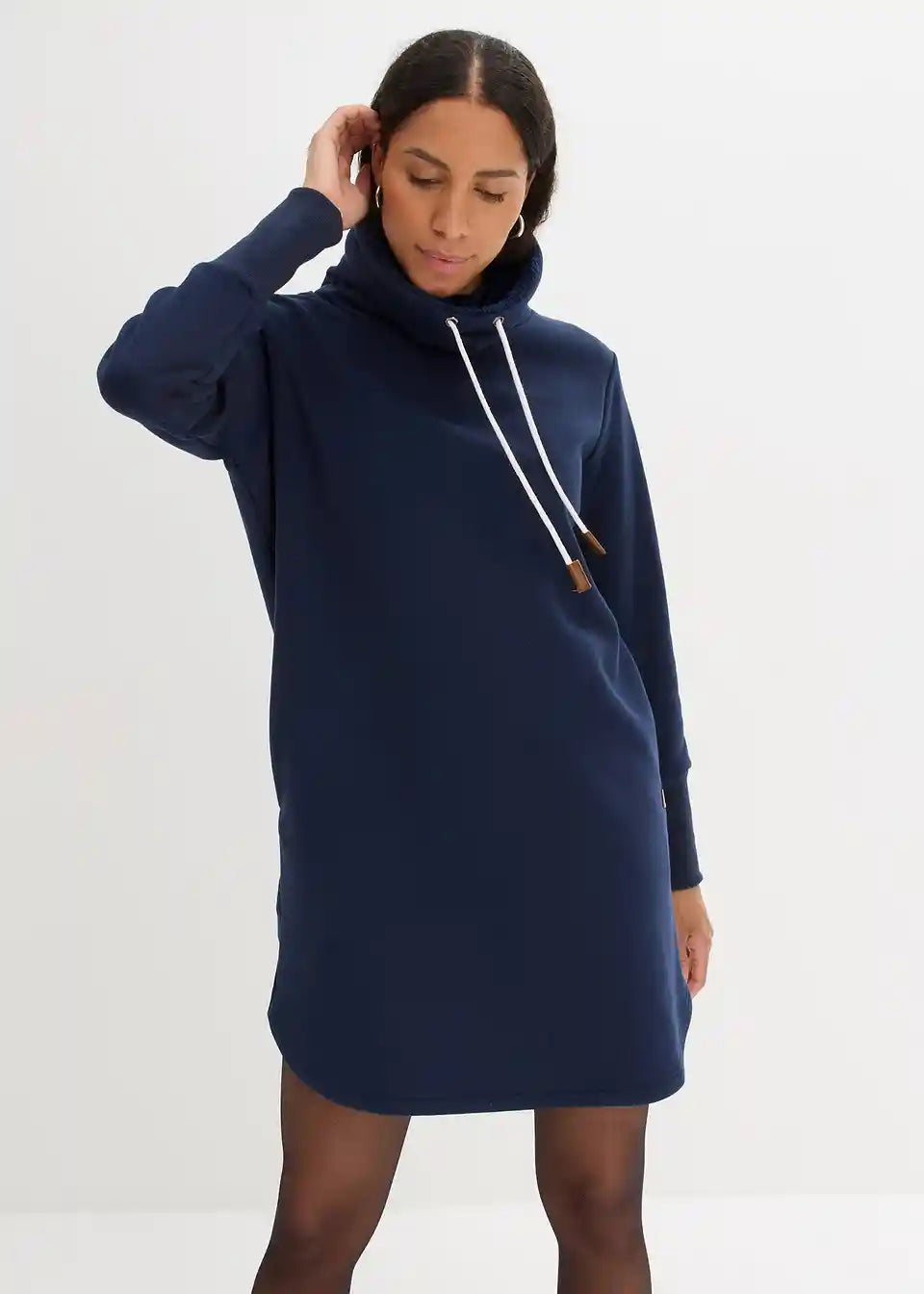 Obleka iz trikoja z mehkim pokončnim ovratnikom